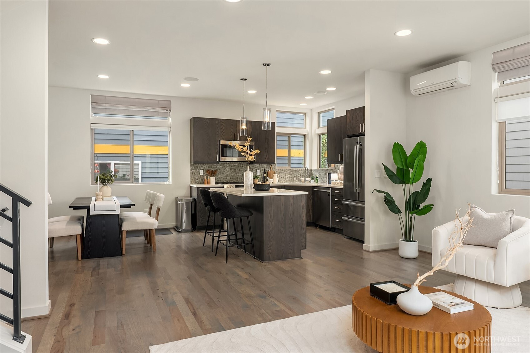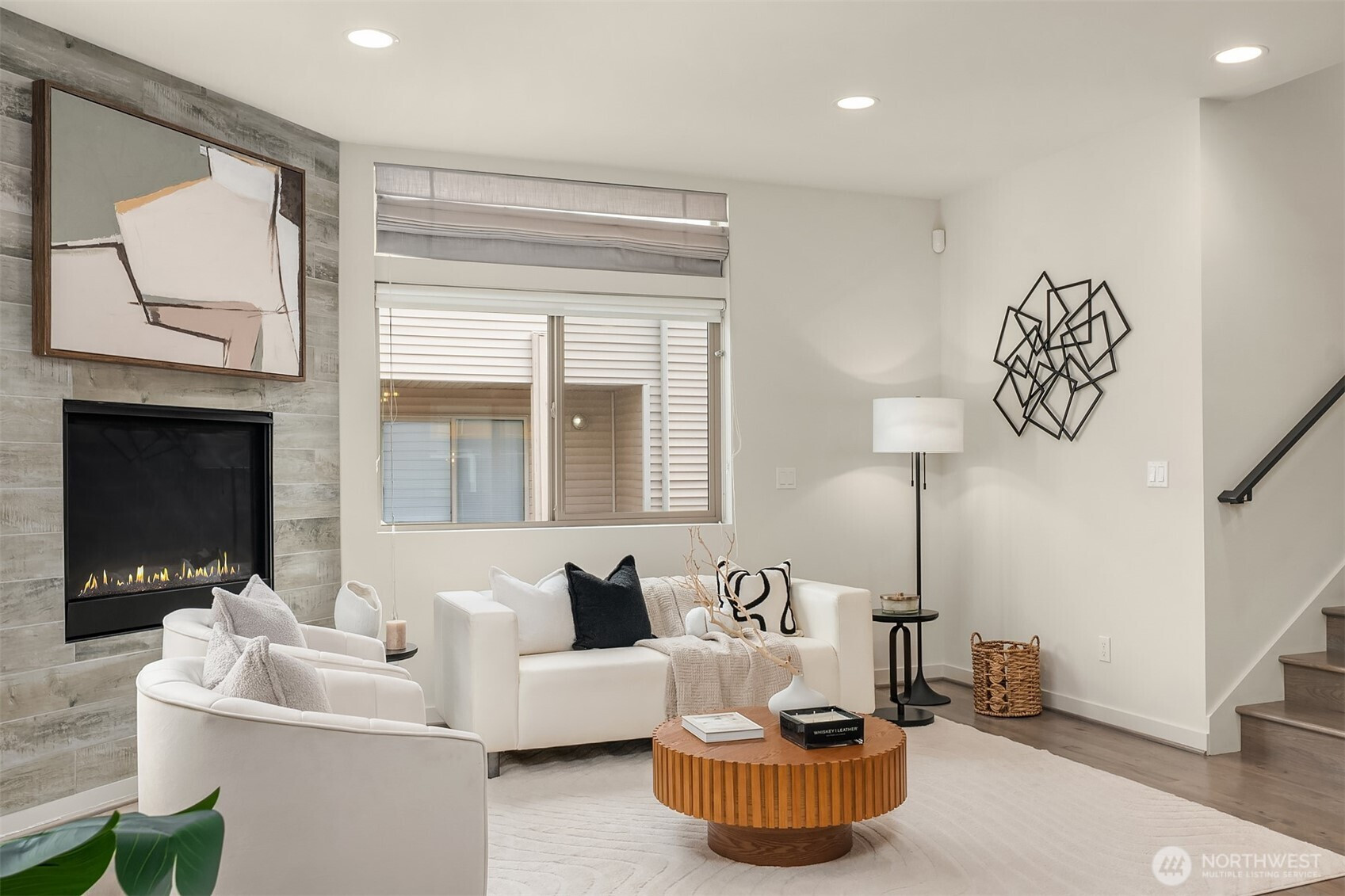 Light-filled, stand-alone townhome that blends style, comfort & functionality. Featuring 3 beds -3.5 baths, this home offers a thoughtful layout. First-floor ensuite bed, ideal for guests, office or family rm. Main level boasts living rm, dining rm, powder rm, fireplace and modern kitchen with quartz countertops & wood floors throughout. Upper floor has 2 beds, including primary w/bath and walk-in closet, 3/4 bath & laundry Enjoy a rooftop deck with territorial views, perfect for entertaining or relaxing. 1 car attached garage. Walk Score of 91- steps away from vibrant Ballard shopping, restaurants, coffee shops, & local markets. Proximity to top-rated schools and easy access to major transit routes round out the amenities this home offers