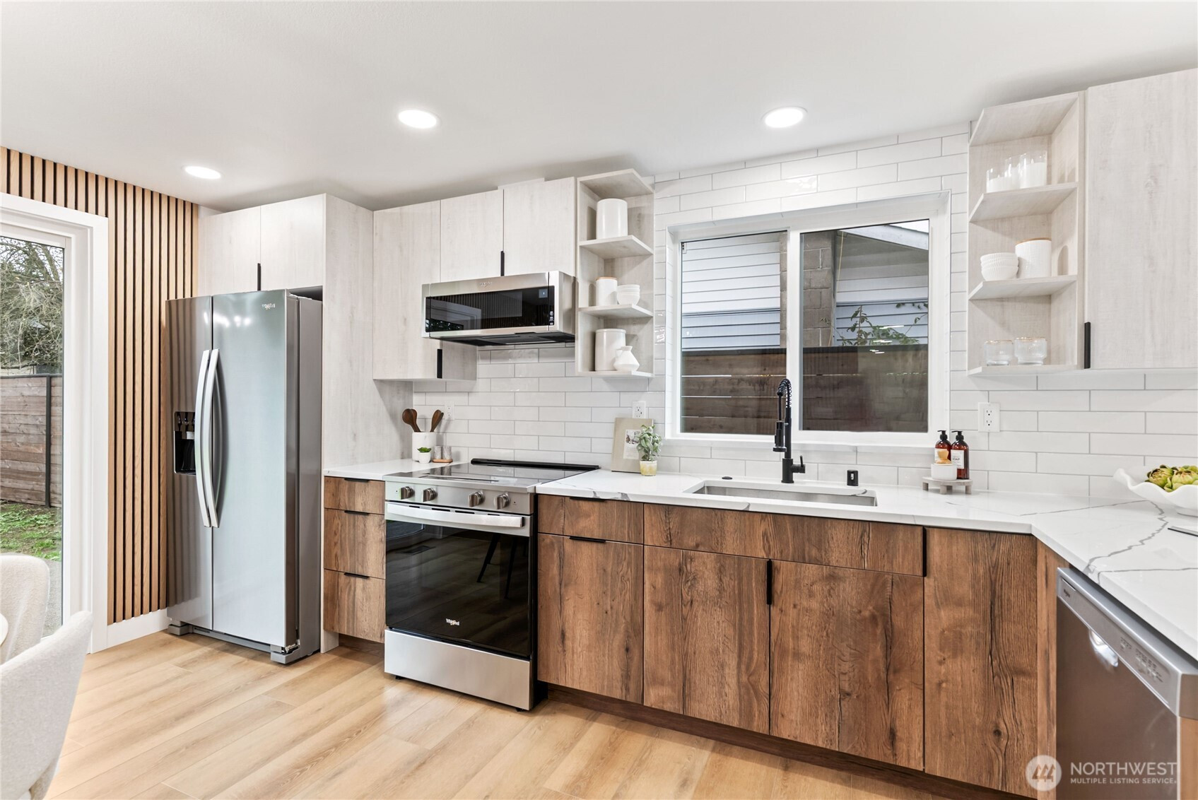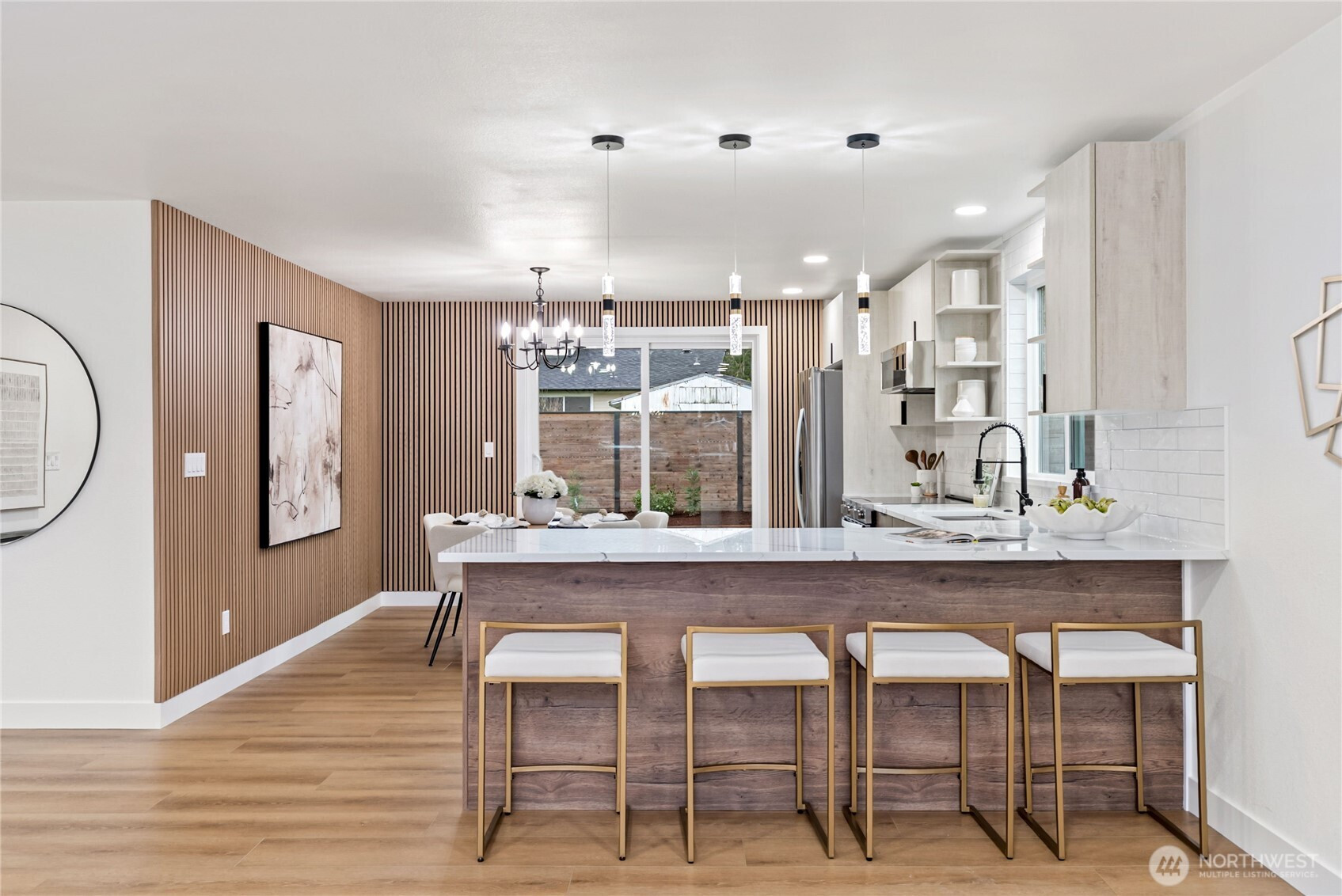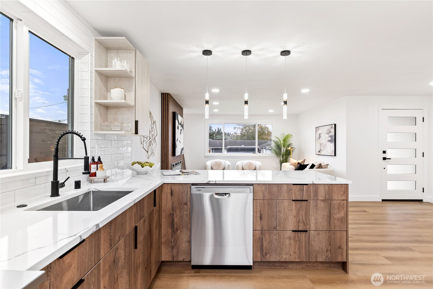 Beautifully renovated rambler blends style, function, &convenience. Thoughtfully updated from top to bottom, it features all-new finishes including a new roof, furnace, A/C, LVP flooring, siding, insulation, and stylish tile in the bathrooms. The spacious floor plan offers a welcoming living room with a cozy fireplace, a new kitchen with an eating area, and brand-new stainless steel appliances. With three bedrooms and 1.75 baths, this home is ready for comfortable modern living. Outside, enjoy the privacy of a fully fenced yard. Located just minutes from Highline College, Des Moines Marina, parks, shops, and waterfront dining. Enjoy easy access to SeaTac Airport, I-5, and the Link light rail station—perfect for commuters /travelers alike.