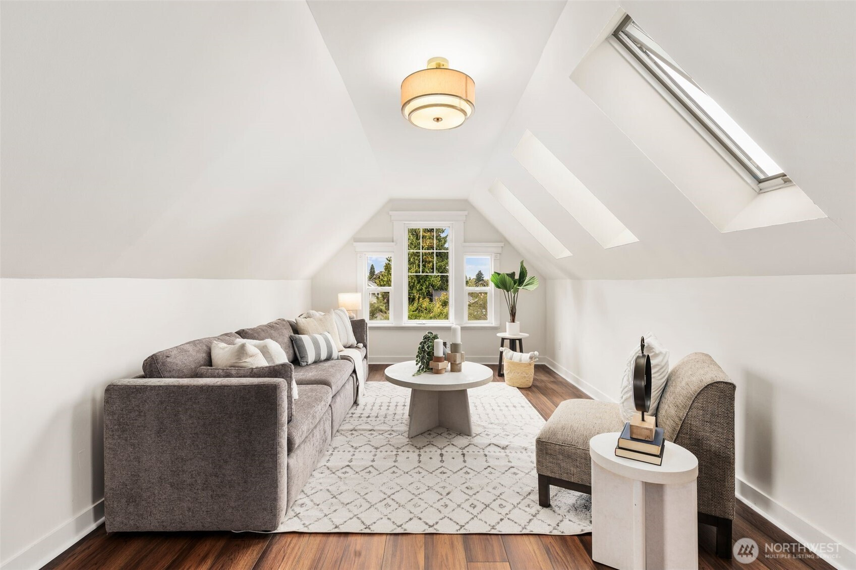 Perfectly positioned atop Queen Anne hill, this timeless home blends historic charm and modern comfort. Greeted by soaring ceilings and spacious, light-filled rooms, this floor plan is an entertainer's dream. The beautiful, original staircase leads to the 2nd floor bedrooms and bathrooms. Primary bedroom is complete with en-suite bath, walk-in closet, sitting room & french doors to a balcony. Let your imagination flow with ideas for the refreshed 3rd-floor extended bonus room with a view of the Olympic Mountains. Studio DADU is ideal for home office, guest suite or rental potential. Generous lot w/garage, greenhouse and lush, established landscaping creates a private retreat for gardens & gatherings. 90 walk score to all things Queen Anne.