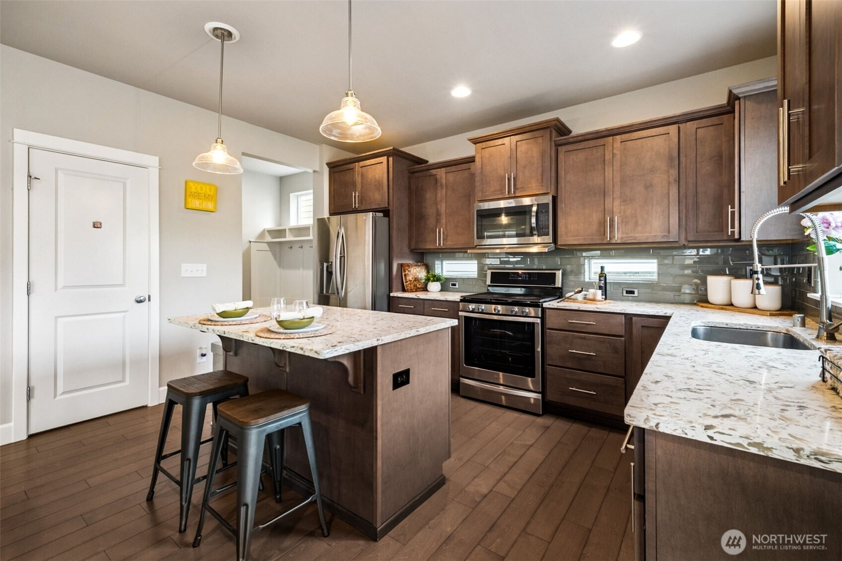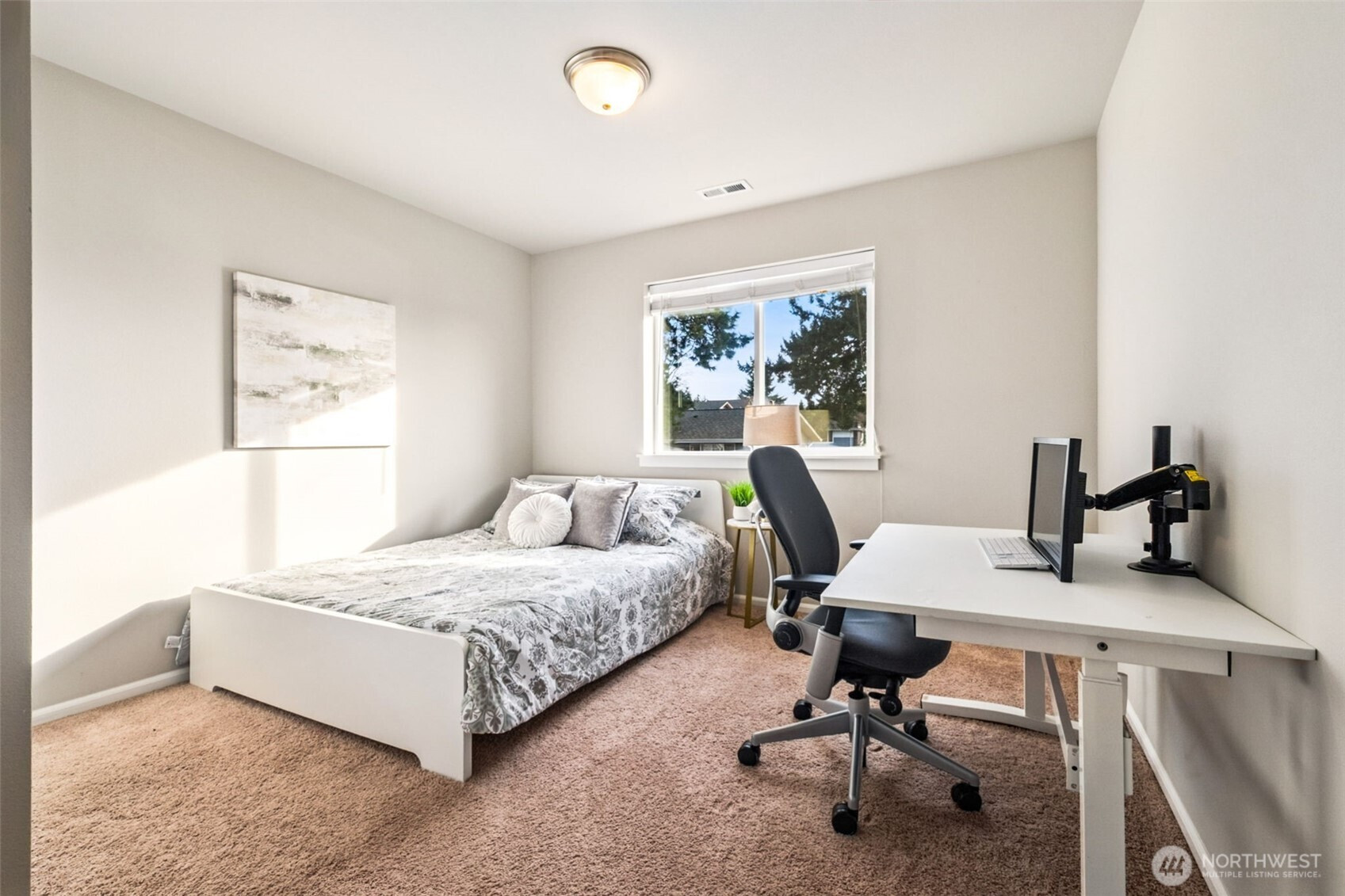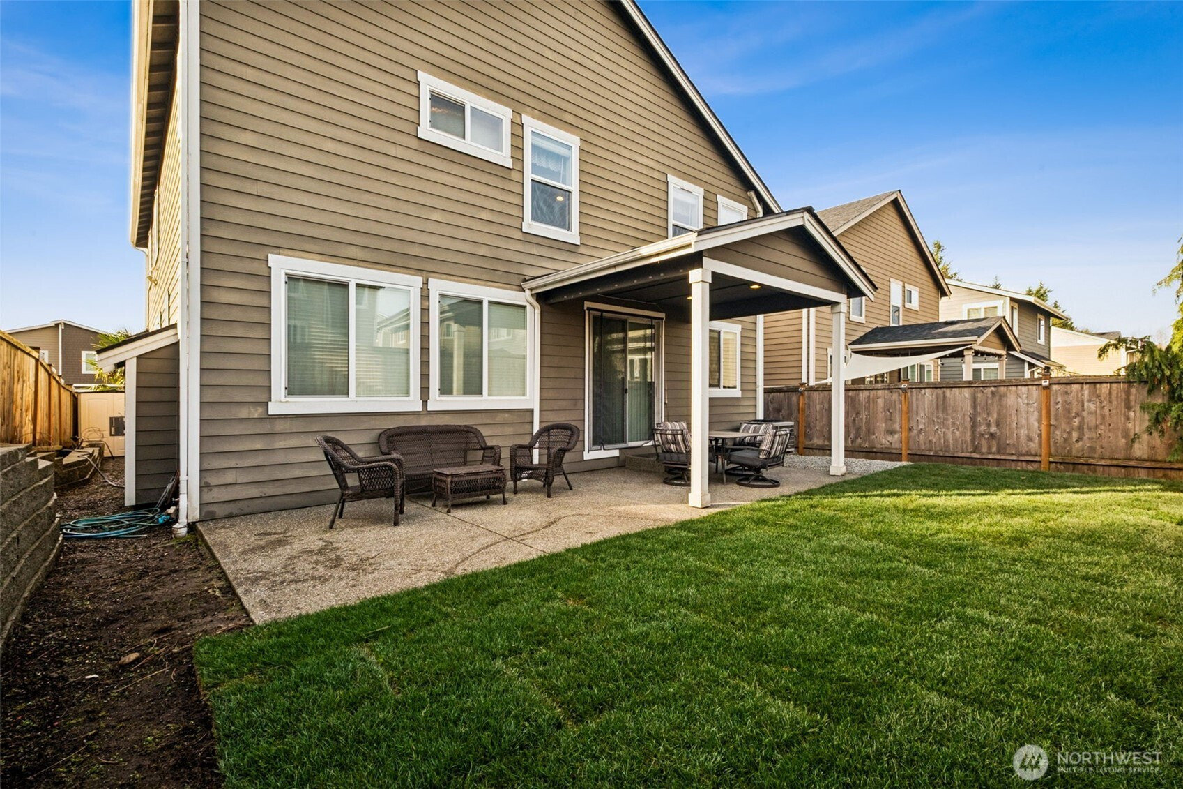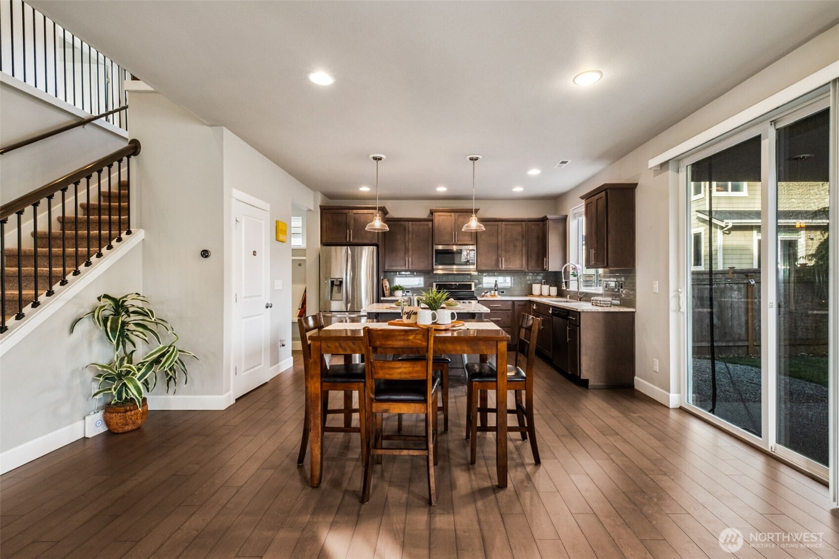BETTER THAN NEW! This barely new 10-year-old, like-new home includes all those "extras" when buying new construction: SS appliances, window coverings, lawn installation, and air conditioning! Modern, efficient systems include an energy-saving furnace, central A/C & tankless water heater. A rare main-level bedroom with ¾ bath is ideal for guests, multigenerational living, or a private office. The open-concept living area with gas fireplace is bright and inviting, and the gourmet kitchen features quartz counters, stainless steel appliances, a large island, and walk-in pantry—perfect for everyday living and entertaining. Upstairs, the expansive primary suite offers a sitting area, vaulted ceiling, 5-piece bath, walk-in closet. Four additional bedrooms include one that works well as a bonus or media room. The fully fenced backyard includes a shed for storage, and the ample covered 300 sq. ft. patio supports year-round outdoor living! The garage has extra-tall ceilings with storage racks and room for more shelving. Short walk to Kent's Canterbury Park! Great for outdoor activities! Walk to high school; only mins to other parks, schools, shopping & services! Nearby are: downtown Kent, Kent Station, and East Hill, w/excellent access to med facilities, fitness centers, dining, retail. Outstanding commuter convenience to SR-167 & I-5, plus nearby buses and the Sounder commuter rail. Travel to SeaTac Airport, Seattle, Bellevue, Renton, Tacoma, Auburn, and more in 30–60 minutes.