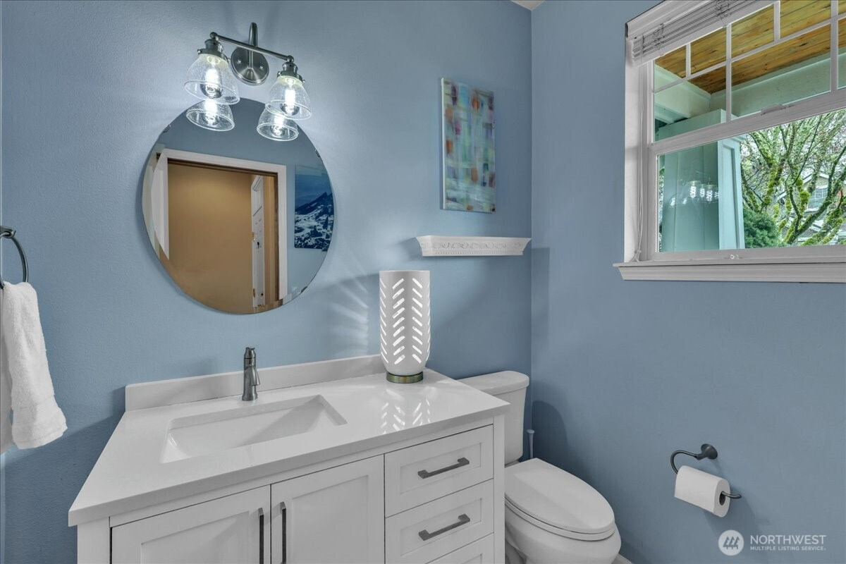 Discover one of the rarest opportunities in Maple Valley! This beautifully updated 4-bedroom, 3.5-bath home is one of only three properties in the neighborhood featuring a fully finished basement, offering exceptional flexibility for living, entertaining, or multi-generational needs. Step inside to a fully remodeled main floor showcasing modern finishes, including stunning quartz countertops, all-new interior doors, and a fresh, contemporary feel throughout. The kitchen flows seamlessly onto a spacious deck, perfect for outdoor dining or relaxing while enjoying the peaceful surroundings. Upstairs, you'll find a primary suite with a vaulted ceiling, walk-in closet, and 5-piece bath, along with two other spacious bedrooms, a bonus loft, and another full bath. Downstairs, step into a large rec room plus an additional bedroom and bath, perfect for guests or multigeneration living. Outside, enjoy a large, fully fenced backyard that backs directly to green space—offering privacy and a serene natural backdrop rarely found. Major system upgrades provide peace of mind, including a brand-new roof with a 50-year transferable warranty, a new furnace, and a heat pump with A/C for efficient, year-round comfort. This home combines thoughtful updates, rare features, and an unbeatable setting—don’t miss your chance to make it yours!