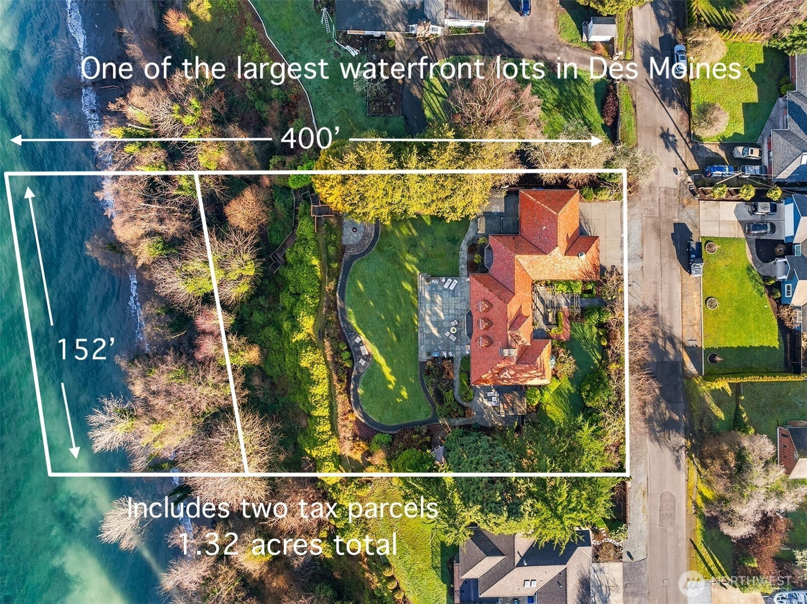 (503) 893-8874A singular French County Estate with a truly vast, commanding view of the Puget Sound as a dynamic, dramatic backdrop for a life indistinguishable from the feel of an exotic vacation. One of the widest (152 feet wide), largest (1.32 acre) waterfront lots in Des Moines, this 2005 construction (effect. yr. built) perfectly transports you to elevated living in your outdoor kitchen w/patio, private view hot tub, view side fire pit and trail to your private beach. At the beach, enjoy boating (mooring possibilities, buyer to verify), fishing and picnicking or walk south to Saltwater State Park, a 79 acre waterfront masterpiece. Home was totally remodeled in 2005; indoor features include a full chef's kitchen, media room, 4 car garage, arched doorways and custom stained glass windows (full upgrade list attached for agents). Perfectly located, this home is an unnoticeable, seamless drive to the airport. Less than 15 minutes away, enjoy Downtown Des Moines featuring the private marina, pier and an assortment of dining options. Plan for a long showing as you won't want to leave the feeling.