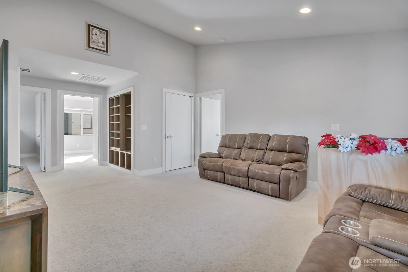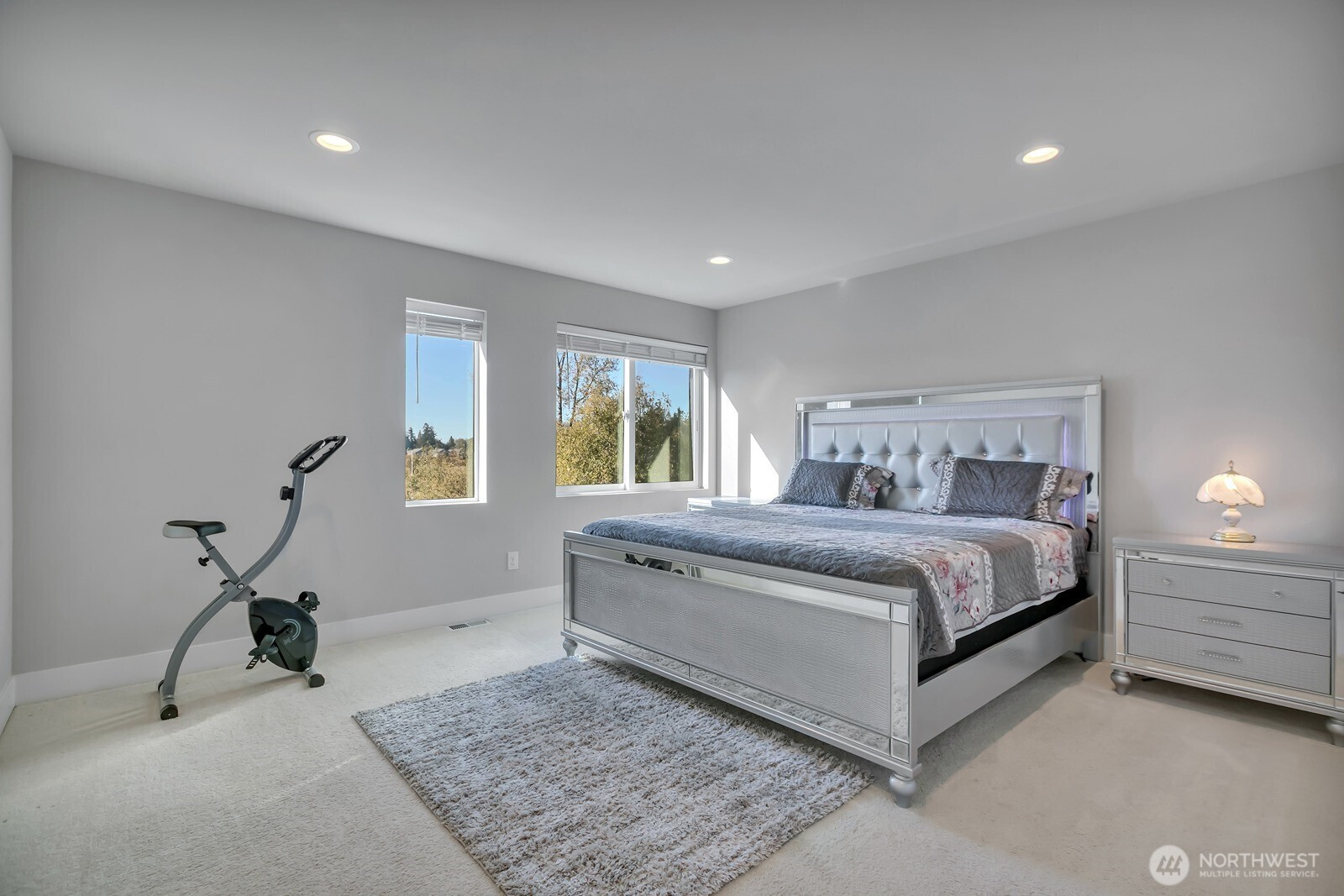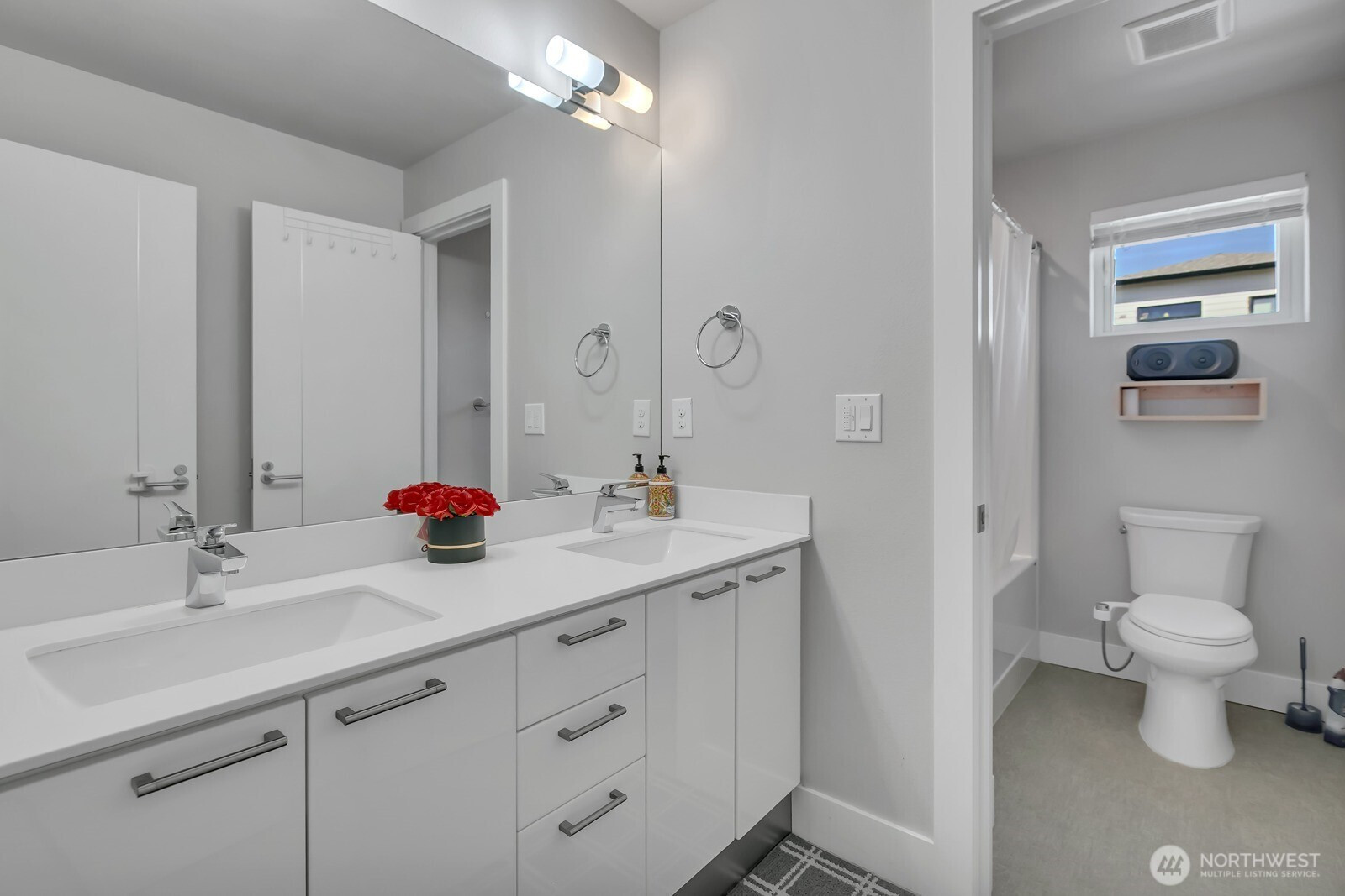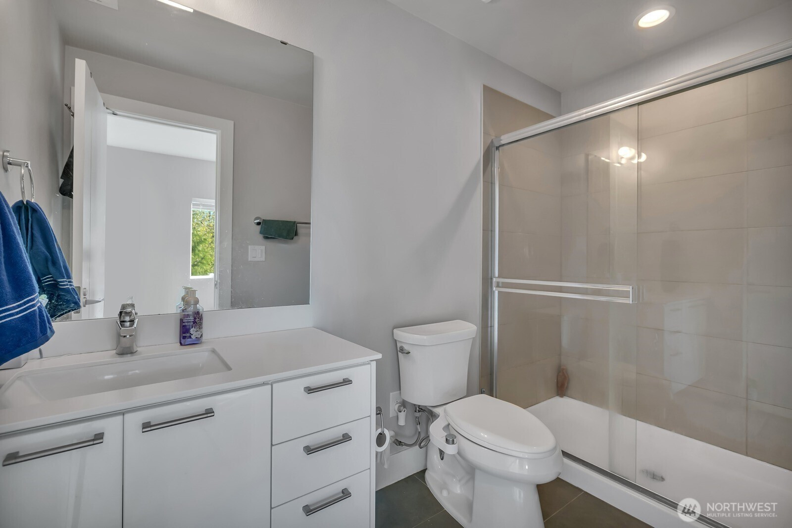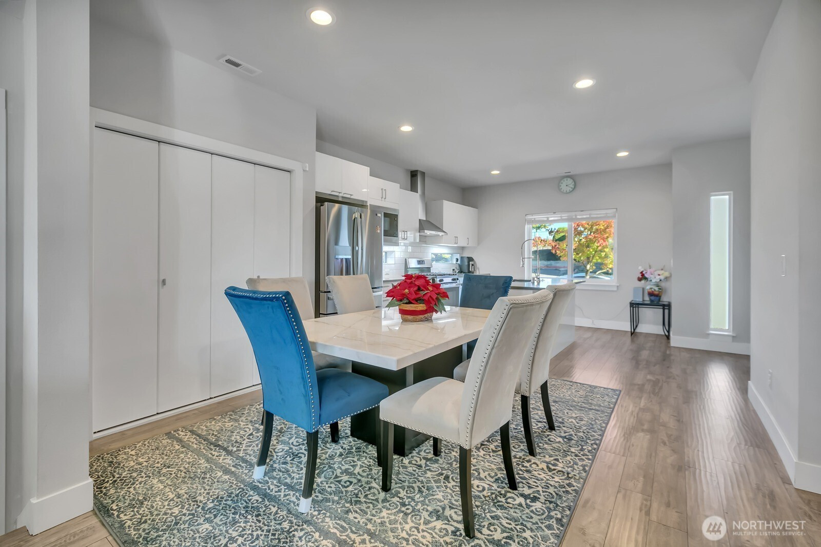 Modern 3-story home built in 2020 with quality Ichijo features throughout—dual sliding windows/closet doors, LED smart lighting, Nest thermostat & more! Bright open-concept main floor with quartz kitchen counters, soft-close cabinets, and all appliances included. Dining area opens to cozy living room with gas fireplace and large covered patio—perfect for entertaining. Upstairs has 4 bedrooms, laundry, and a spacious loft with built-ins. Primary suite features a 5-piece bath and walk-in closet. Bonus room and ¾ bath on lower level offer MIL potential. Backs to greenbelt for added privacy.