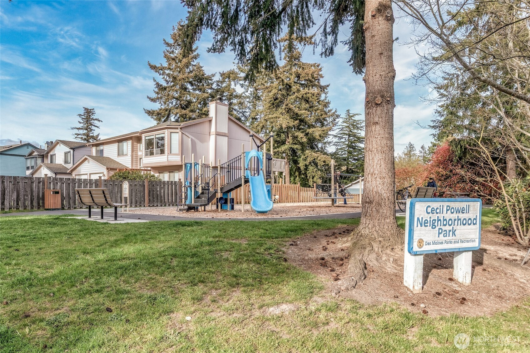 Beautifully maintained home on a quiet cul-de-sac. Prime location close to everything in Des Moines.. The open beam ceiling in the living with gas fireplace for those CHILLY NW nights. The kitchen has been updated with a nice breakfast bar. There is a french door to a large deck for BBQ's and fun. The backyard has ample space for a garden and a nice flat yard. Seller is leaving the garden shed for storage. Downstairs is set up for extended stay or one bedroom, three quarter bath and kitchenette. At the end of the street 300 feet from the house is Cecil Powell Park . There are many activities that happen spontaneously here at the park. You can do the Des Moines Creek trail or just go to the marina for salt air and coffee.