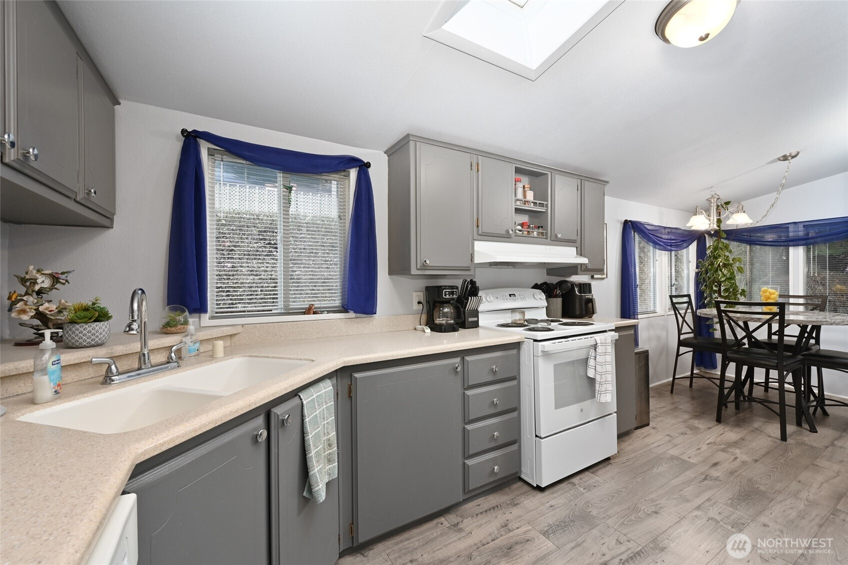 Welcome to Kloshe Ilahee, a peaceful, secluded community packed with resort-style amenities, including a clubhouse with library, TV lounge, game room, fitness room, sauna, hot tub, spa, and a large heated outdoor pool. This updated 1500 sq. ft double-wide home with 3 bedrooms and 2 baths was beautifully refreshed in 2021 with new vinyl plank flooring, exterior siding and new paint, new roof, appliances, countertops, skylights, custom refinished kitchen cabinets, updated woodwork, refinished doors, new light fixtures, hardware, and all-new closet shelving & new rock patio. Enjoy a highly private setting with a large covered deck, cozy backyard, and inviting covered front patio. With easy access to I-5 and Highway 18, this prime location is only 20 minutes to Sea-Tac Airport, 30 minutes to Seattle, and just 10 minutes to the new light rail at South 272nd. This home offers the perfect combination of comfort, convenience, and community living.