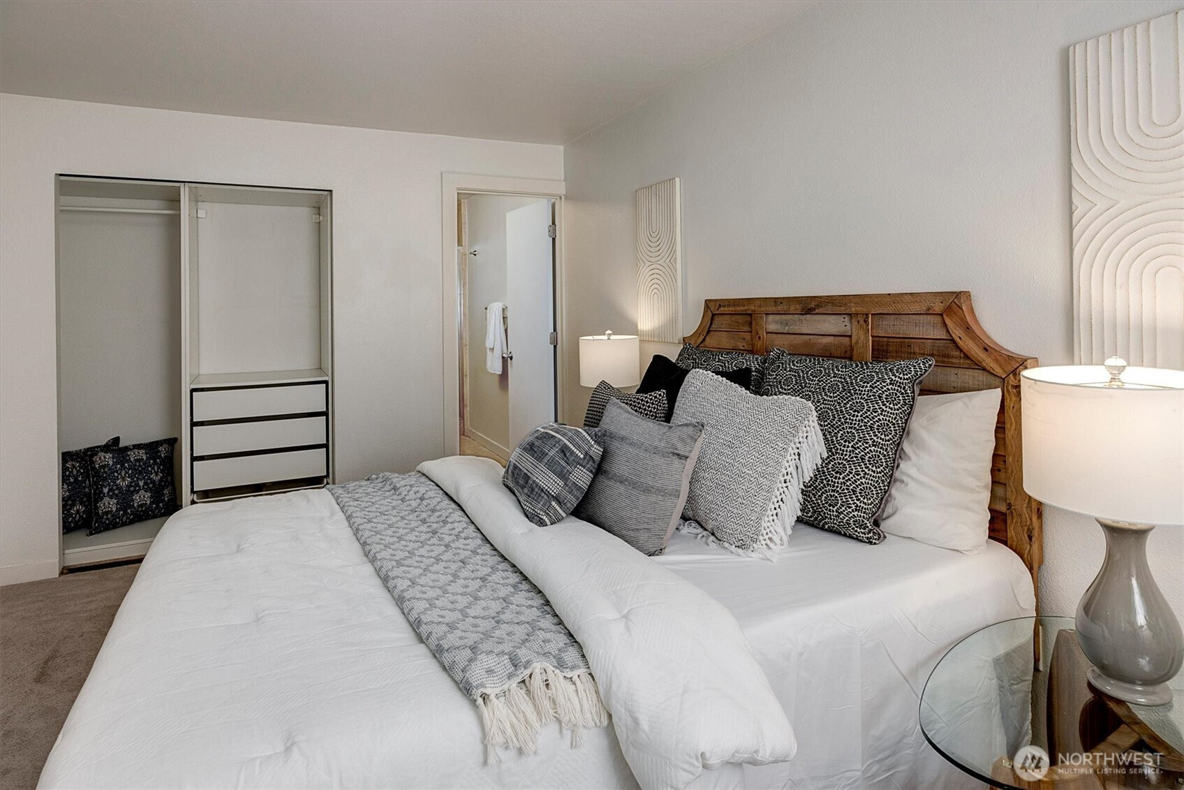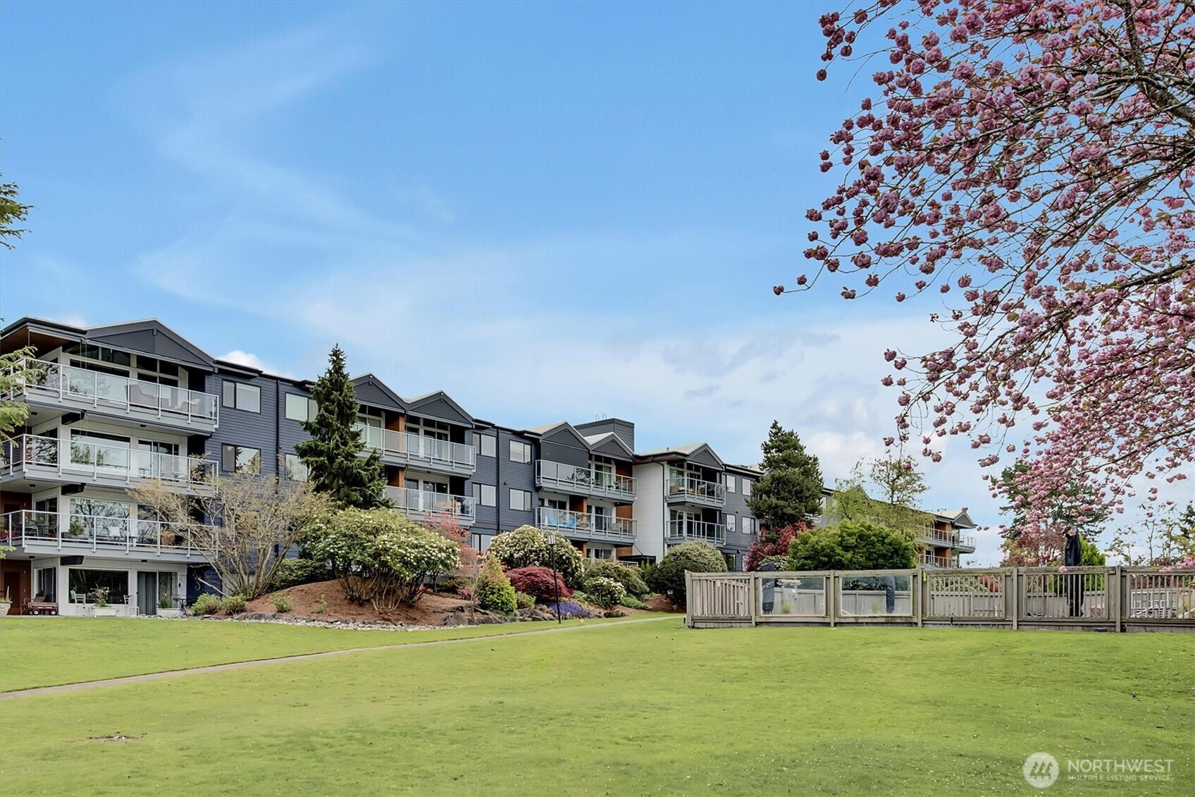 Standout opportunity in Madison Park! With a spacious floor plan, this two bedroom and two bath home offers a level of comfort and flexibility that sets it apart from other available offerings. Main-floor access allows for effortless living with no stairs or elevator wait, while interiors include updated finishes with granite counter tops and stainless steal appliances. Enjoy the light-filled spaces, with a dining area big enough to host a group or just a quiet night at home. The oversized private patio offers an extension of the living space, perfect for indoor-outdoor living. Spend summer days entertaining friends by the pool, or launching a kayak outing for a quick cruise around Lake Washington. All just moments from your door, creating a lifestyle that feels like you are on vacation everyday.