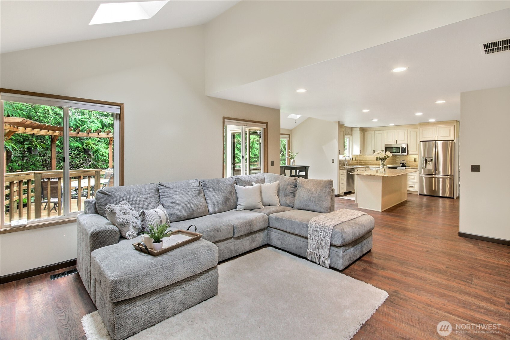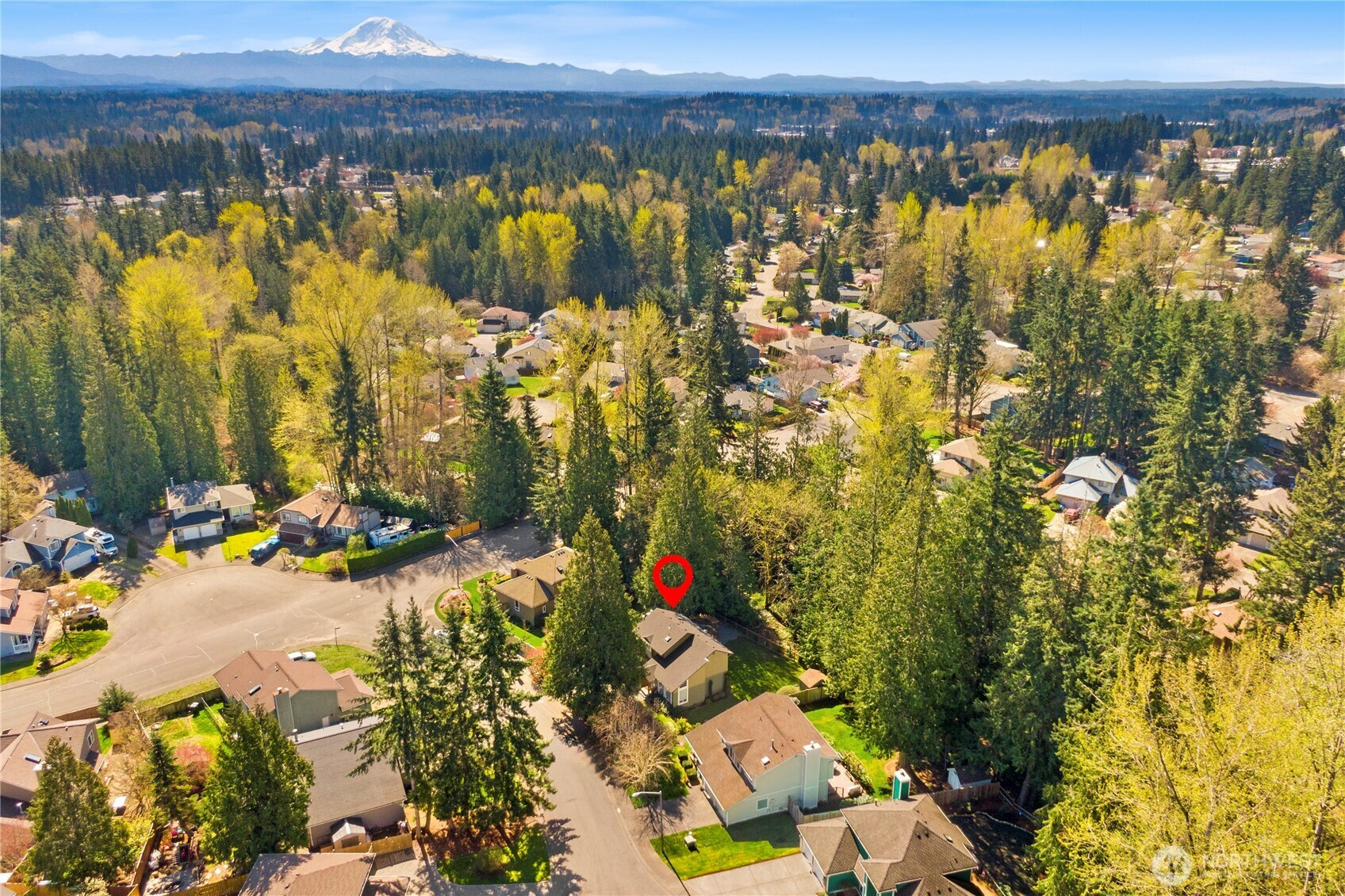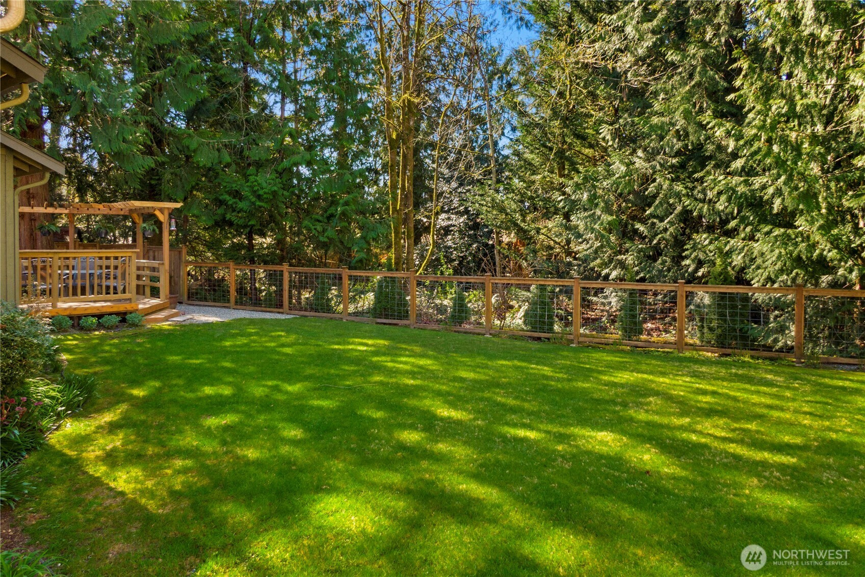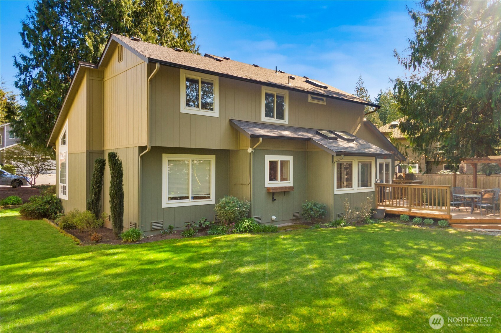 The pictures say it all! Set on a quiet cul de sac, this home has unsurpassed street appeal! Meticulously maintained and improved by the original owners, it will make a lasting impression from your first steps through the door. Vaulted ceilings over the living room & LVP flooring throughout the main floor. Follow the entry into a gorgously updated, island kitchen with state of the art appliances & custom cabinetry including a built buffet in the formal dining room. The island kitchen opens to a huge family room with an abundance of windows, gas log fireplace, skylights and a cozy eating nook and slider leading to the expansive deck. The pristinely private & fenced backyard includes a garden shed and a winter creek gurgles along the adjoining greenbelt beyond. Upstairs you'll find brand new carpeting & 3 bedrooms including a spacious primary suite with 2 sink vanity, shower & walk-in closet. Beautiful, mature landscaping front & back. Utility room with sink & storage cabinetry. New roof, gutter skylights and interior paint in 2020. The excellent commute locale puts you North and West of Covington traffic, yet walking distance to schools and minutes from Costco. Truly one not to be missed!