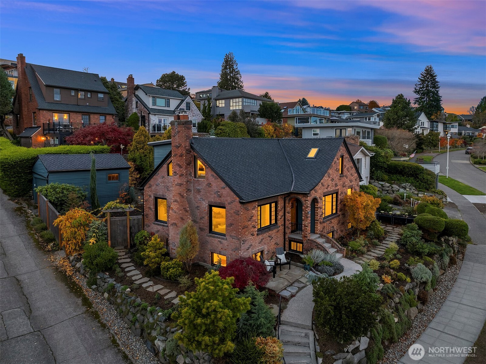 (503) 893-8874In Magnolia’s coveted Carlton Park—where underground utilities keep the skyline open—this 1928 brick Tudor blends classic character with a modern twist. Sunlit rooms frame postcard views of Elliott Bay, Mt. Rainier & Mt. Baker, showcasing NW beauty. The main floor flows through the living and dining rooms, kitchen, bedroom & full bath for easy living. Upstairs, the primary, updated ¾ bath and 3rd bdrm create a peaceful retreat with a view. The lower level adds versatility with a 4th bdrm, rec room and shop for guests, work, or hobbies. Original archways highlight its craftsmanship, while updates like new windows, upgraded electrical & a 50-year roof provide peace of mind. Beautifully landscaped, with The Village and downtown just min away.