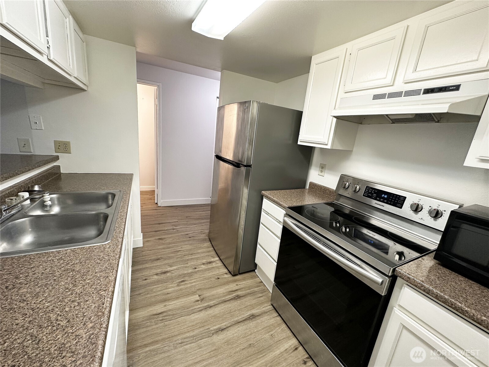 Welcome to this newly-remodeled, spacious and stylish townhome, offering 1,230 sq ft of comfortable living in a prime location. New hardwood flooring, new interior and exterior paint, new roof, new bathrooms, & fully fence. Fully finished, attached 1-car garage with driveway space for a second vehicle & plenty of guest parking. Main level entry, kitchen with stainless steel appliances & a spacious living room. Upper level has 2 large bedrooms with full bathroom, double closets and a peaceful outlook to the greenbelt. Second bedroom with a nook area & a walk in closet. Full sized new washer/dryer included. Ideally located within 2 miles of schools, shopping, freeway, public transportation, and more.