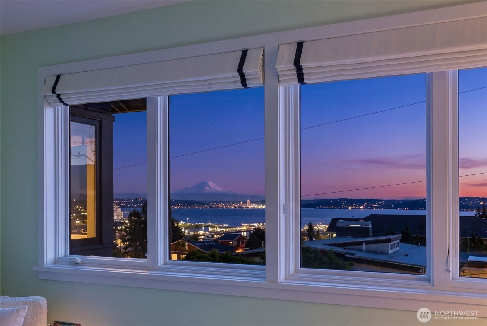 Effectively rebuilt in 2015 with every detail thoughtfully reimagined, this architecturally designed, turnkey Magnolia NW contemporary blends custom craftsmanship with unforgettable views. A dramatic two-story entry and walls of windows frame sweeping vistas of the city, Puget Sound, and Mt. Rainier—evolving from morning light to evening glow. Open-concept living flows seamlessly to a wraparound deck with built-in hot tub, creating a true indoor-outdoor experience ideal for both everyday living and effortless entertaining. The primary suite is a true escape, featuring vaulted ceilings, unobstructed 180° views from Mt. Baker to Mt. Rainier, a spa-inspired ensuite bath, and an oversized walk-in closet. With views from every upstairs bedroom and a private guest suite on the main level, this home offers a rare combination of design and function in one of Magnolia’s most sought-after settings. High-quality construction and designer finishes shine throughout, including fir windows, elegant lighting, curated wallpaper, Carrara marble countertops and tile, Wolf & Miele appliances, A/C, and an EV charger, while a recently completed landscape refresh with bluestone, native plantings, and automated lighting and irrigation is just coming into bloom. An oversized attached two-car garage with Garage Living built-ins and a ten-foot basketball hoop completes a home where thoughtful design, iconic views, and everyday livability come together seamlessly—prepare to be captivated.