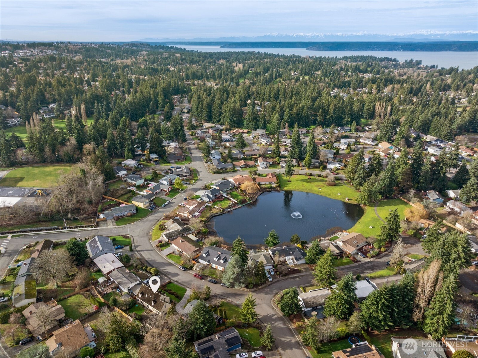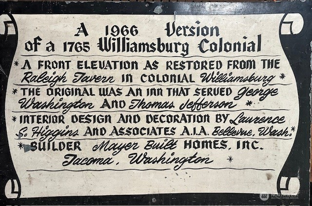 One of a kind home fashioned after a Williamsburg Colonial Inn first built in 1765! First time on the market since the 70's, this 4 bedroom home with primary on the main is truly a one of a kind opportunity to own a cherished neighborhood treasure. Privately situated on a beautiful Twin Lakes lot, this stately home is steps from the lake and conveniently located near Olympic View K-8 school. Beautiful hardwood floors greet you upon entering and formal gathering rooms flank the main entry. In the back of the house you'll find a large inviting kitchen, informal sitting room & private bedroom wing. Upstairs you have 3 add'l bdrms, full bath, bonus room & laundry room. Private yard, 2-car garage w/storage and so much more! Don't miss this gem!