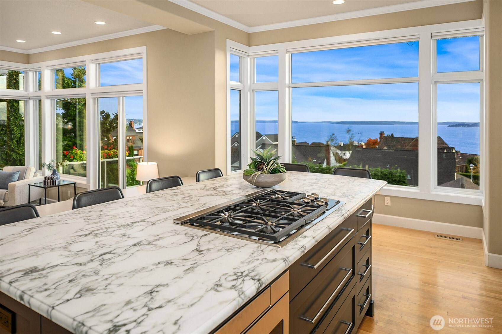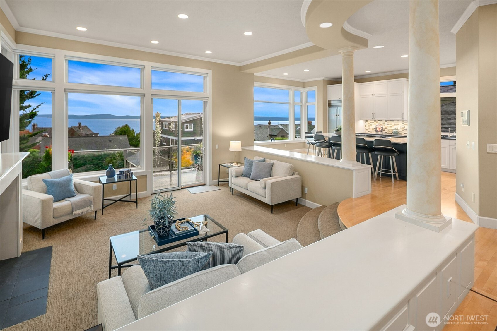 (503) 893-8874Experience serenity with views of dramatic skies, expansive Sound, distant isles, the Olympics, and an ever-changing maritime scene. Nestled in Magnolia’s coveted Carlton Park, this home boasts high ceilings and generous rooms plus outdoor spaces oriented toward the view. The open layout flows from elegant living and dining areas to a chef’s kitchen with an island and walk-in pantry, ideal for entertaining. Upstairs, the primary suite, embraced by sweeping views, is accompanied by two bedrooms and full bath. A daylight basement features a large bedroom, full bath, and bonus room with access to a fenced yard. Functional features include a service lift, ample storage, 2 car garage w/ workspace, EV charging, & backup generator. Make it yours!