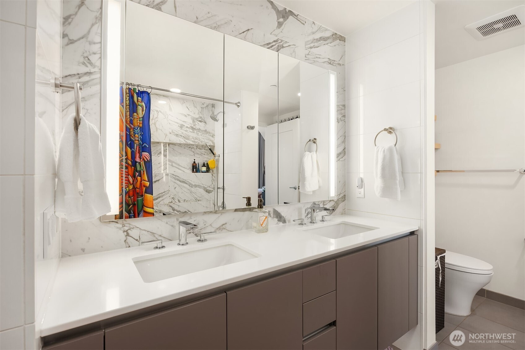 Welcome home to Spire and this lovely North facing, practically new one bedroom one bathroom home! Home #1109 has been gently loved by its owners and is in pristine condition with fresh paint. Home features custom kitchen lighting, Bosch appliances, large windows with BIG Space Needle views, a bedroom that fits king size bed with a large walk-in closet, and spacious walk through bathroom with access from entry and bedroom. Spire has top tier amenities with three floors to enjoy including a beautiful rooftop gym, private dining space, and almost 360 degree wrap around patio. Located conveniently next to South Lake Union, Belltown, and Queen Anne, Spire couldn't be closer to so many of Seattle's best restaurants, shopping, and entertainment.