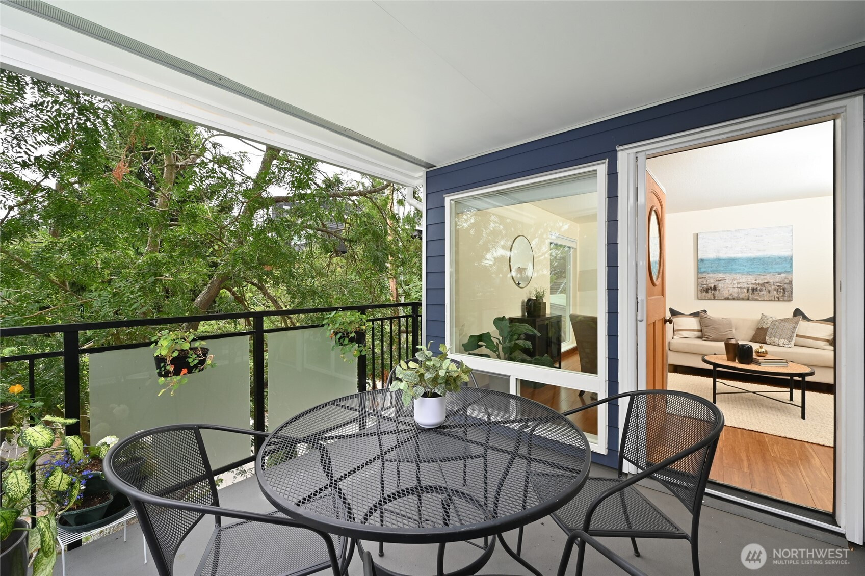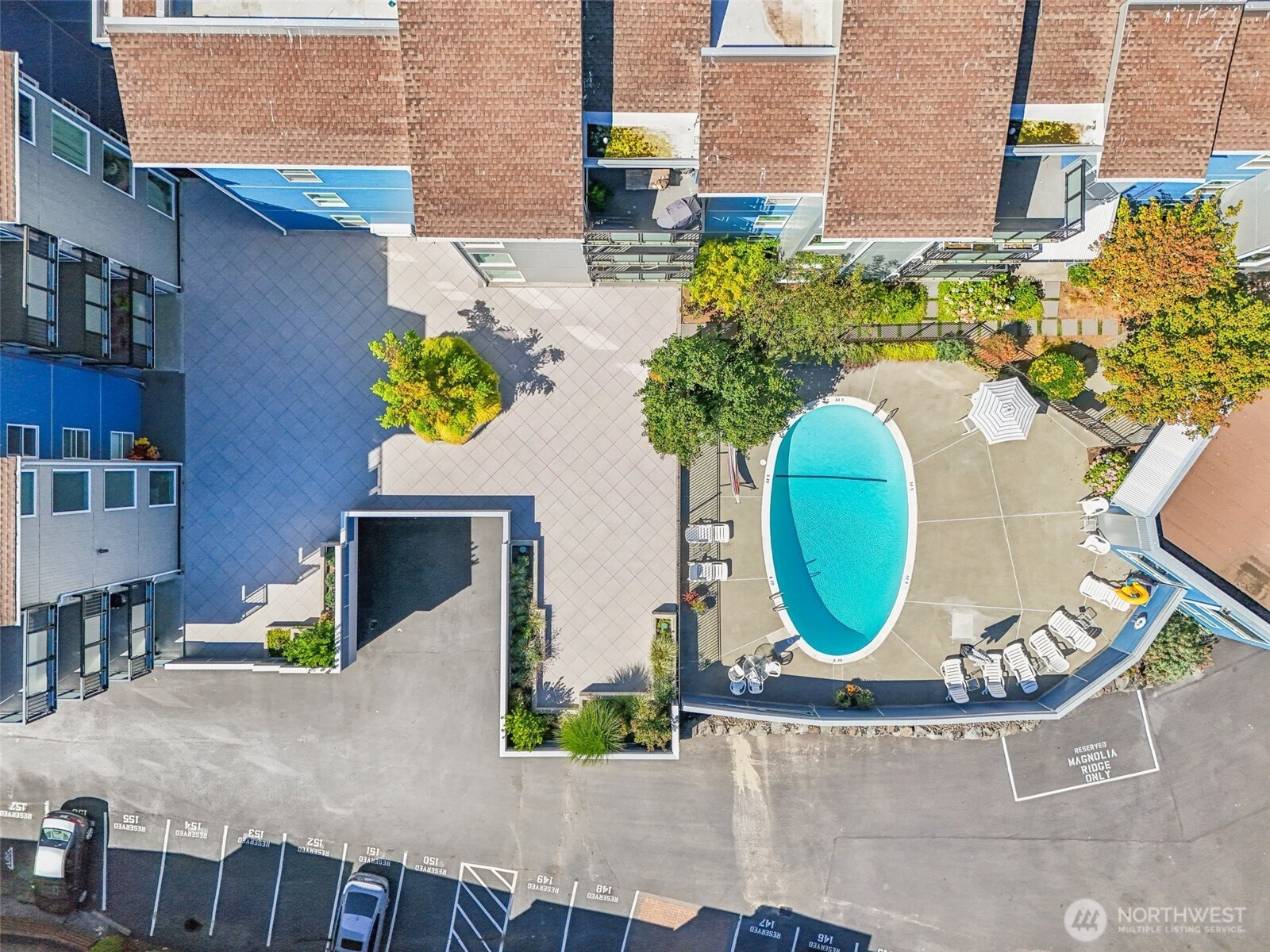 Bright corner condo on a quiet dead-end street with large windows and a private covered deck, perfect for morning coffee or summer entertaining. Slate entry leads to spacious living and dining areas with bamboo floors, new blinds, and fresh paint. Bedroom offers double closets and new carpet. Magnolia Ridge is a standout with extensive recent upgrades—new siding, decks, double-pane windows, roofs, and full plumbing replacement in 2024. Washer/dryer install allowed in unit. Secure entry, bike storage, covered parking, outdoor heated pool, and cabana. Convenient to Discovery Park, the Village, Ballard, Queen Anne, and Downtown. A building you’ll be proud to call home!