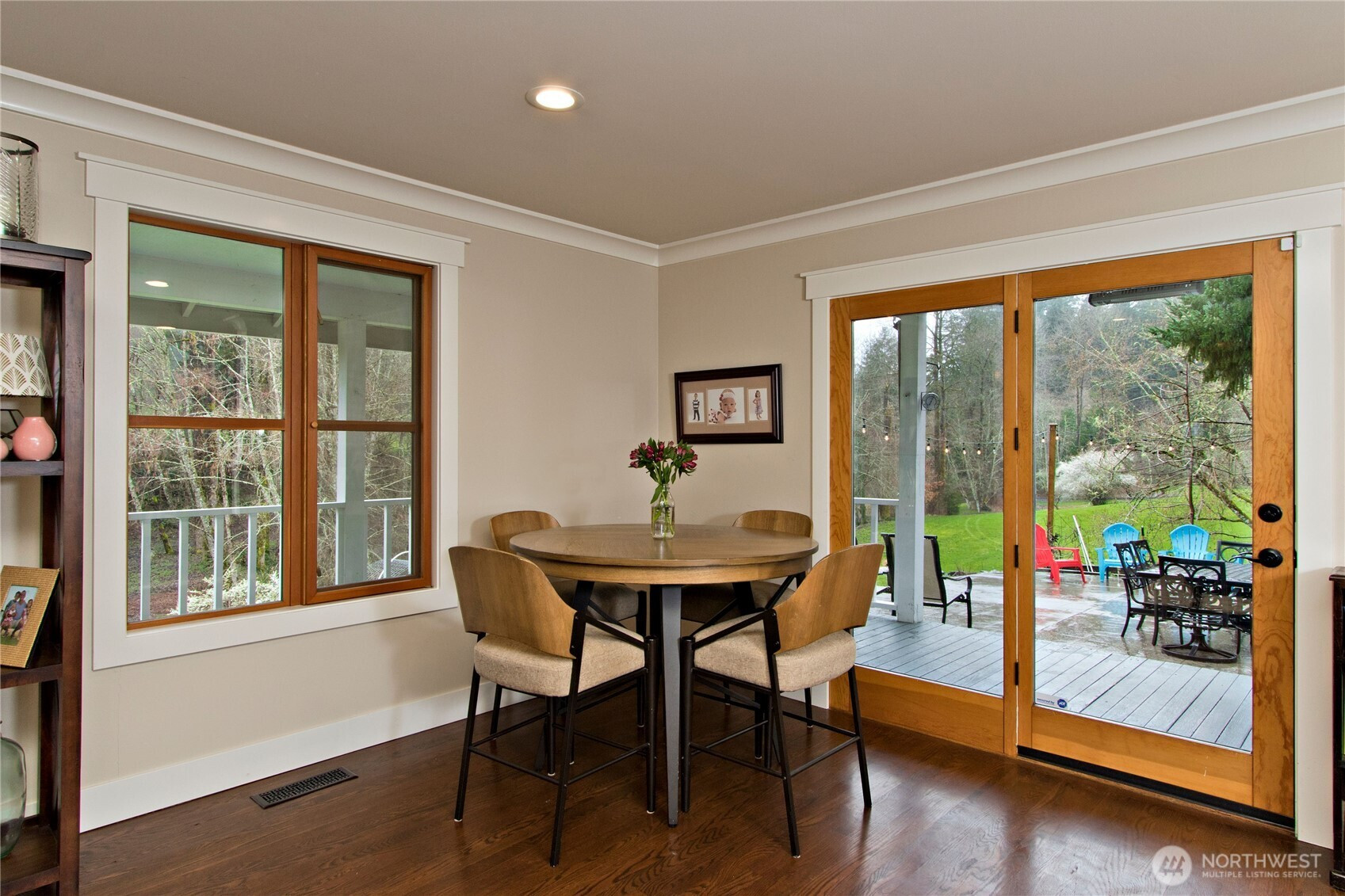 Set on a private 1.77-acres, this 3-bedroom 3.5 bath + bonus room home is well suited for multigenerational living & income potential, with a detached 3-car garage with a ***FINISHED ADU above the garage. The studio style suite with 3/4 bath & kitchenette currently operates as a successful income-producing Airbnb. The main home greets you warmly on a covered porch with french doors leading to the welcoming entrance with high ceilings and beautiful oak floors. At the heart of the home, the kitchen includes ss appliances, quartz countertops, a built-in dining nook with storage, and a built-in desk area. Multiple gathering areas provide comfort and flexibility for everyday use and entertaining, including a bonus/media room, and formal dining room. The primary suite includes an en-suite 3/4 bath, walk-in closet, and a unique finished attic storage space. Windows frame views of surrounding nature, creating a retreat-like sense of privacy. A covered wraparound porch overlooks the terraced front yard where elk & other wildlife frequently visit. A trail from the chicken coop leads to your own private stretch of Issaquah Creek running through the property, where salmon return to spawn each year. A creekside firepit area provides a place to gather, relax, and spend evenings around the fire with the sound of the water. Established gardens, fruit trees, berries, a swim spa, and a water feature create inviting outdoor spaces to relax and enjoy the property. Issaquah School District. A/C.
