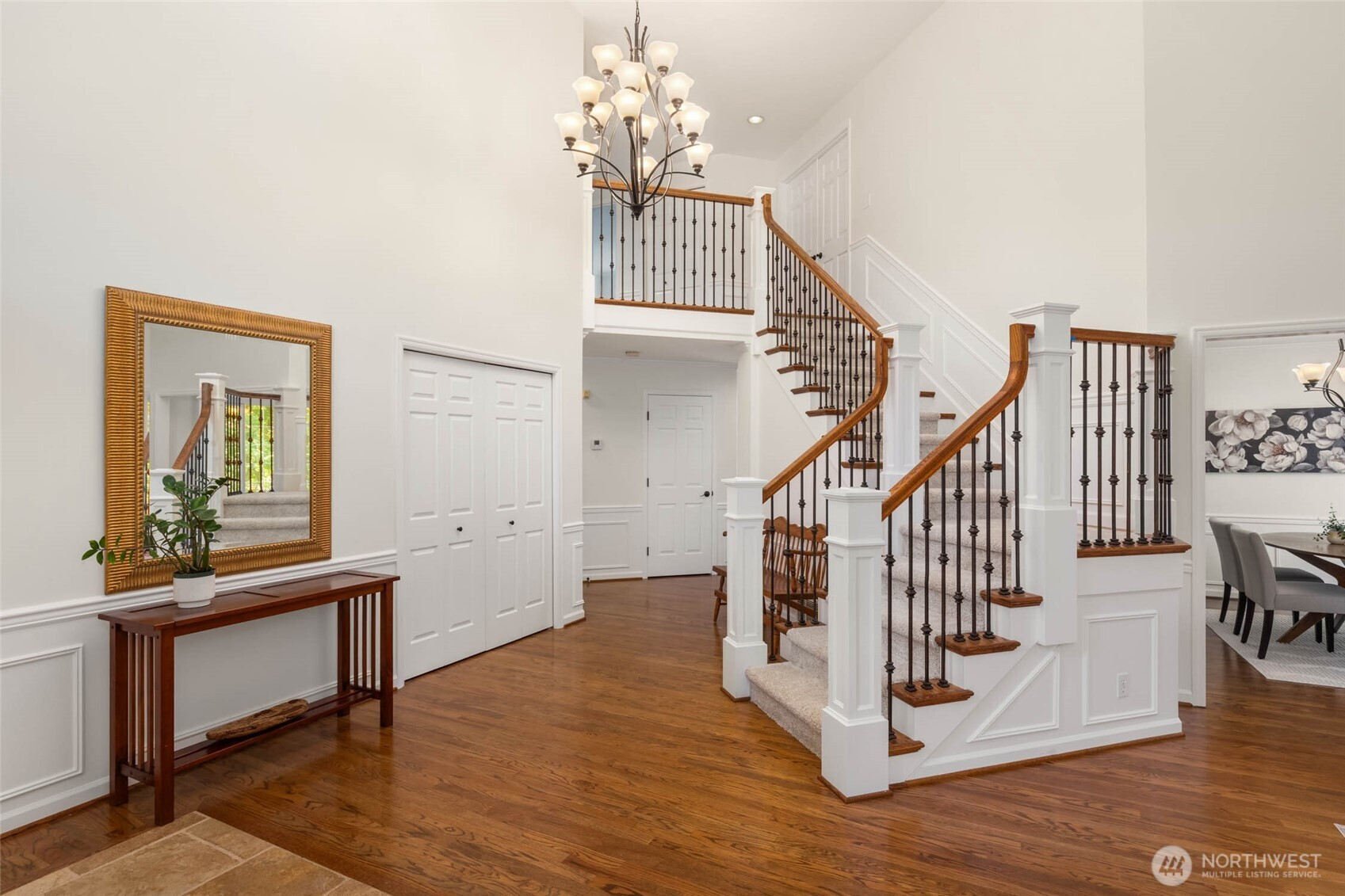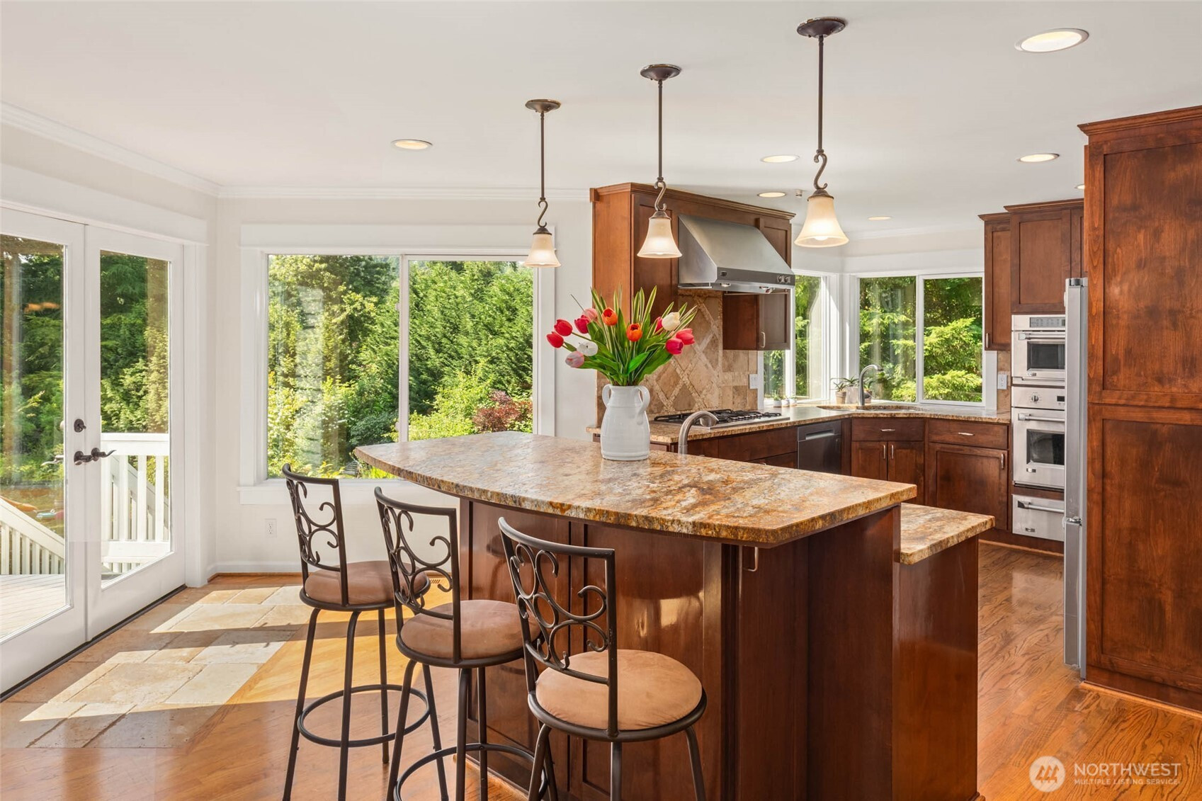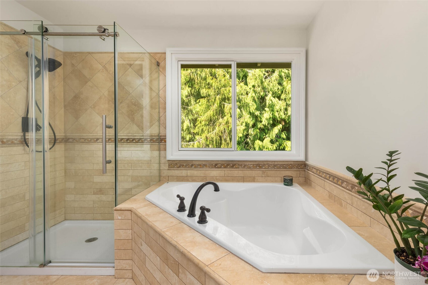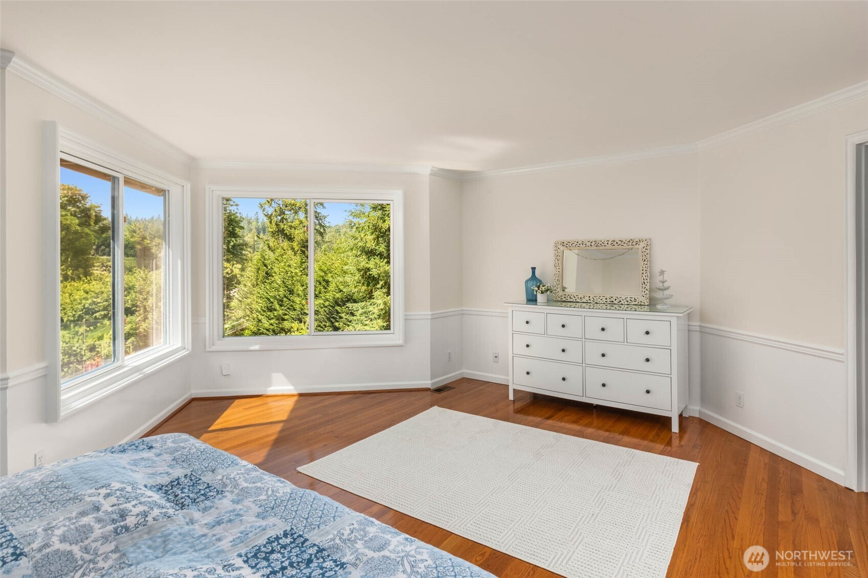 Welcome to Amesbury - one of Redmond’s most coveted neighborhoods, just minutes from downtown Redmond! This stunning William Buchan-built home sits on an estate-sized lot w/lush greenery & garden space, offering privacy & tranquility. Crafted to the highest standards, it features a 3-car garage, hardwood floors, new carpet + paint, gas fireplace, A/C, built-in speaker + sprinkler systems & ample storage. Enjoy an upgraded kitchen with new appliances & updated bathrooms. A 50-year roof and new asphalted driveway installed just a few years ago. The east-facing layout floods the home with natural light, and the back deck is perfect for relaxing in the afternoon sun. The spacious primary suite includes a dual vanity, soaking tub & oversized walk-in closet. Ready to welcome you!