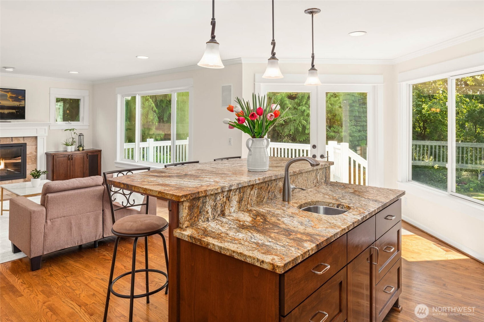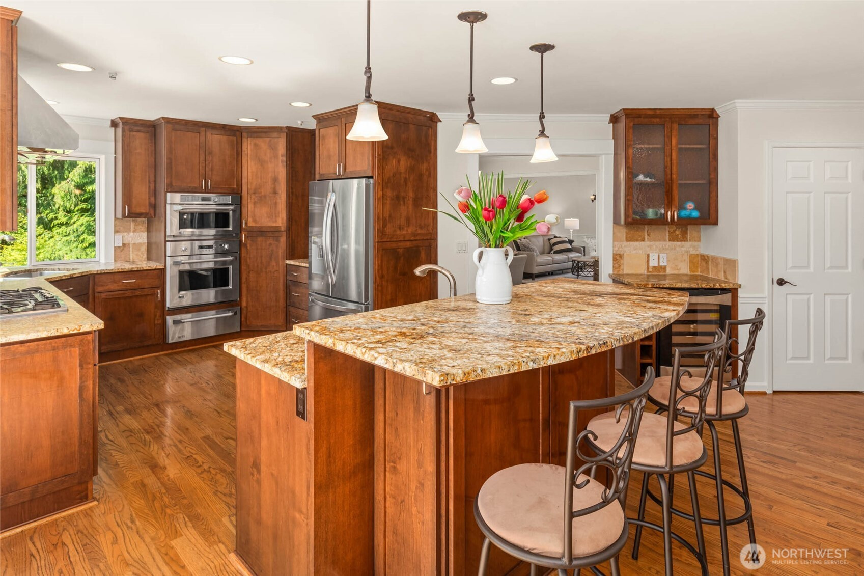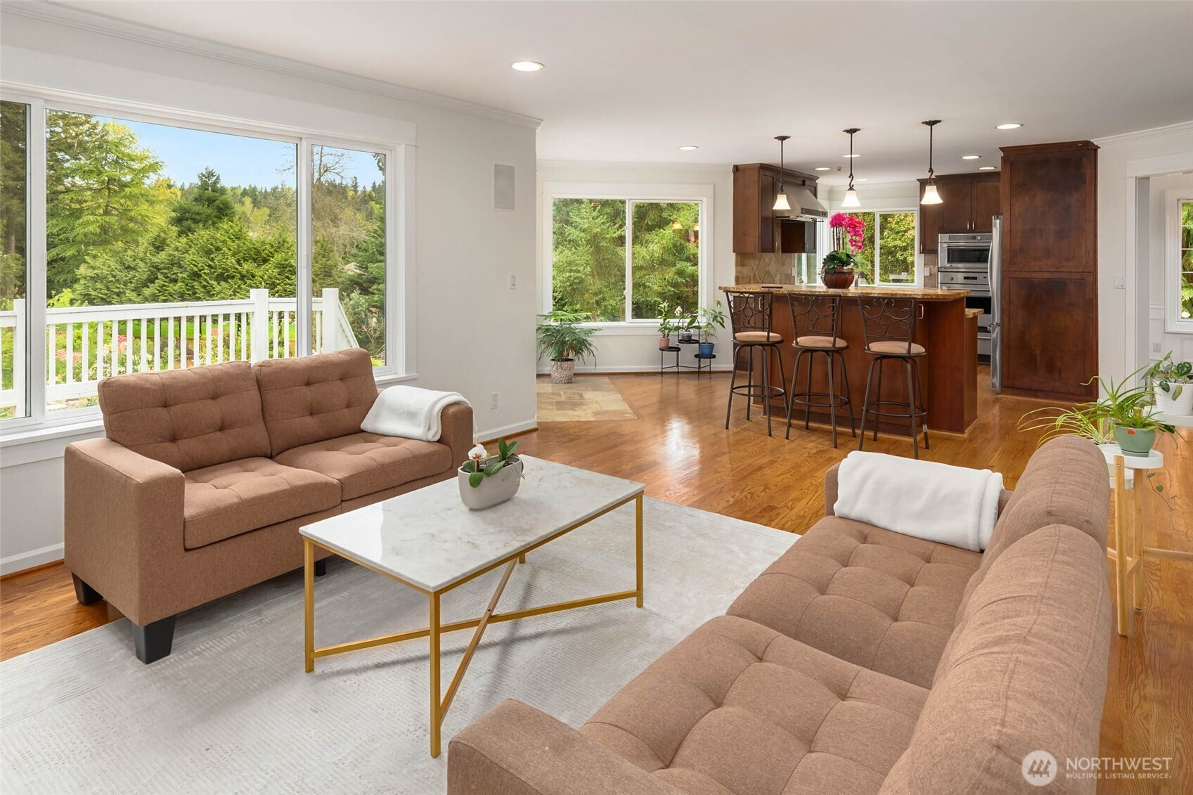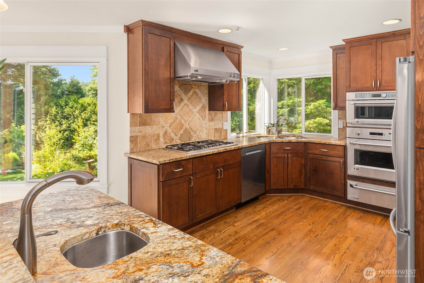 Welcome to Amesbury - one of Redmond’s most coveted neighborhoods, just minutes from downtown Redmond! This stunning William Buchan-built home sits on an estate-sized lot w/lush greenery & garden space, offering privacy & tranquility. Crafted to the highest standards, it features a 3-car garage, hardwood floors, new carpet + paint, gas fireplace, A/C, built-in speaker + sprinkler systems & ample storage. Enjoy an upgraded kitchen with new appliances & updated bathrooms. A 50-year roof and new asphalted driveway installed just a few years ago. The east-facing layout floods the home with natural light, and the back deck is perfect for relaxing in the afternoon sun. The spacious primary suite includes a dual vanity, soaking tub & oversized walk-in closet. Ready to welcome you!