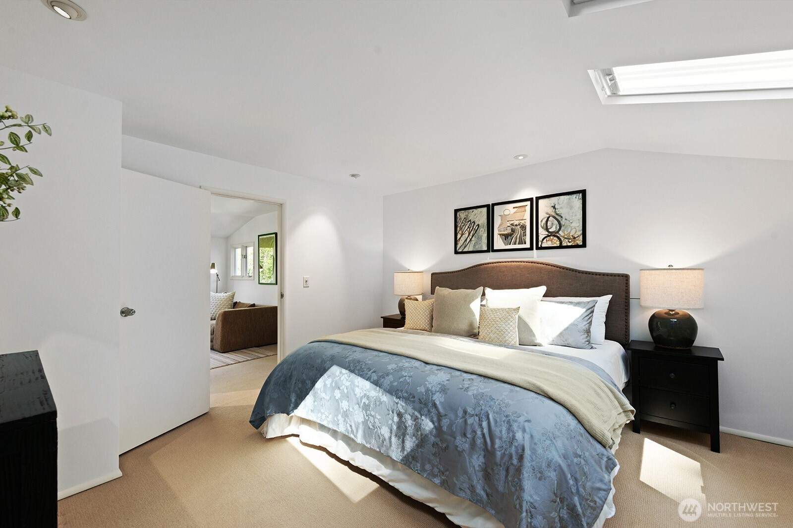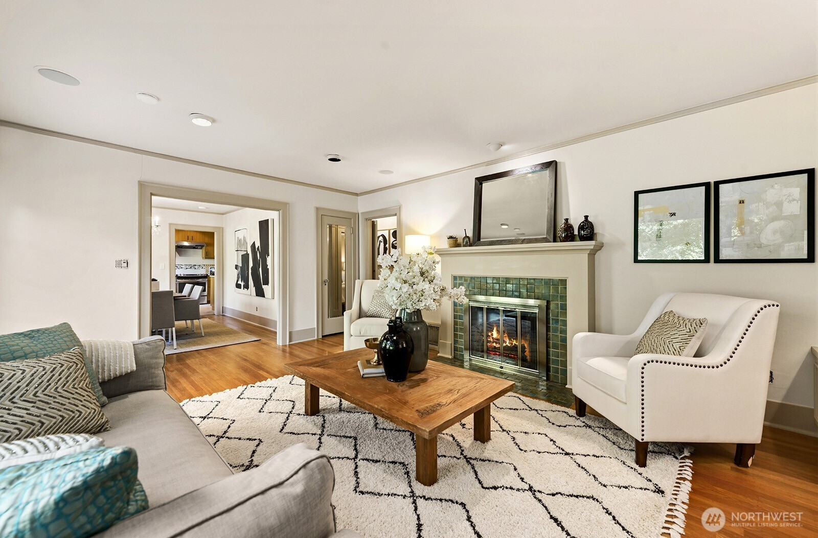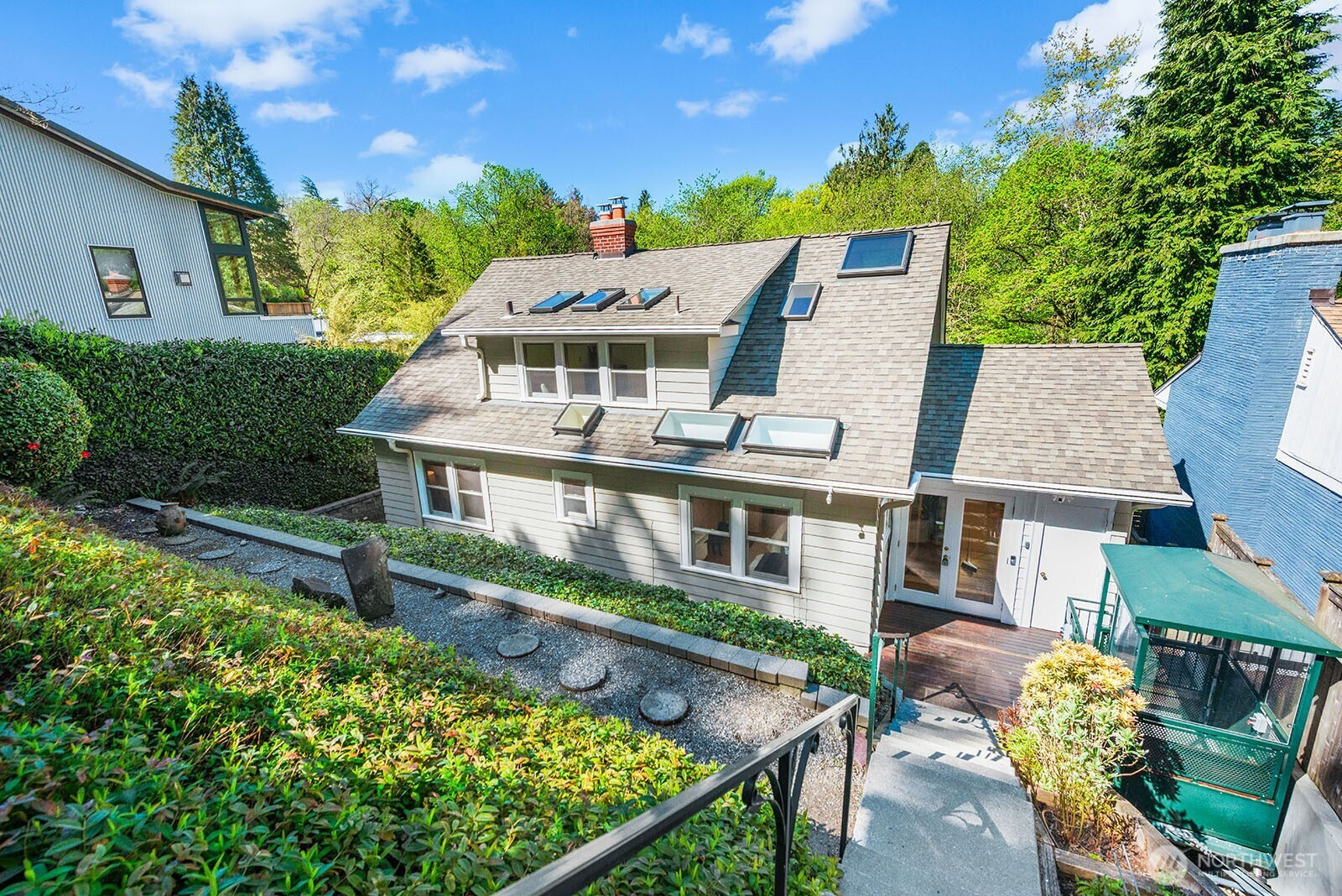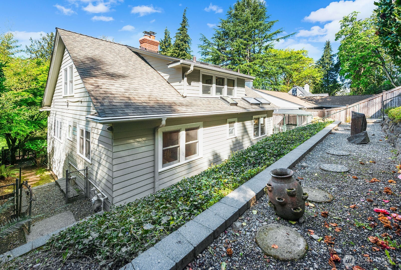 Beautifully updated 1924 home overlooking Mt. Baker Park in a peaceful setting less than a block from Lake Washington. Combining a wonderful blend of original details along with extensive updates. The main level features the renovated kitchen with stainless appliances, a 5-burner stove, quartz counters, and solid wood custom cabinets, the spacious living and dining rooms, two bedrooms, and a full bathroom. There are hardwood floors throughout the main living areas and there is a wood burning fireplace in the living room. The upper floor is solely a primary suite with a separate office area, a large bonus room, and a luxurious bathroom. The lower level has both interior and exterior access and is currently designed as an ADU, with a kitchen, a bedroom, a full bathroom, a living room, and abundant storage space. Great outdoor spaces include the front deck and patio and the beautifully landscaped rear yard. A two-car detached garage on the rear alley with an electric lift to/from the house - or simply walk down the winding path. Across the street from Mt. Baker Park, w/ tennis courts, pickleball, and a great play area. Walk to Lake Washington, cafes, Mt. Baker Community Center, and less than a mile to the Mt. Baker light rail station.