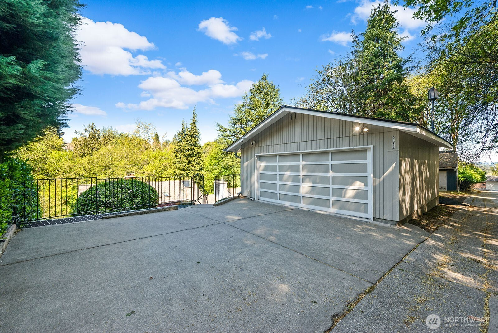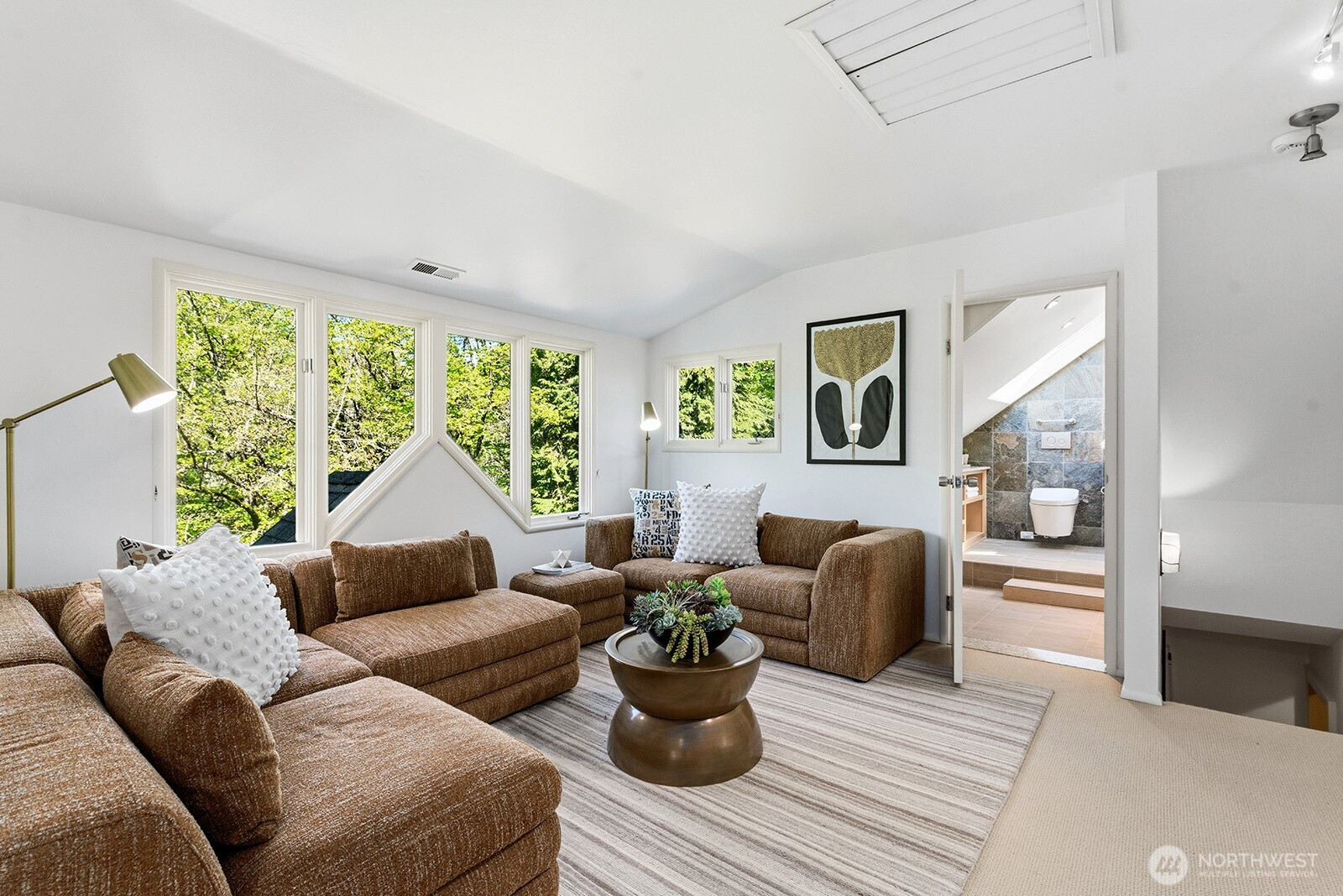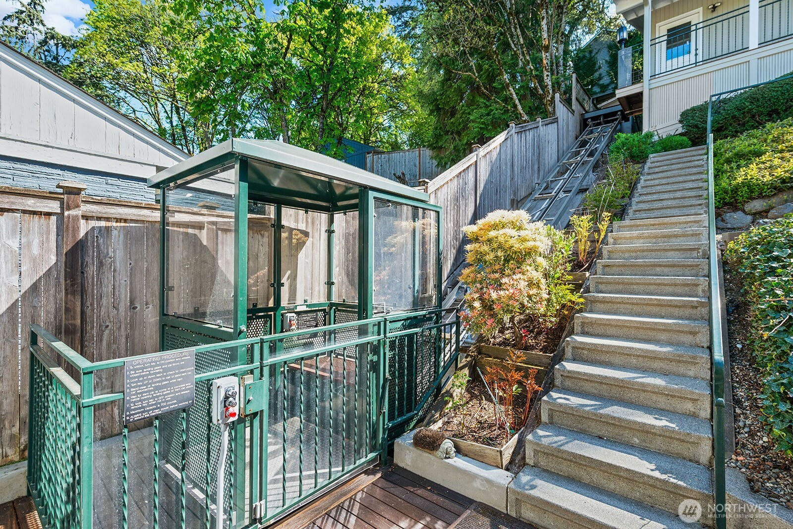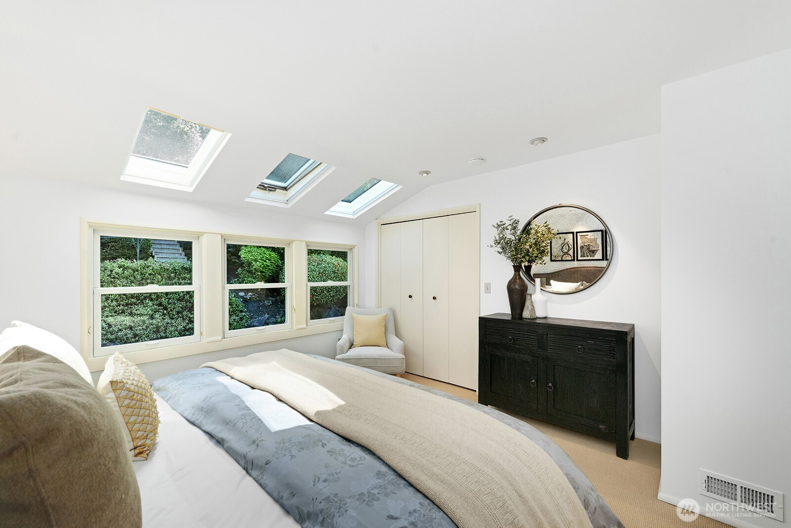 Beautifully updated 1924 home overlooking Mt. Baker Park in a peaceful setting less than a block from Lake Washington. Combining a wonderful blend of original details along with extensive updates. The main level features the renovated kitchen with stainless appliances, a 5-burner stove, quartz counters, and solid wood custom cabinets, the spacious living and dining rooms, two bedrooms, and a full bathroom. There are hardwood floors throughout the main living areas and there is a wood burning fireplace in the living room. The upper floor is solely a primary suite with a separate office area, a large bonus room, and a luxurious bathroom. The lower level has both interior and exterior access and is currently designed as an ADU, with a kitchen, a bedroom, a full bathroom, a living room, and abundant storage space. Great outdoor spaces include the front deck and patio and the beautifully landscaped rear yard. A two-car detached garage on the rear alley with an electric lift to/from the house - or simply walk down the winding path. Across the street from Mt. Baker Park, w/ tennis courts, pickleball, and a great play area. Walk to Lake Washington, cafes, Mt. Baker Community Center, and less than a mile to the Mt. Baker light rail station.