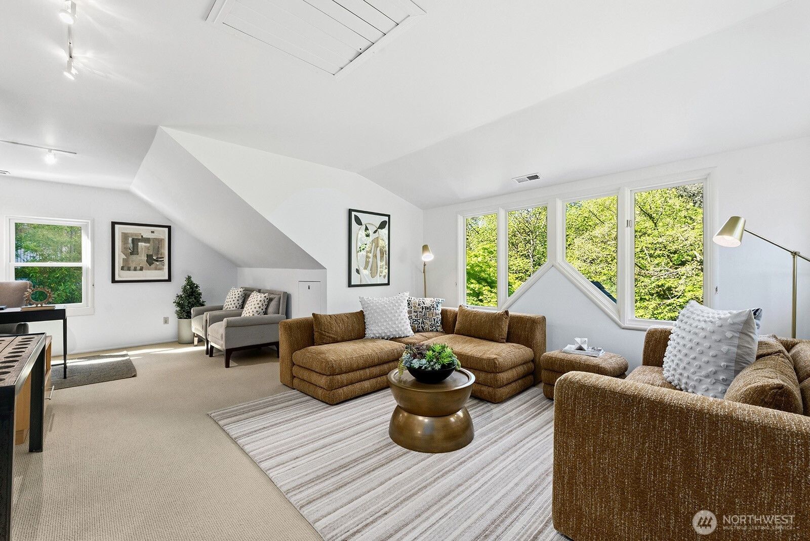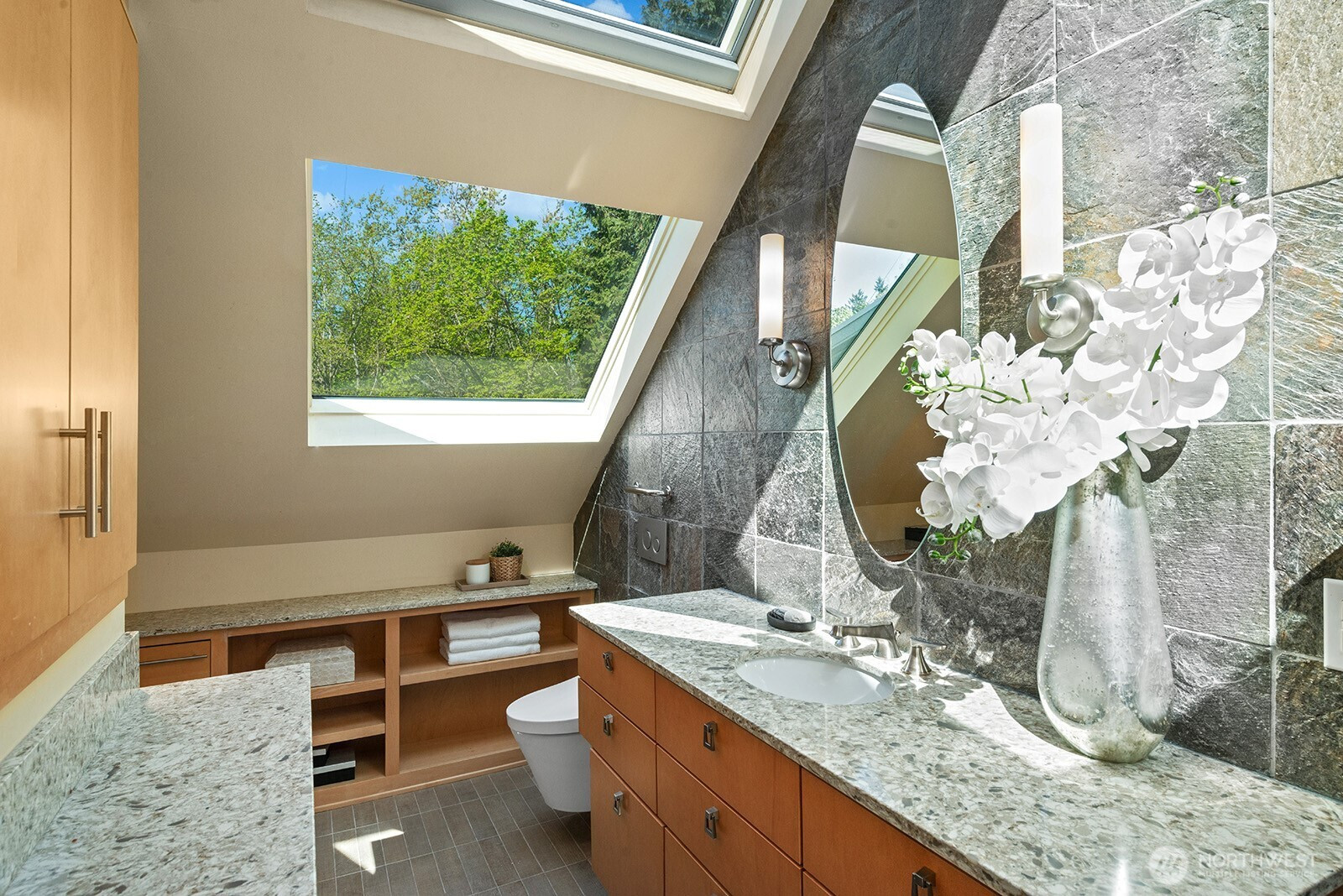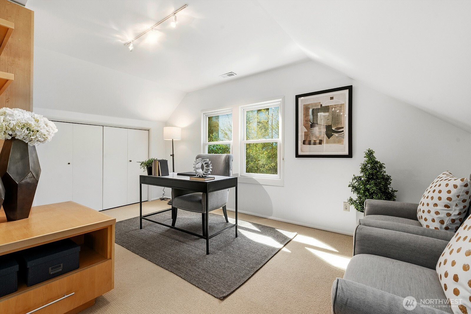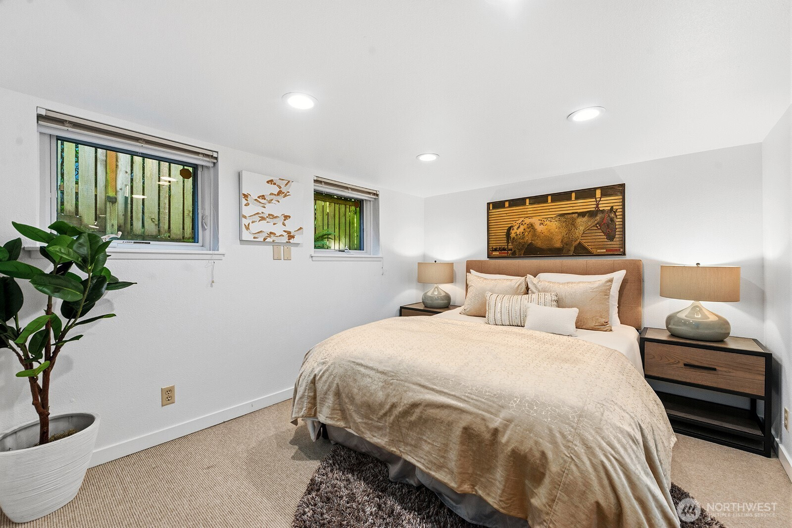 Beautifully updated 1924 home overlooking Mt. Baker Park in a peaceful setting less than a block from Lake Washington. Combining a wonderful blend of original details along with extensive updates. The main level features the renovated kitchen with stainless appliances, a 5-burner stove, quartz counters, and solid wood custom cabinets, the spacious living and dining rooms, two bedrooms, and a full bathroom. There are hardwood floors throughout the main living areas and there is a wood burning fireplace in the living room. The upper floor is solely a primary suite with a separate office area, a large bonus room, and a luxurious bathroom. The lower level has both interior and exterior access and is currently designed as an ADU, with a kitchen, a bedroom, a full bathroom, a living room, and abundant storage space. Great outdoor spaces include the front deck and patio and the beautifully landscaped rear yard. A two-car detached garage on the rear alley with an electric lift to/from the house - or simply walk down the winding path. Across the street from Mt. Baker Park, w/ tennis courts, pickleball, and a great play area. Walk to Lake Washington, cafes, Mt. Baker Community Center, and less than a mile to the Mt. Baker light rail station.