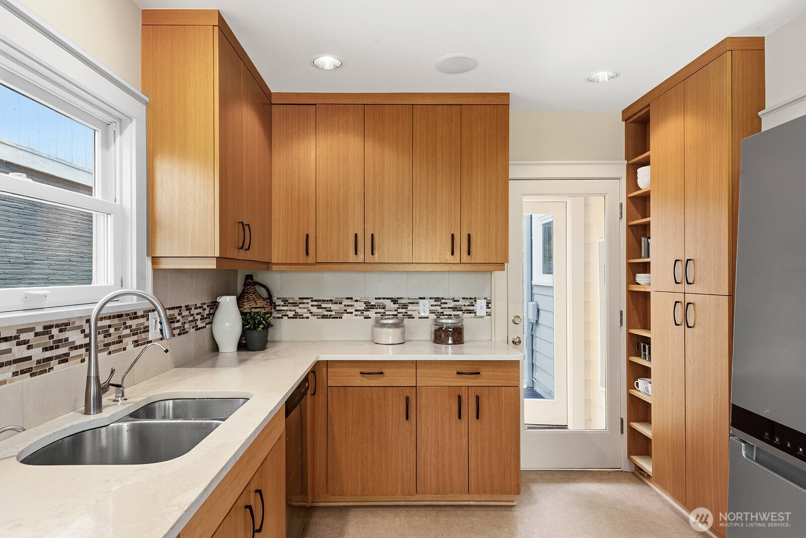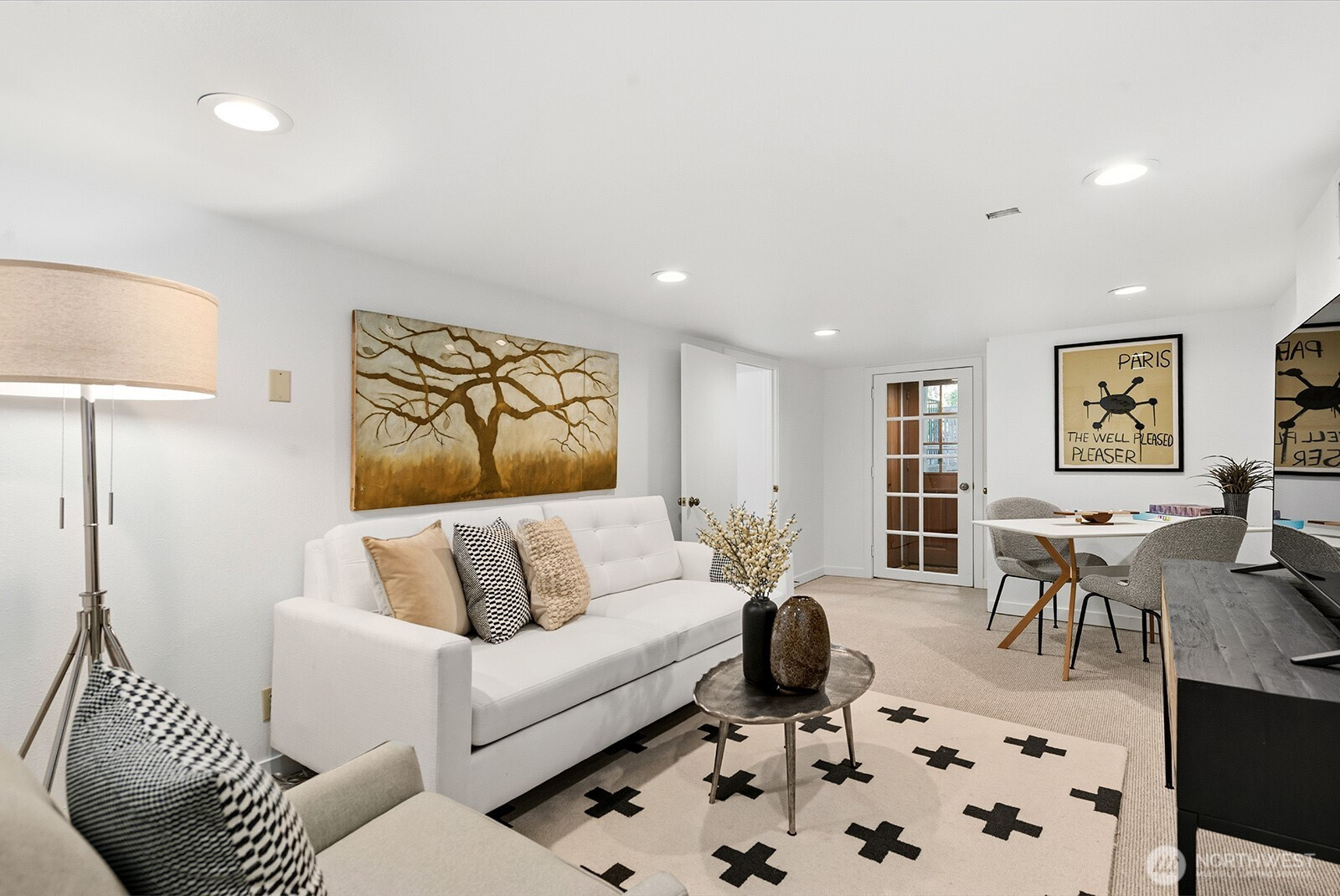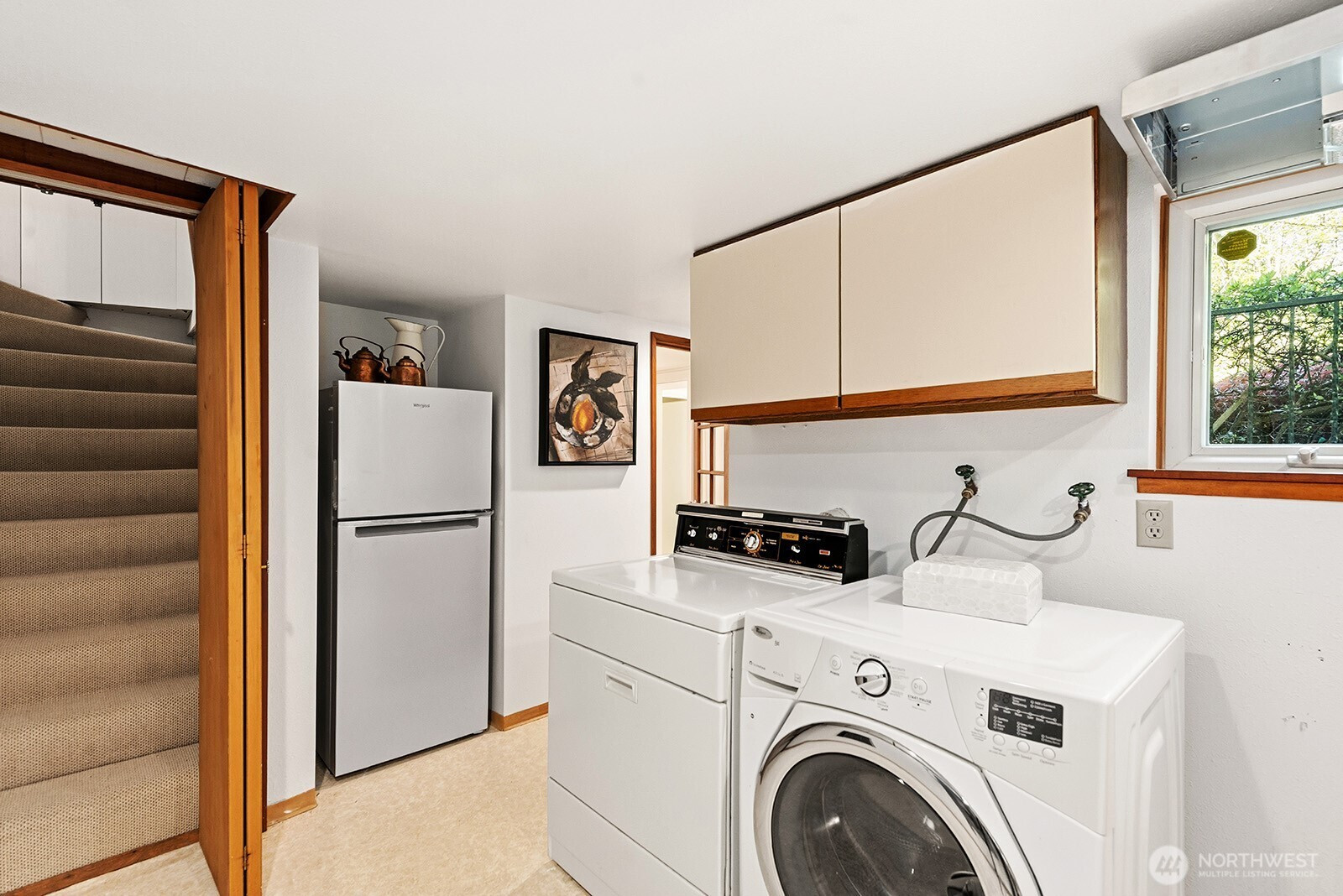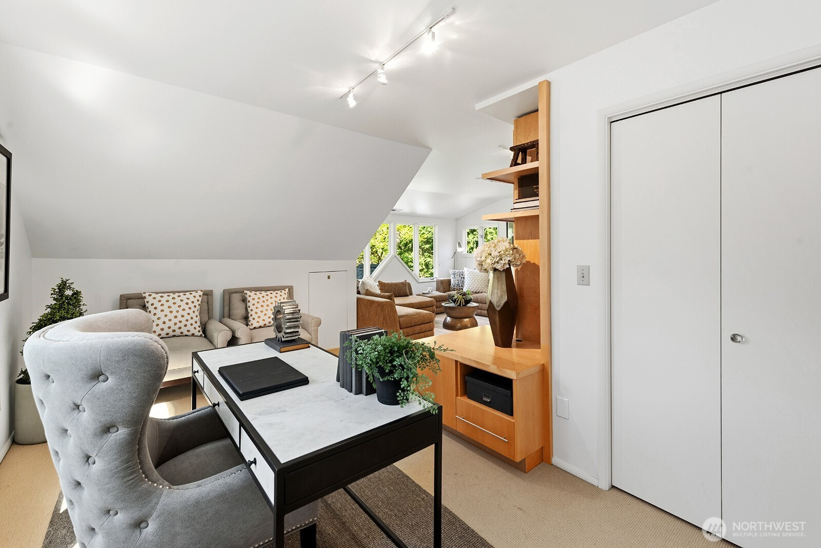 Beautifully updated 1924 home overlooking Mt. Baker Park in a peaceful setting less than a block from Lake Washington. Combining a wonderful blend of original details along with extensive updates. The main level features the renovated kitchen with stainless appliances, a 5-burner stove, quartz counters, and solid wood custom cabinets, the spacious living and dining rooms, two bedrooms, and a full bathroom. There are hardwood floors throughout the main living areas and there is a wood burning fireplace in the living room. The upper floor is solely a primary suite with a separate office area, a large bonus room, and a luxurious bathroom. The lower level has both interior and exterior access and is currently designed as an ADU, with a kitchen, a bedroom, a full bathroom, a living room, and abundant storage space. Great outdoor spaces include the front deck and patio and the beautifully landscaped rear yard. A two-car detached garage on the rear alley with an electric lift to/from the house - or simply walk down the winding path. Across the street from Mt. Baker Park, w/ tennis courts, pickleball, and a great play area. Walk to Lake Washington, cafes, Mt. Baker Community Center, and less than a mile to the Mt. Baker light rail station.