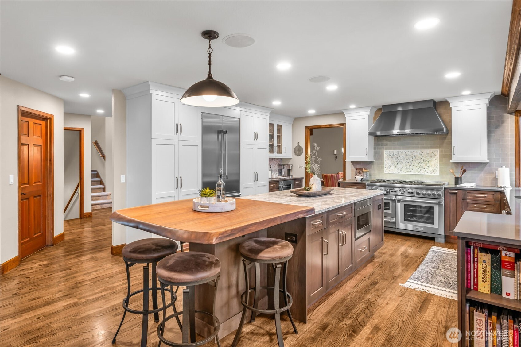 Experience the perfect harmony of sophisticated design and expansive living in this masterfully reimagined NW Craftsman. Designed for the modern lifestyle that needs room to spread out, this Sammamish estate offers a rare combination of luxury and high-capacity living, featuring four bedrooms and a floor plan perfectly suited for multi-generational needs. The heart of the home is a culinary masterpiece, with a stunningly remodeled kitchen features a 7-foot island and a 4-foot black walnut eating bar, anchored by a professional 48” Thermador suite with a steam oven and hybrid induction-gas range. It is the ultimate hub for busy school mornings and grand holiday hosting. When it’s time to retreat, the upstairs primary suite offers a true spa experience, showcasing vaulted cedar ceilings and a bathroom defined by heated floors, a soaking tub, and a four-head rainfall shower. This property is an entertainer’s dream, from the lower-level theater & wet bar to the breathtaking outdoor oasis. The backyard is your own private park, featuring over 2,500 square feet of multi-level decking and a secluded hot tub nestled in the trees. Located in the award-winning Issaquah School District with effortless freeway access, this home combines the seclusion of a retreat with the convenience of a central hub. Discover a home where every generation can find their space.