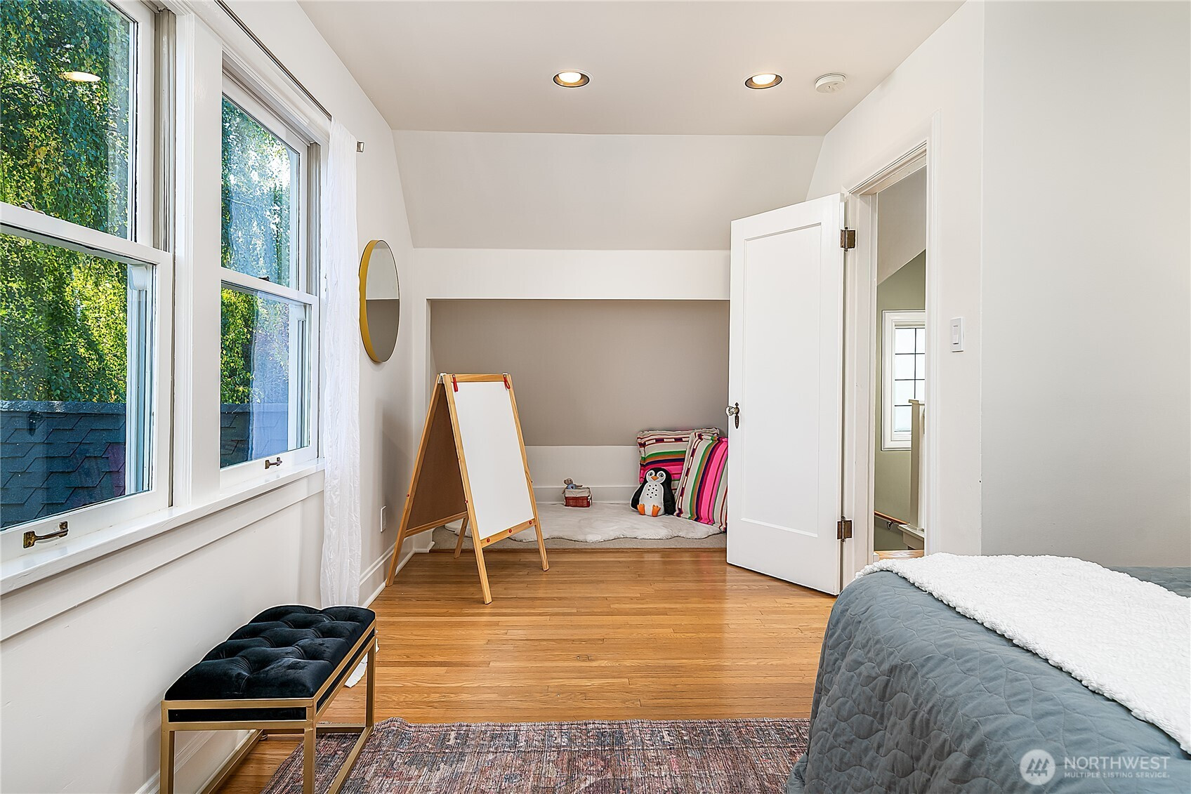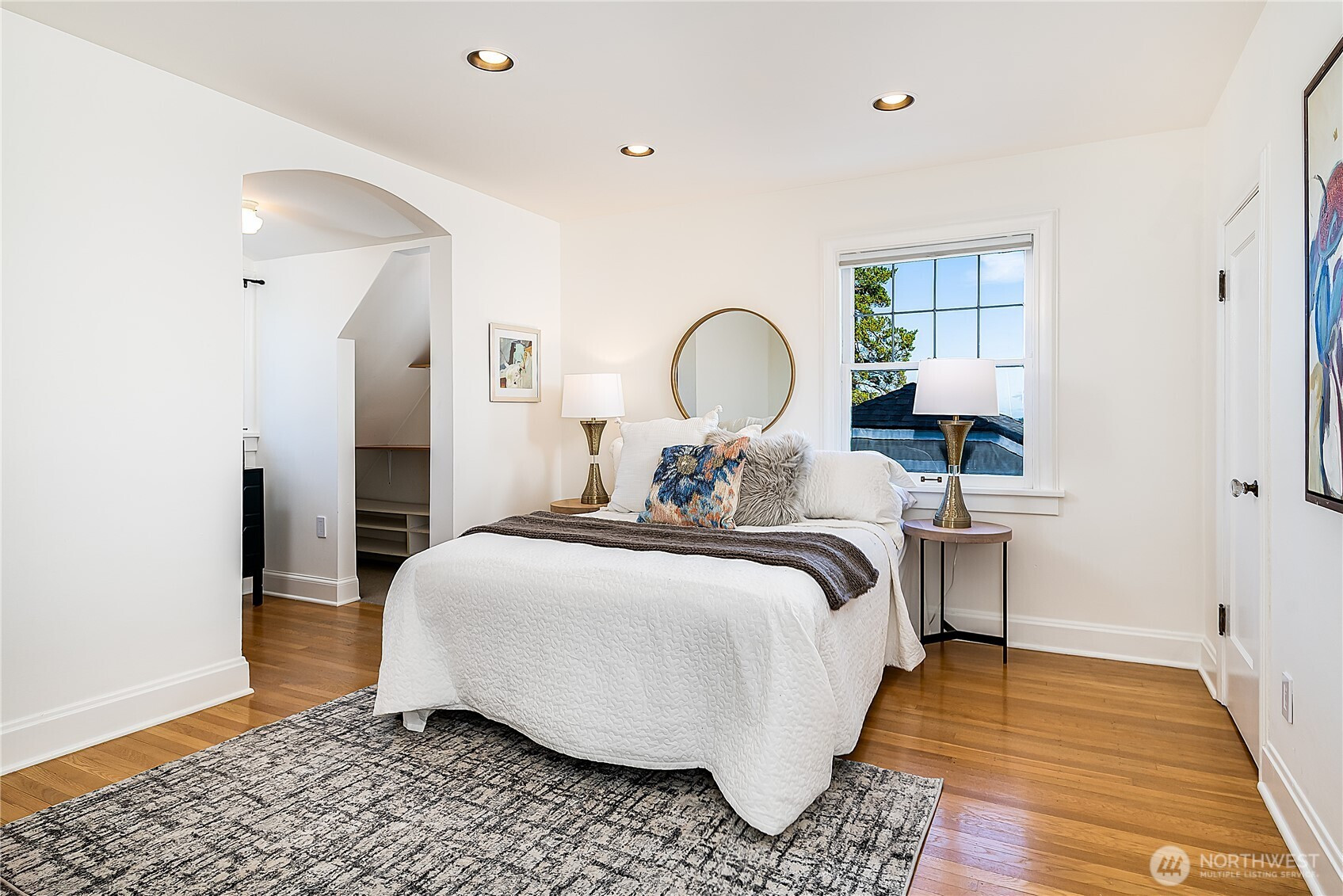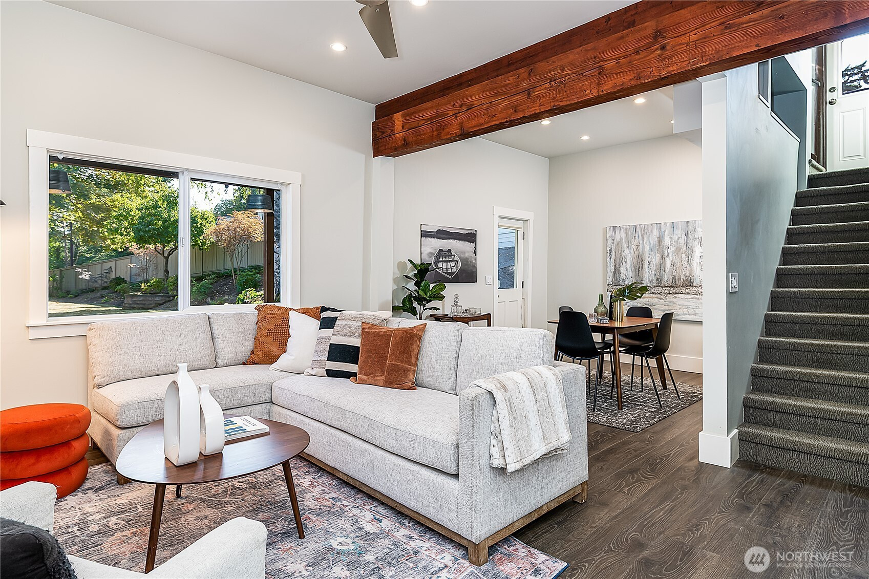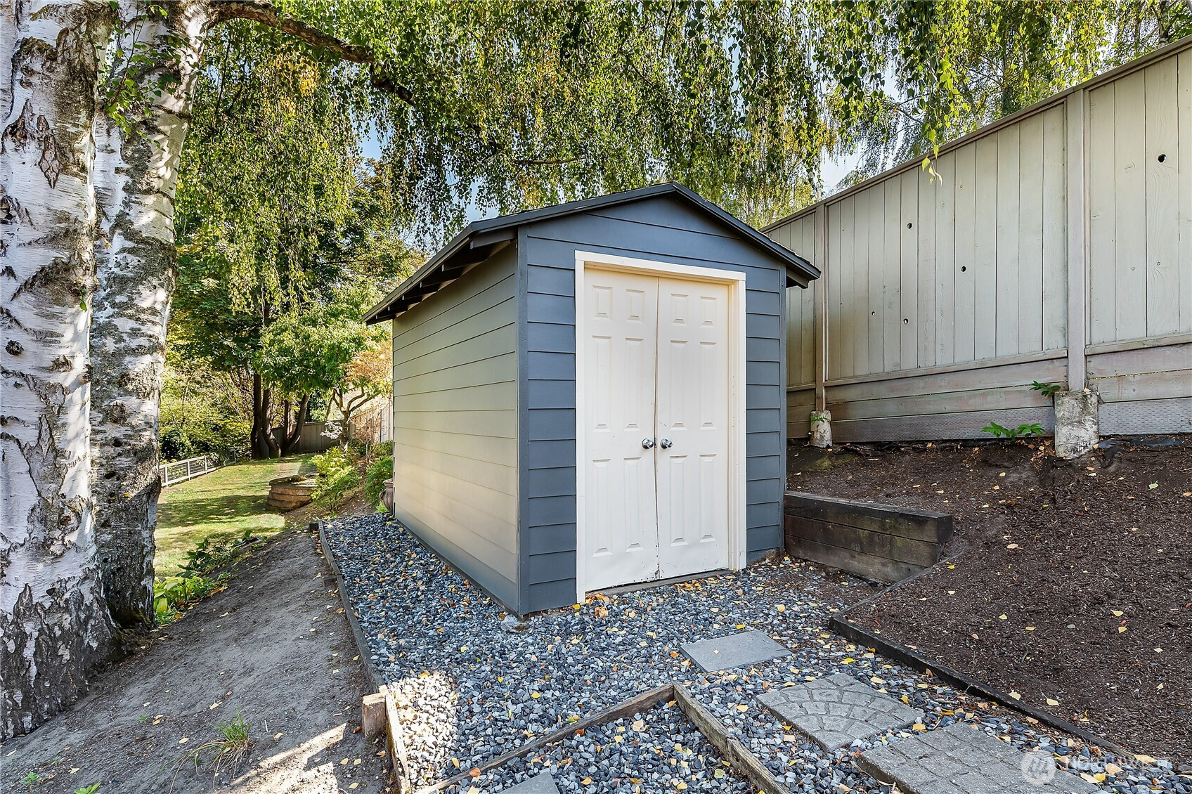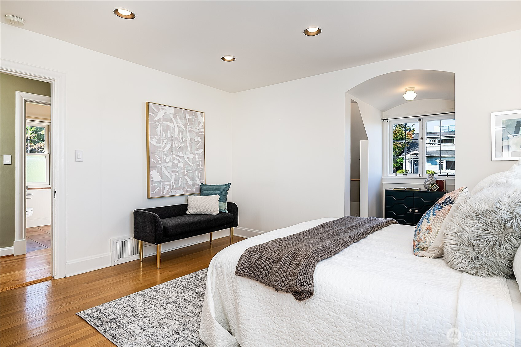 Beautifully restored QA home w/ timeless character showcases hardwood floors, coved ceilings, original leaded glass windows streaming western sunlight & cozy fireplace w/original tile. Entertainment-sized dining room w/French doors lead to a spacious deck, retractable awning & outdoor fireplace, overlooking an expansive, beautifully landscaped backyard sanctuary w/raised garden beds, plum tree & greenbelt. Gourmet kitchen w/high-end stainless appliances & sleek countertops. Main floor includes den/office & remodeled bath. 3 bedrooms/1 bath upstairs w/territorial views. Lower level w/high ceilings is media-ready, perfect for snuggling on an over-sized couch. 1 car off St parking. Close to local shops, parks, cafes, schools & transit.