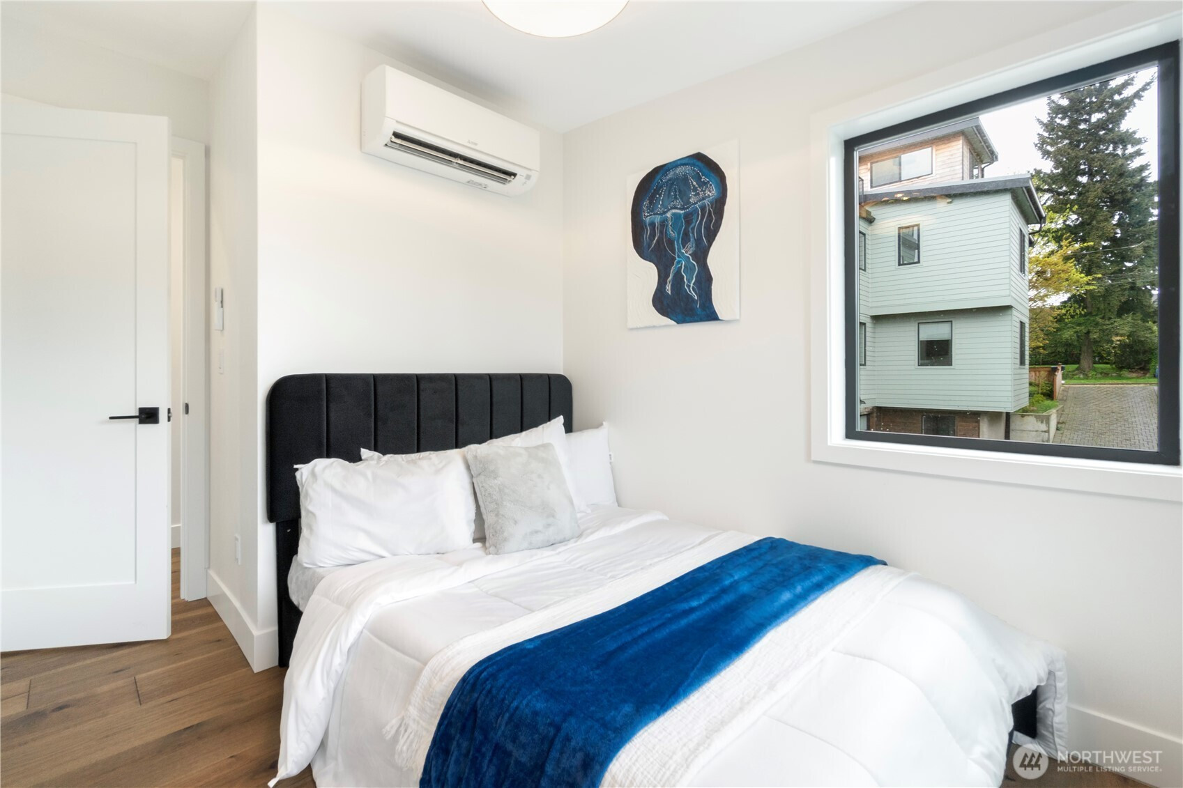 Meticulously designed, detached modern cottage-style home with views in Magnolia at an amazing value! This custom home stands all by itself, allowing for maximum privacy, with vistas of the Cascades and peek-a-boos of Seattle's city skyline. Two bedrooms + office space. Open main level features a large chef's kitchen with elevated bar seating, a versatile living room complete with a powder room, and large glass sliders leading out to your fully fenced, private backyard! Top floor boasts two bedrooms - the Primary is oversized & has plenty of room for a home office and armoire. Bonus features include A/C throughout, wide plank custom floors on both levels, and a large dedicated parking spot with an EV charger literally next to your front door! Steps from schools, Ella Bailey View Park, and the shops and cafes of the Magnolia Village.