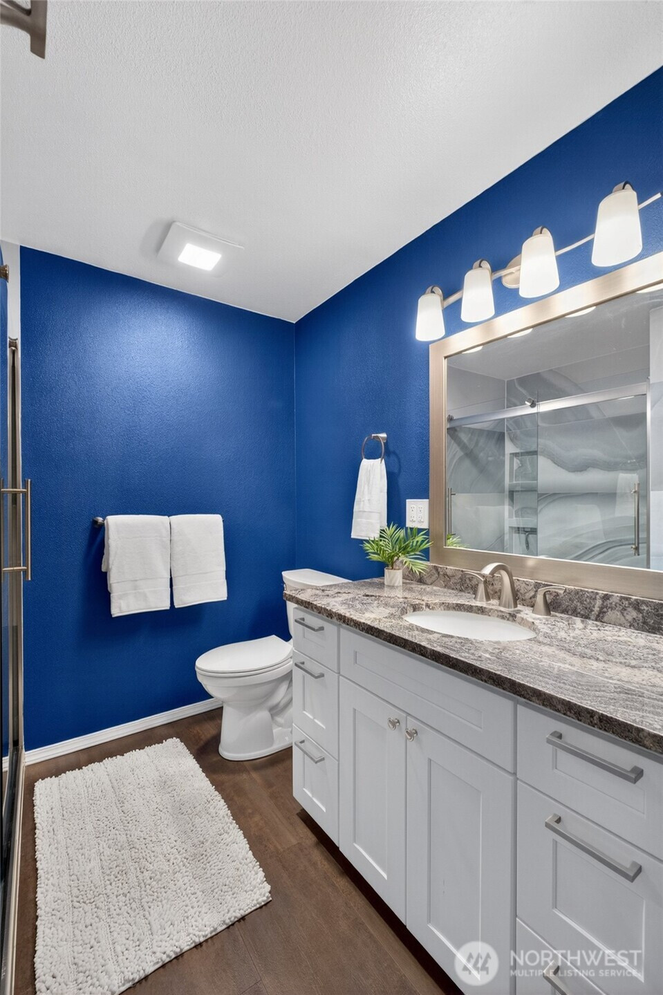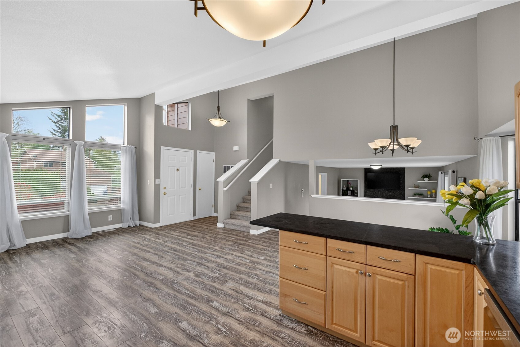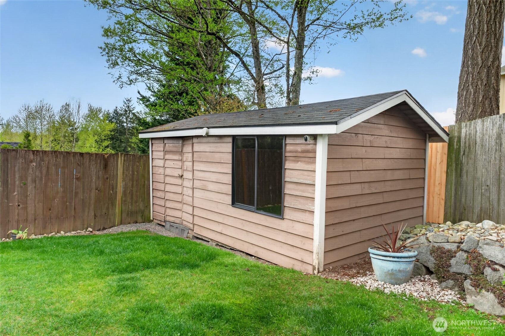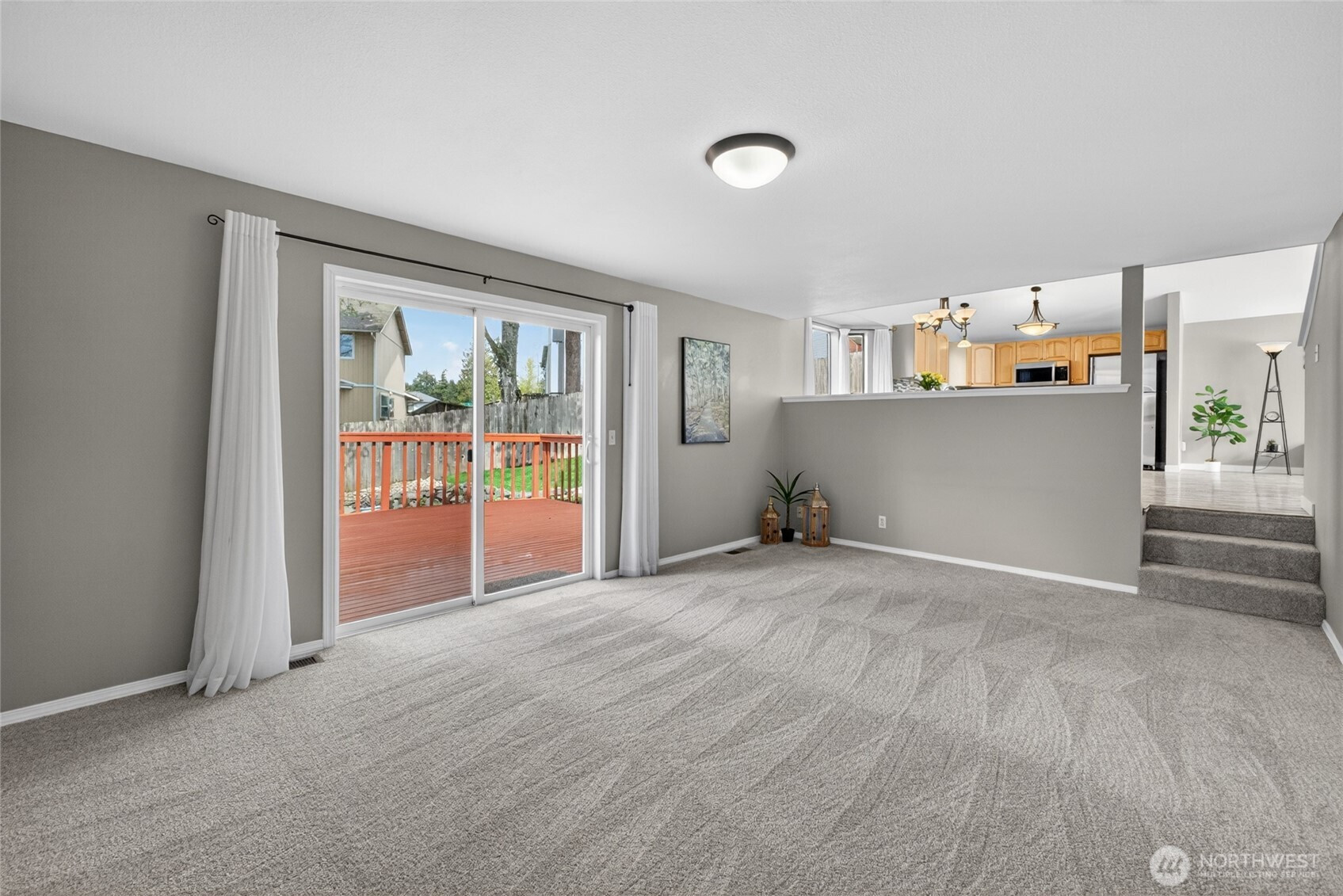 Welcome to this beautifully maintained 3 Bedroom, 2.5 Bath tri-level home offering 1,450 sq ft of thoughtfully designed living space. Featuring luxury flooring in the main living areas, hallway, and primary bath, along with brand new carpet throughout, this move-in ready home perfectly blends comfort, style, and modern updates. The bright, updated kitchen is a true standout, showcasing granite countertops, a gas stove, ample cabinetry, and sleek stainless-steel appliances- ideal for both everyday living and entertaining. The refreshed bathrooms feature elegant quartz countertops with tile flooring in the upstairs main bath and durable vinyl in the downstairs bath/ laundry room. Relax by the cozy gas fireplace or host gatherings in the inviting open-concept living and dining areas filled with abundant natural light. The home is also hardwired for a generator, offering added convenience and peace of mind year-round. A generously sized garage provides ample storage and workspace options. Step outside to a fully fenced backyard with a spacious deck- perfect for entertaining, outdoor dining, or simply unwinding- along with a sprinkler system to keep the yard lush and a garden shed for additional storage. Ideally situated on a quiet cul-de-sac in a desirable neighborhood between Seattle and Tacoma, this home offers easy access to major commuting routes, shopping, dining, parks, and everyday conveniences.