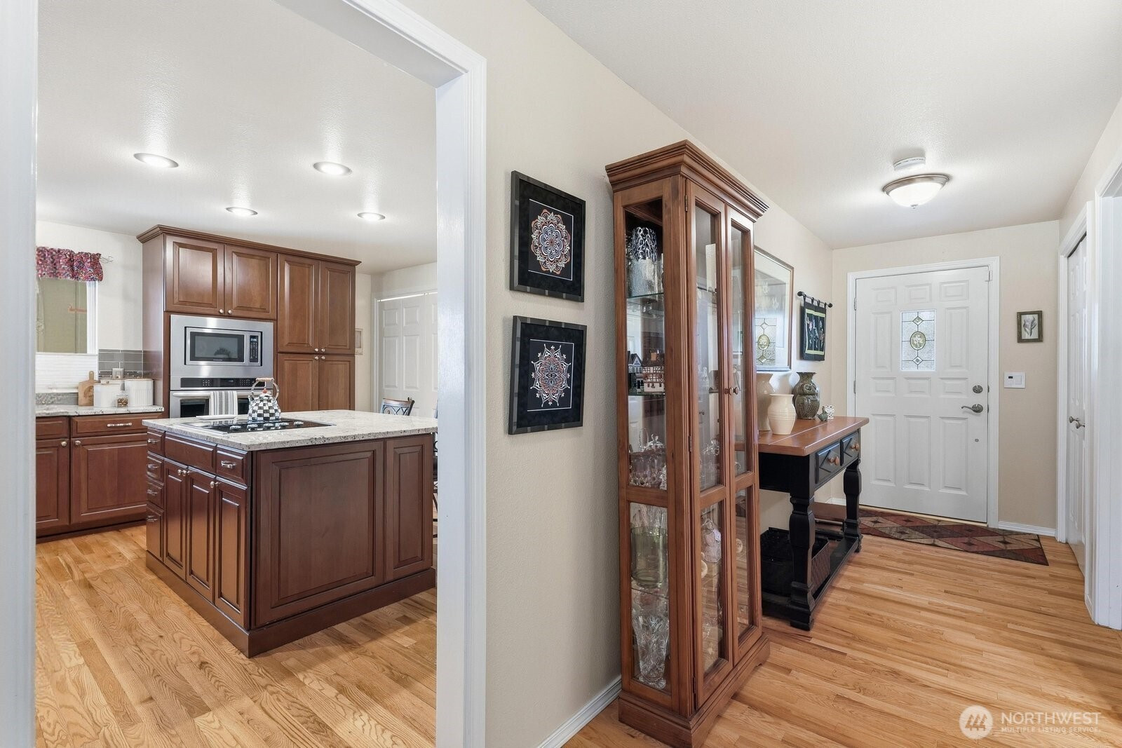 Experience single-level luxury on the 5th Fairway at the gated Meridian Valley Country Club. This updated condo features soaring vaulted wood ceilings, exposed beams, and a stunning stacked-stone gas fireplace. The expansive living room offers ample space for a grand piano and full dining set. The remodeled kitchen boasts custom cabinetry, stainless appliances, and granite counters, plus a versatile nook perfect for a home office. Both bathrooms are elegantly updated, including a massive primary suite with a walk-in closet. The oversized second bedroom also features a walk-in closet, perfect for guests or a hobby room. High-end finishes include hardwood floors, updated carpet, and automatic shades for privacy. Storage is abundant with deep closets throughout and a large two-car garage featuring attic access via a pull-down ladder. Relax on your private, recently painted deck with golf course views or the front porch overlooking manicured gardens. With a robust HOA and a 50-year composition roof featuring new ridge caps installed April 2026, this home is impeccably maintained. Enjoy the clubhouse, pro shop, and 24/7 guarded security in a community where no detail is missed. Move-in ready and perfectly curated for the discerning buyer!