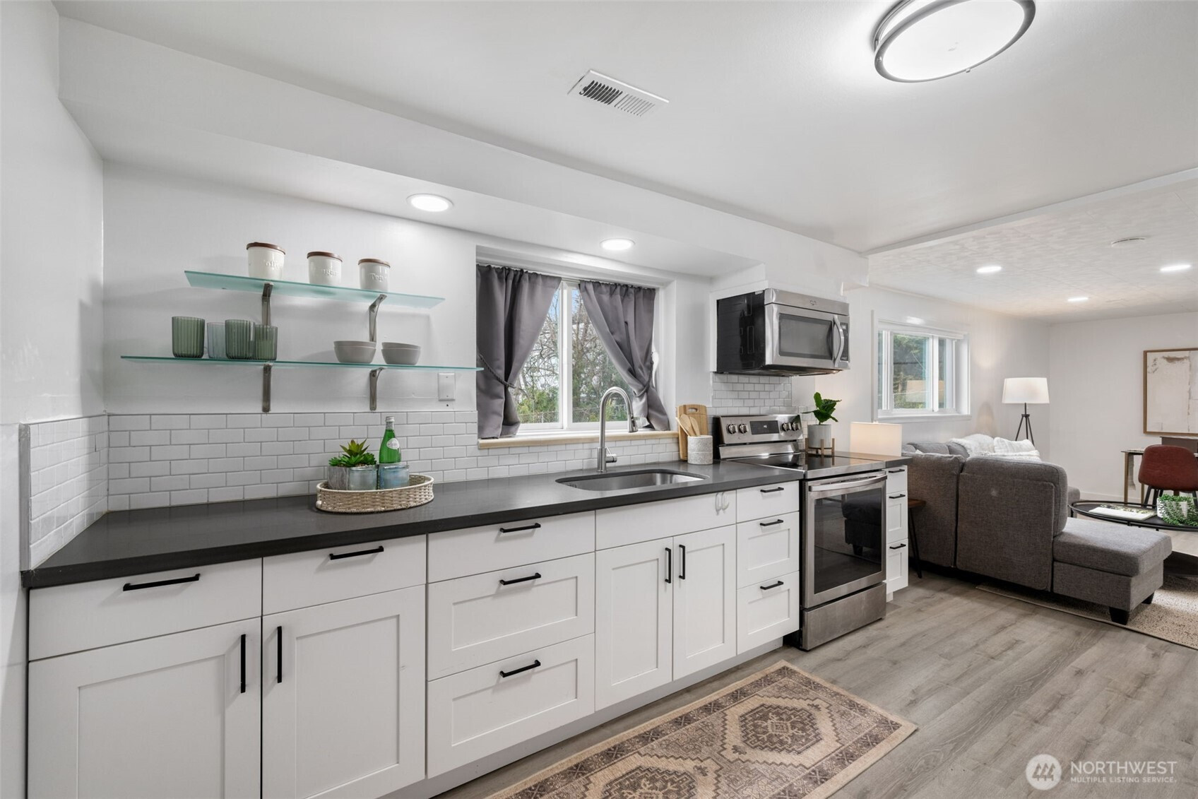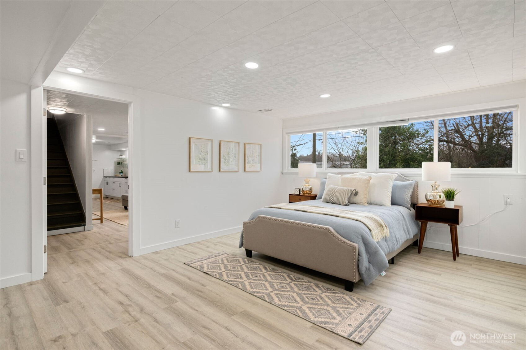 Fully updated spacious move-in ready Mid-Century Modern on a rare 8100 sqft lot in the Mount Baker neighborhood on a tree-lined street. Enjoy abundant natural light with walls of windows and an original oak hardwood floor in the living room and bedrooms on the main floor. Open kitchen features stainless steel appliances, quartz countertops, and a built-in wine cooler. Western views shine over a landscaped backyard; watch the grapevines, hydrangeas, roses, and gorgeous trees as they bloom through the seasons. The garden-level lower floor includes a separate entrance, inviting living in the lovely house or modifying it to two units. Stroll to Mioposto, Velvet Elk, Bright Spot, pickleball courts, and Mt. Baker Park. Walk to the light rail or park two cars in the enclosed carport with storage and drive minutes to downtown and the Eastside. For the savvy home owners and investors, with the new 2026 zoning law, the 8100 sqft property near a major transit hub is a must-see!