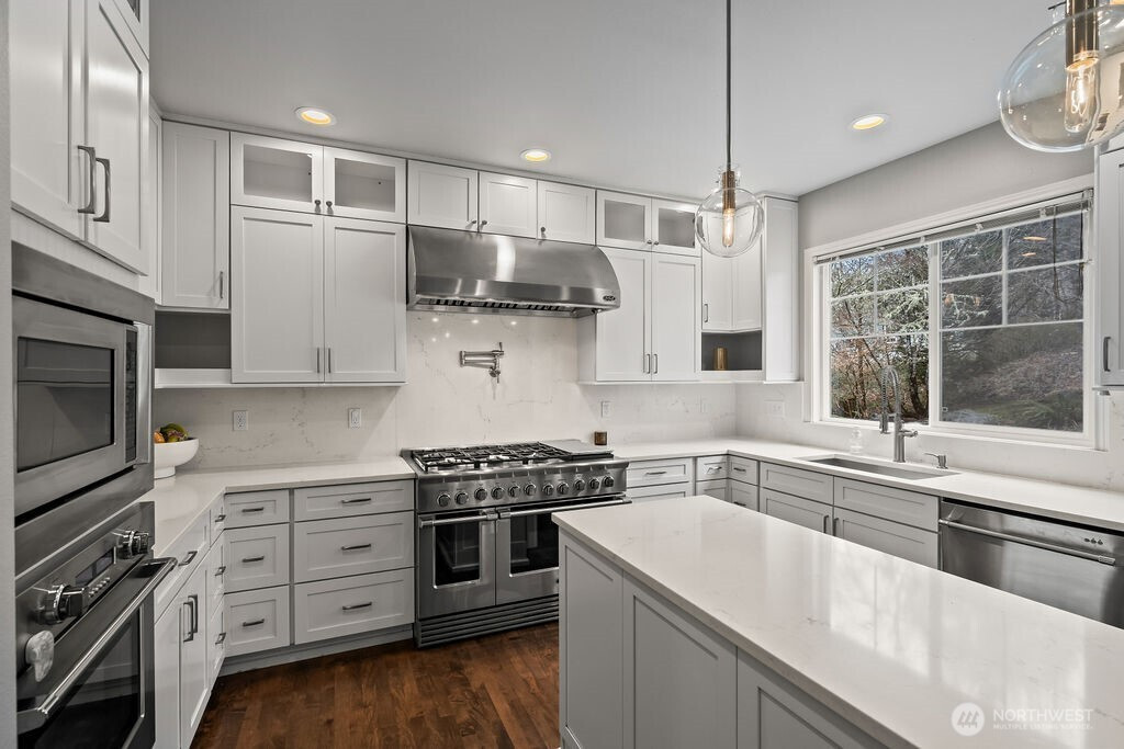 Located in the coveted Broadhurst Estates enclave of Redmond, this beautiful 5-bedroom residence offers an exceptional blend of space, comfort, and Eastside convenience. Soaring ceilings, rich hardwood floors, and abundant natural light create a bright, welcoming first impression. Formal living and dining rooms accented with Serena & Lily™ lighting add a refined touch, while the open-concept family room flows effortlessly into a generous chef’s kitchen designed for gathering—complete with top-of-the-line DCS appliances, extensive cabinetry, and seamless access to outdoor entertaining. Upstairs, spacious bedrooms and a versatile bonus room provide flexibility for guests, home offices, or recreation. A 3-car garage with a built-in generator system, a newly optimized 17-zone sprinkler system, and upgraded bidet features will add thoughtful functionality and modern ease to everyday living. Just minutes from Microsoft, DT Redmond, & convenient access to 520, this home offers both neighborhood prestige and commuter convenience. Enjoy close proximity to parks, playgrounds, shopping, and highly regarded Snoqualmie Valley schools— all within one of Redmond’s most desirable communities.