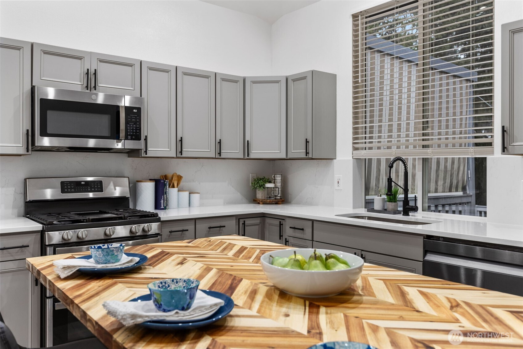 Set along the 11th hole of Lake Wilderness Golf Club, this refined Maple Valley residence offers 4 bedrooms, 3 bathrooms, formal living and dining, an open great room and a 3-car garage. Brand new Kitchen, bathrooms, hardware and flooring elevate the home with Stainless steel appliances, quartz countertops and gas range, while the primary suite impresses with a walk-in closet and heated bathroom floors. Enjoy a low-maintenance fully fenced backyard with turf, dedicated dog run, garden space, and hot tub hookups. Golf-cart access to Lake Wilderness Park, a new clubhouse with steakhouse coming soon, and award-winning Maple Valley Schools complete this exceptional move-in ready offering.