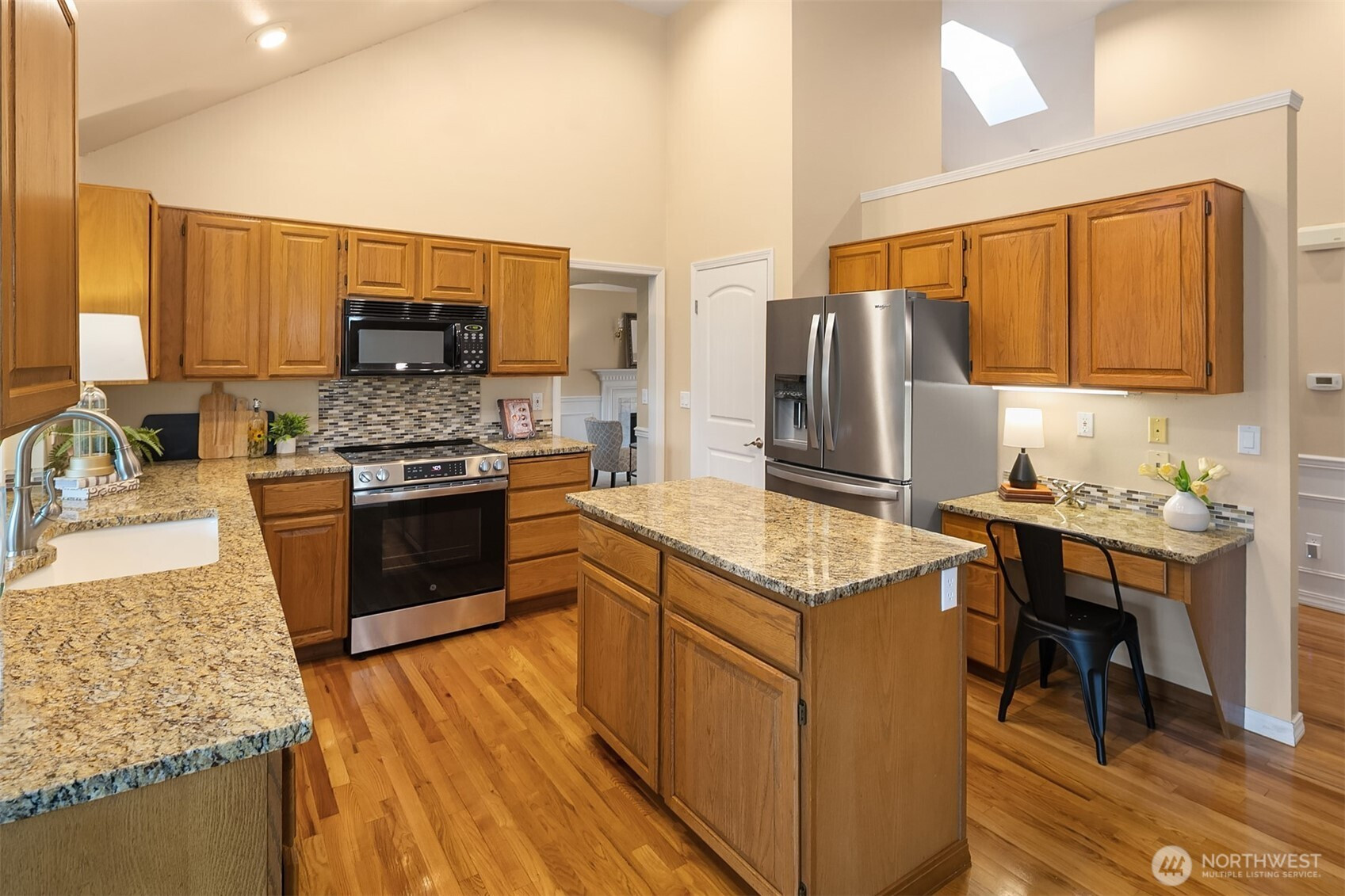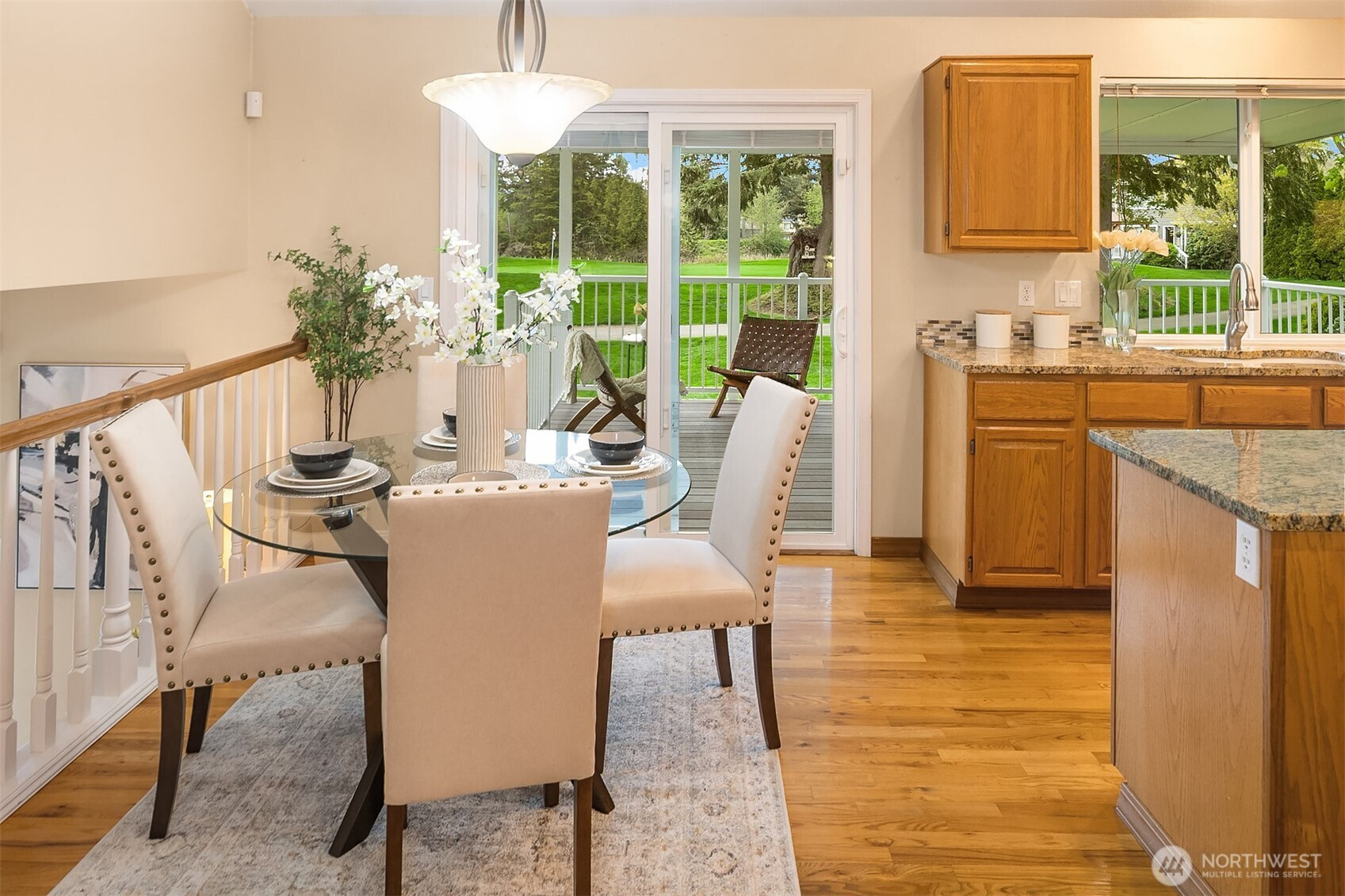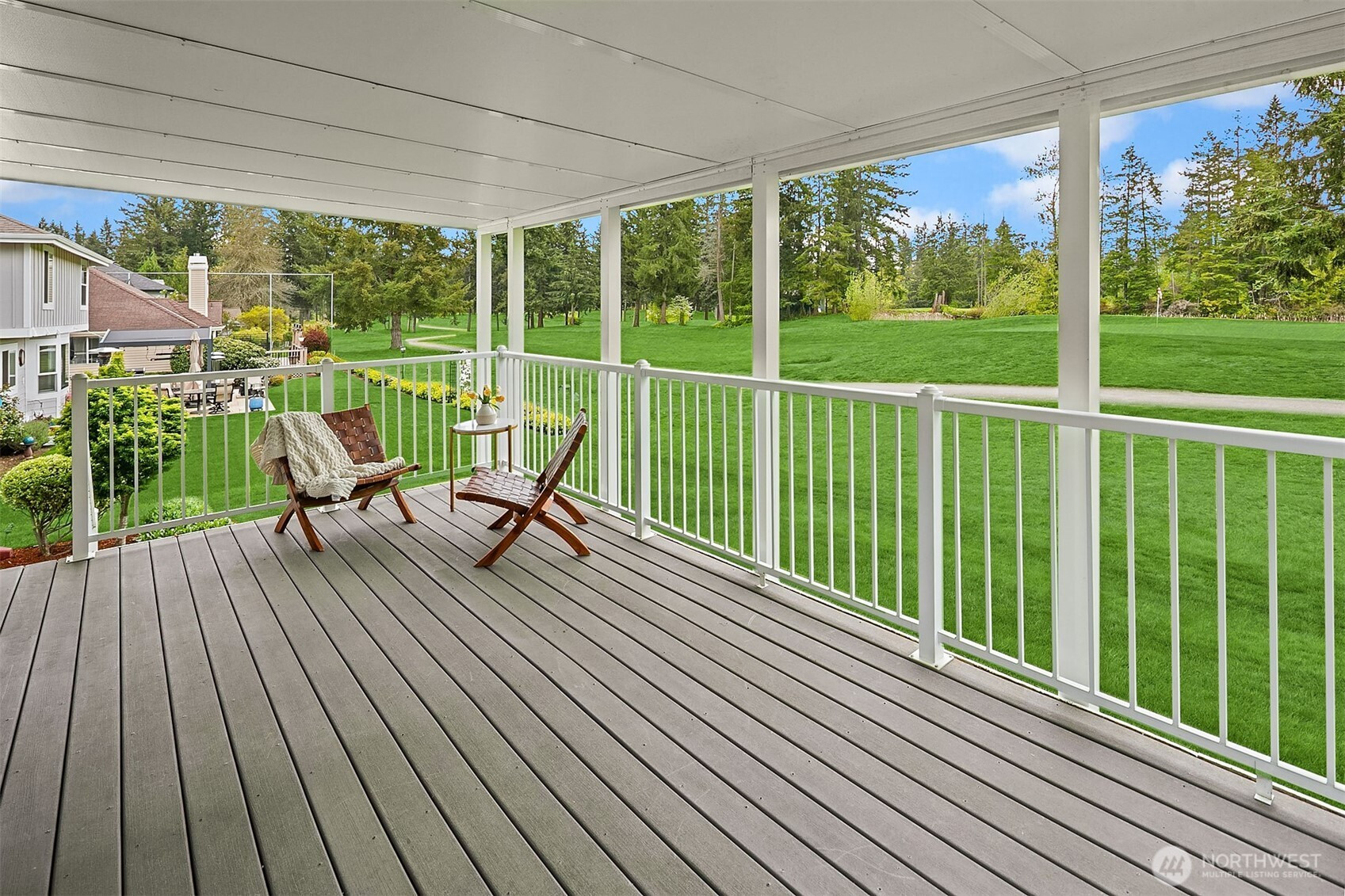 Perfectly positioned on the 13th green of Lake Wilderness Golf Course, this 2,390 sq ft Maple Valley home offers scenic views and a lifestyle that blends comfort with outdoor recreation. Featuring 3 Bedrooms plus a dedicated Office and 2.25 Bathrooms, the layout provides flexibility for modern living. The spacious Primary Suite is a true retreat, complete with a step-down soaking Tub and a generous walk-in Closet. Two additional Bedrooms share a three quarter Bath, while the Main level offers inviting living spaces ideal for everyday living and entertaining. Enjoy the covered Deck in all seasons - great spot for watching golf! Step outside and enjoy a quick walk to Lake Wilderness Park where summer concerts, pickleball, paddle boarding, and fishing create endless opportunities for fun in every season. The community also looks forward to a brand new Golf Course Clubhouse and Restaurant just down the road, scheduled for completion this fall. Located within the highly regarded Tahoma School District and featuring a durable lifetime roof and AC, this home is a rare opportunity to enjoy comfort, convenience, and a Golf Course setting all in one. Great neighborhood, great neighbors! Welcome home!
