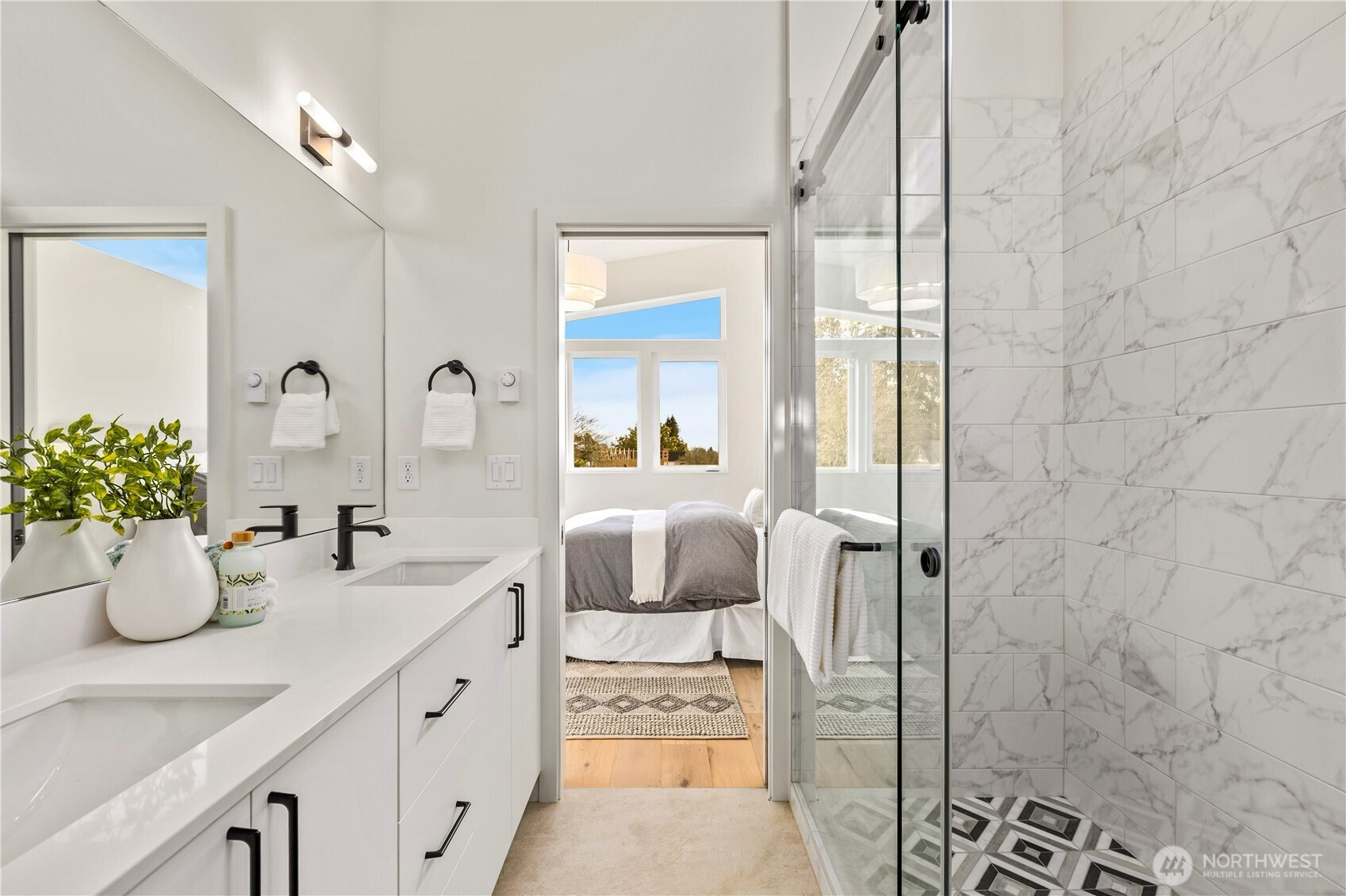 Set on one of Magnolia’s most desirable streets, this Madrow Homes residence makes an immediate impression. Soaring 9-foot ceilings, wide-plank oak flooring, and a fluid, thoughtfully designed layout create a sense of ease and intention throughout. At its heart, the kitchen anchors the home as both focal point and gathering space, appointed with custom cabinetry and professional-grade appliances, including a six-burner gas range. Living and dining areas extend seamlessly from this central hub, while a nearby bonus room offers versatility for a home office, reading lounge, or private retreat. A main-level powder room adds everyday convenience with a refined touch. Upstairs, two spacious bedrooms offer comfort and privacy. The primary suite blends calm with sophistication, featuring a spa-inspired ensuite bath with heated floors and curated finishes that elevate daily routines. A second full bath serves the additional bedroom with equal attention to detail. A dedicated parking pad with EV hookup completes the home’s practical luxuries. Ideally located just moments from Magnolia Village, Magnolia schools, Discovery Park, SLU, Ballard, and QA. This residence offers a rare balance of tranquility and connection.