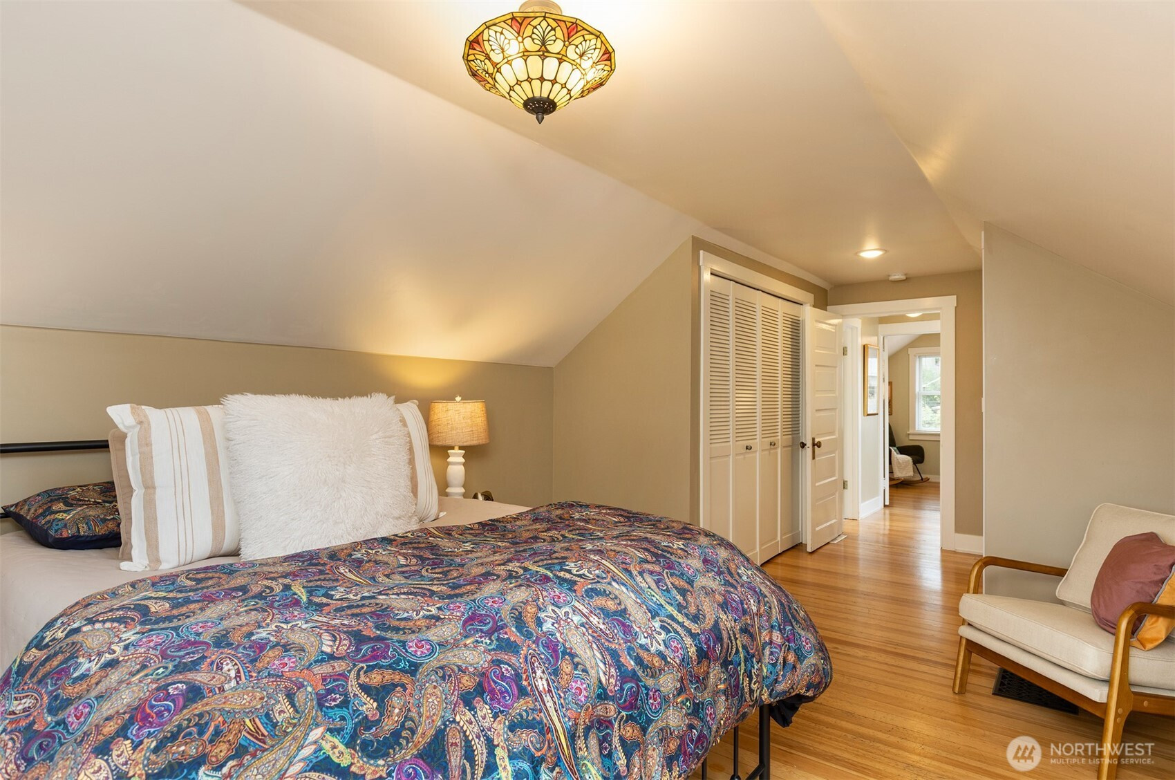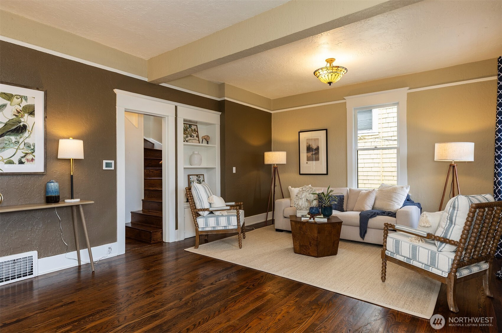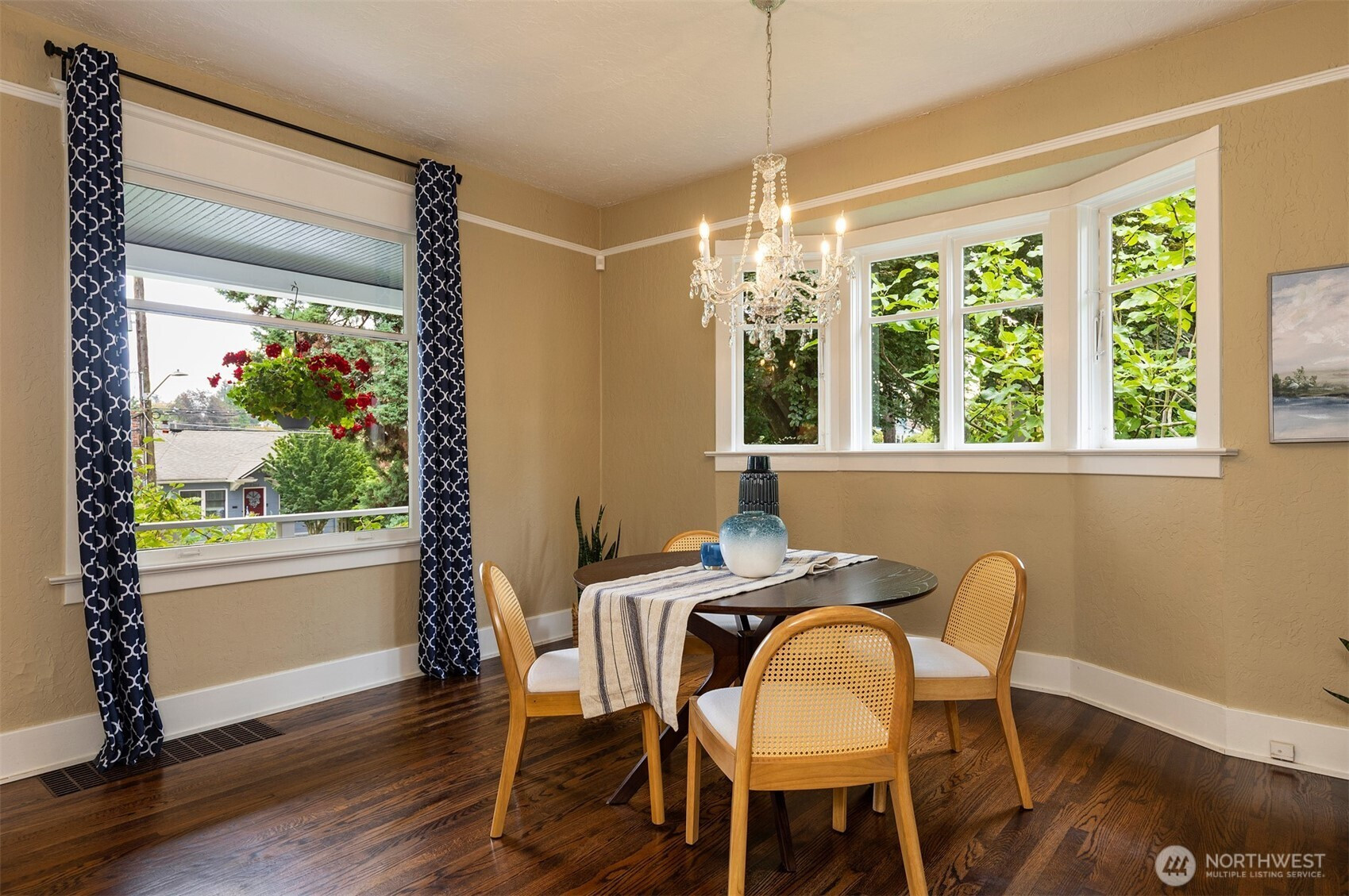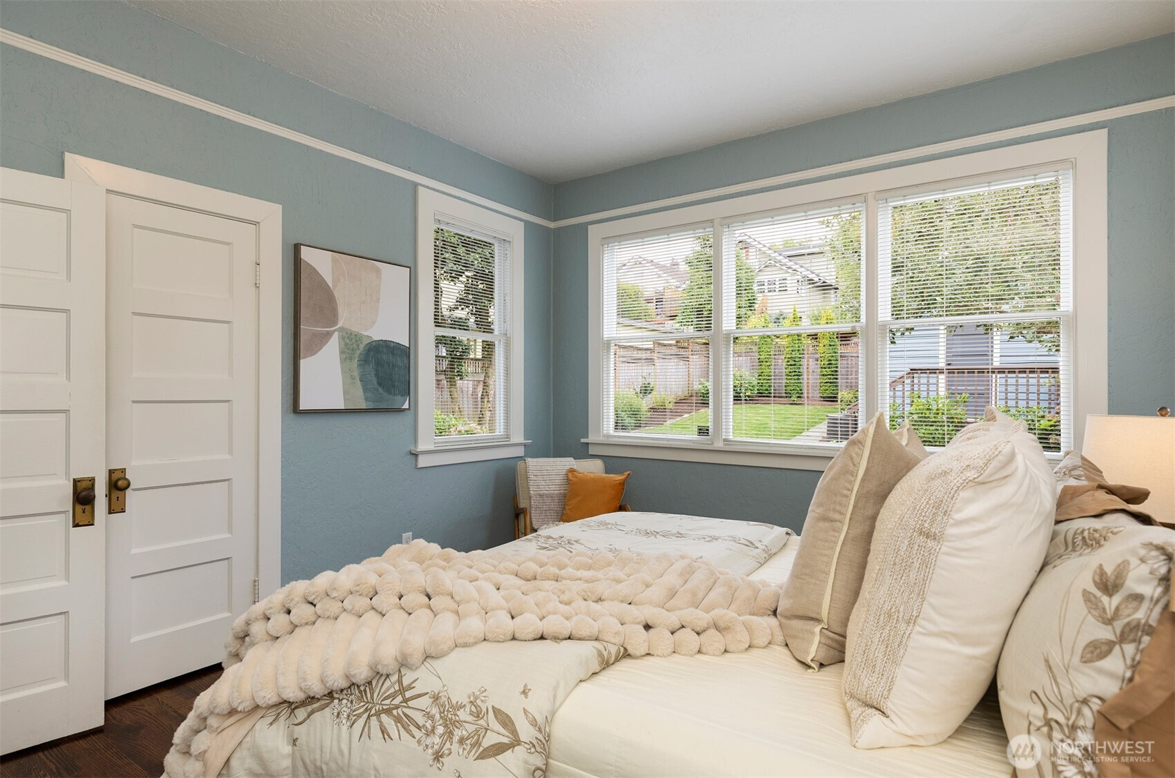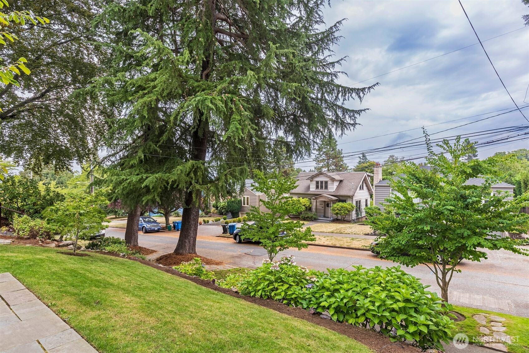 This beautifully maintained and thoughtfully updated Queen Anne Craftsman, perfectly perched above the street for added privacy presence. Step inside to a light-filled open living and dining area, featuring high ceilings and timeless character. The main floor offers a spacious bedroom, a full en-suite bathroom, ideal for guests or a home office. Upstairs, you’ll find 2 additional bedrooms & a stunningly modern full bathroom. The Chef’s kitchen is a true highlight, featuring granite countertops, abundant cabinetry, & a charming antique butcher block island—perfect for preparing meals & entertaining. Enjoy the level, fully fenced backyard complete w/ mature fruit trees, detached garage wi/alley access, and room to garden, relax, or play.