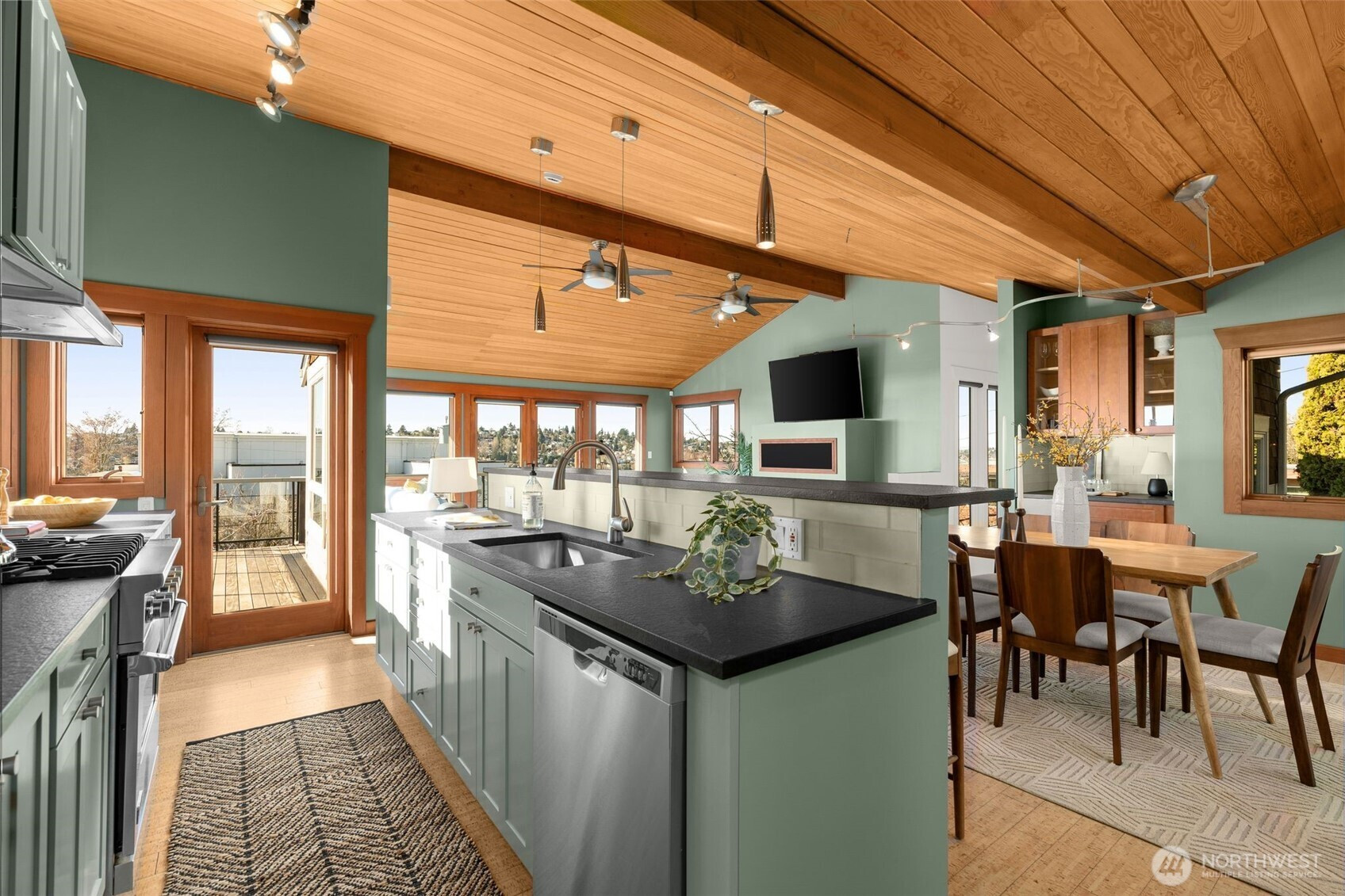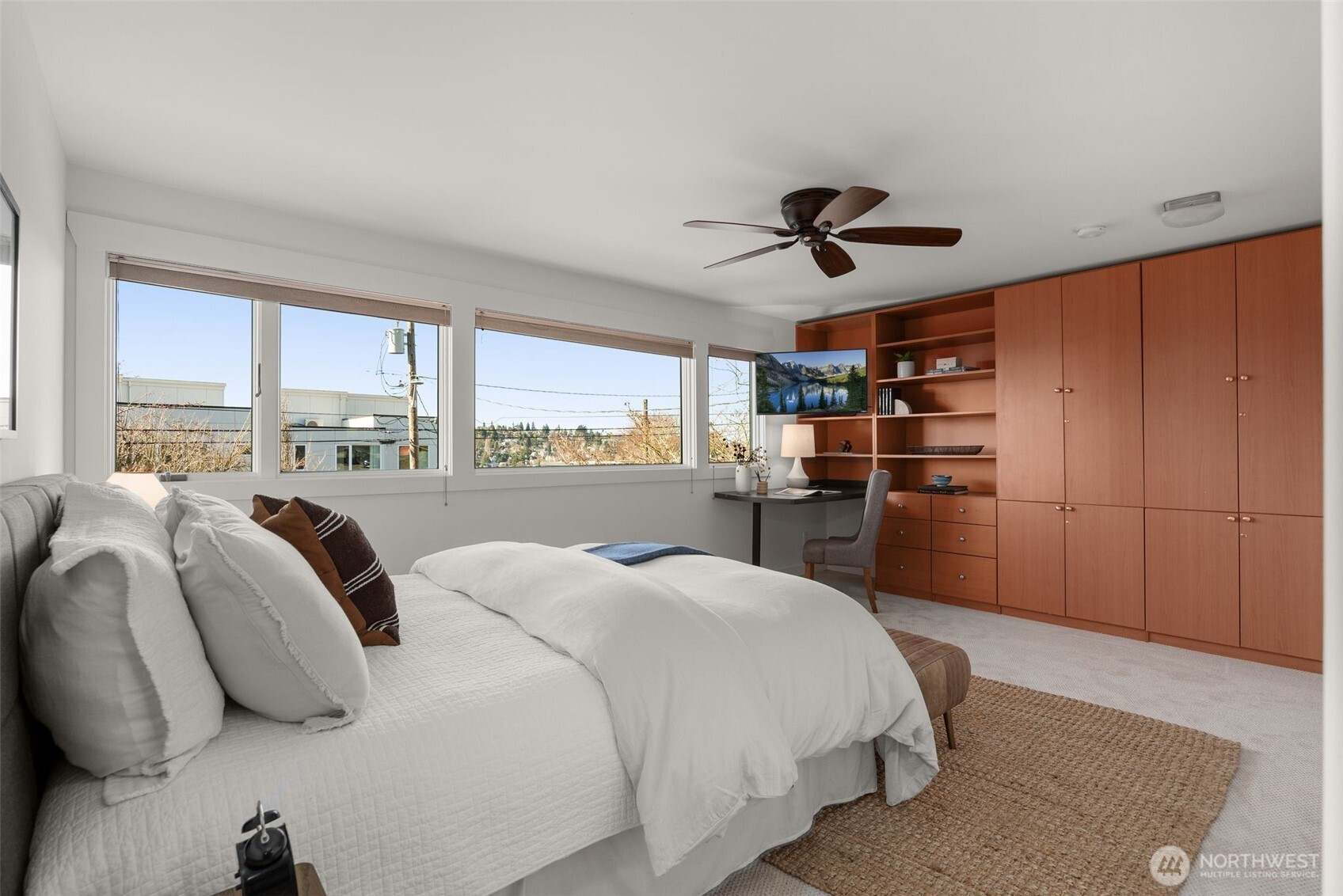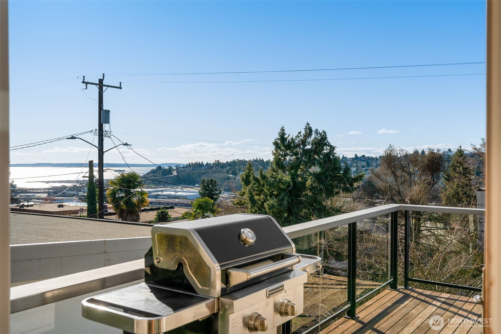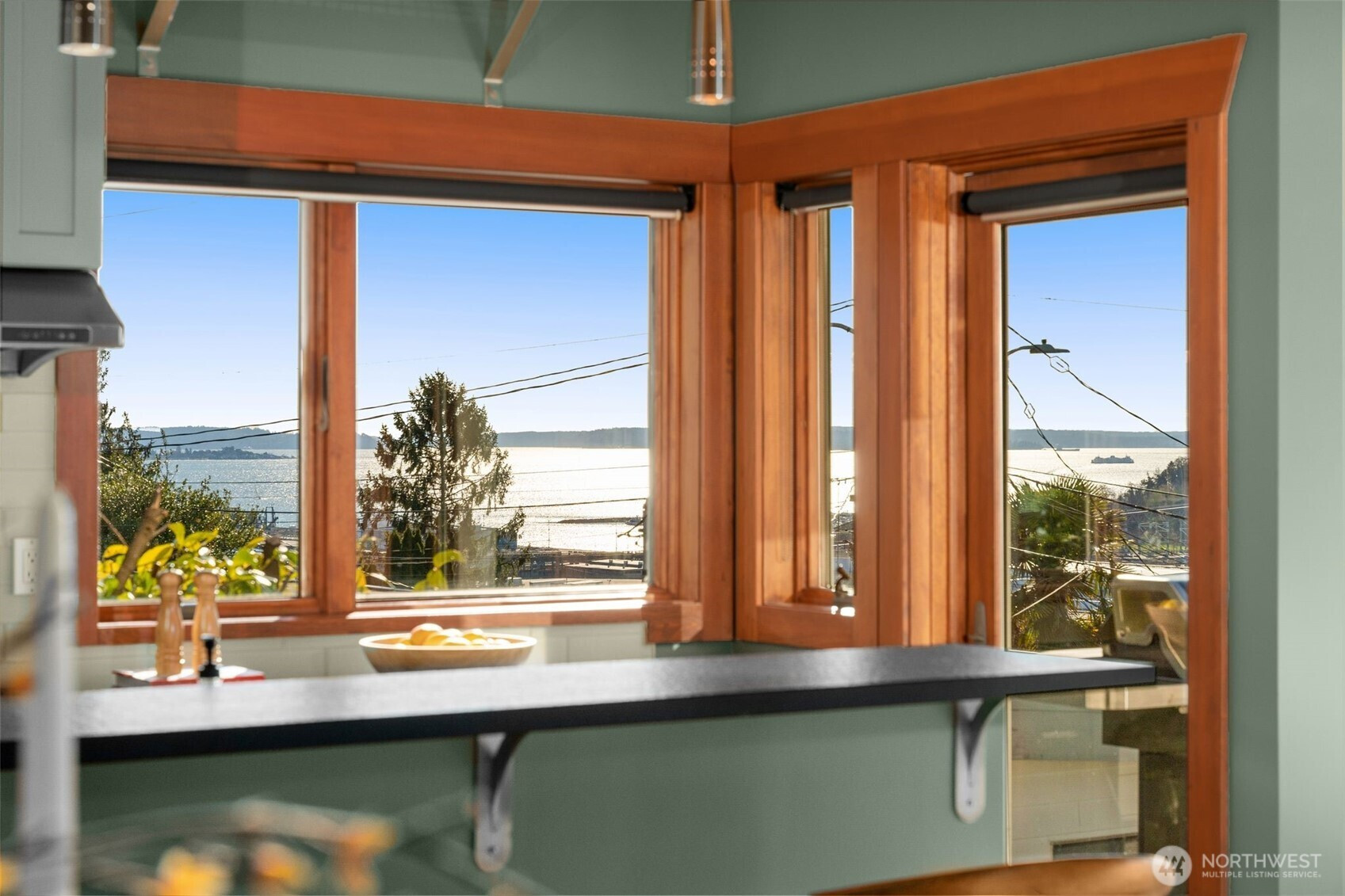 Sweeping views of the Puget Sound and Olympic Mountains take center stage, while this move-in ready home sits up high on a quiet corner lot, offering both privacy and a beautifully connected, light-filled layout. Located in the heart of Queen Anne, just moments from neighborhood shops, restaurants, parks, and groceries, it offers everyday convenience wrapped in community charm. The open floor plan seamlessly unites the living, dining, and kitchen spaces, creating an inviting setting for gathering. The chef’s kitchen features stainless appliances, a gas range, bar seating, and refined finishes. Cedar vaulted ceilings, expansive windows, and a cozy gas fireplace add character and comfort, while modern mini-splits provide efficient year-round AC. Step onto the west-facing deck for sunset views, or head to the back deck—perfect for BBQs, outdoor movie nights, and easy evenings with friends. With effortless indoor-outdoor flow and generous entertaining spaces, this home truly shines when hosting, from lively dinner parties to relaxed weekend get-togethers. The expansive primary suite offers a peaceful retreat with a walk-in closet and built-in desk. Heated floors and a jetted shower elevate the bath. A fully fenced yard, oversized garage, and abundant storage complete the package. More than just a house, this is a home that has been deeply cared for and thoughtfully lived in. Opportunities like this don’t come often—see it before it’s gone.