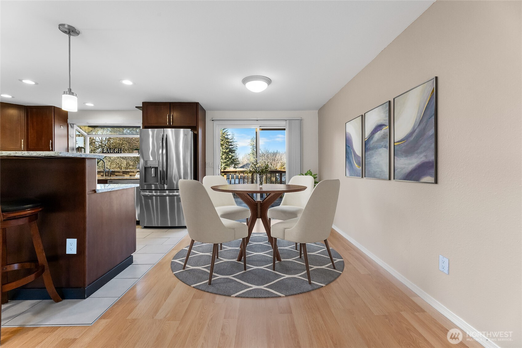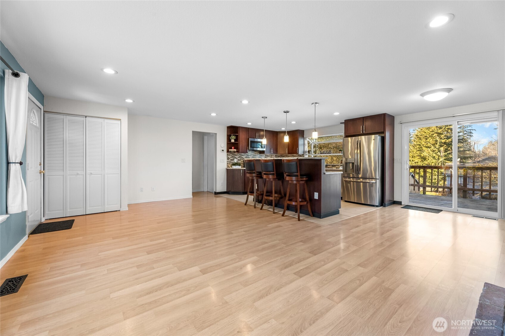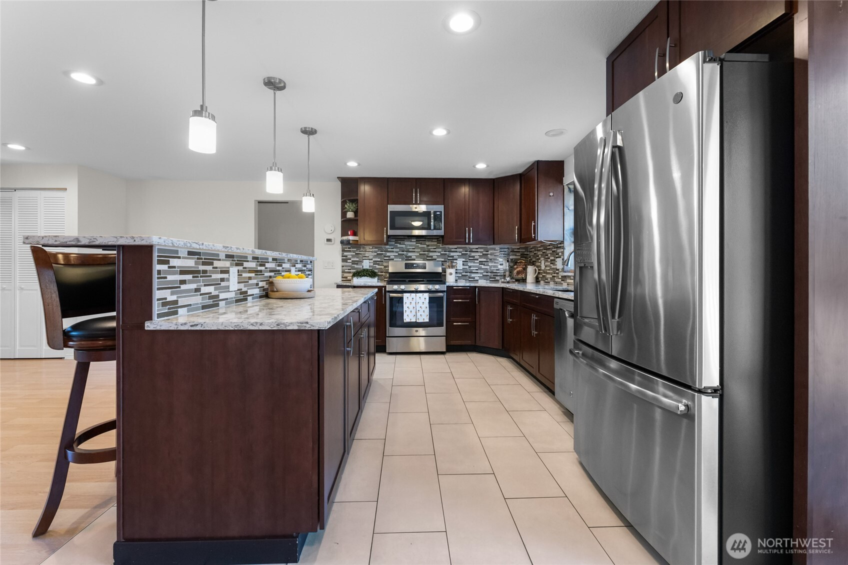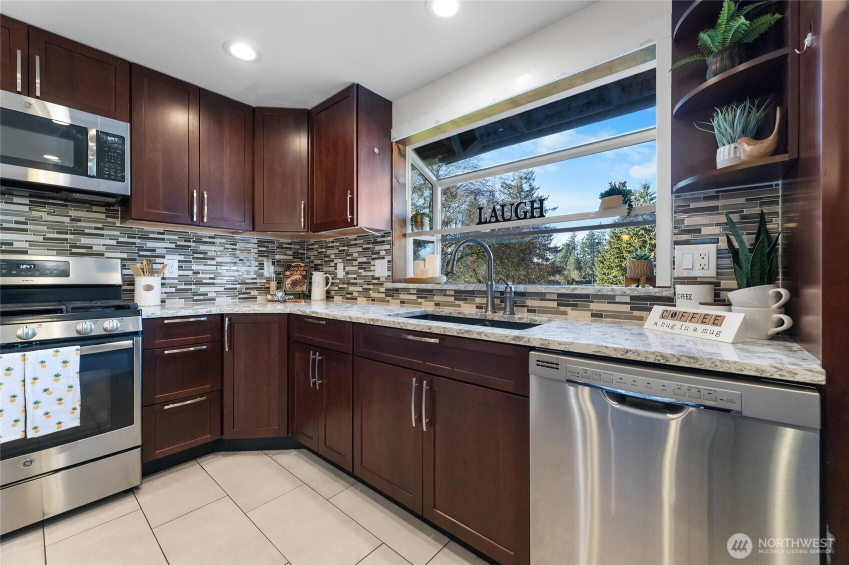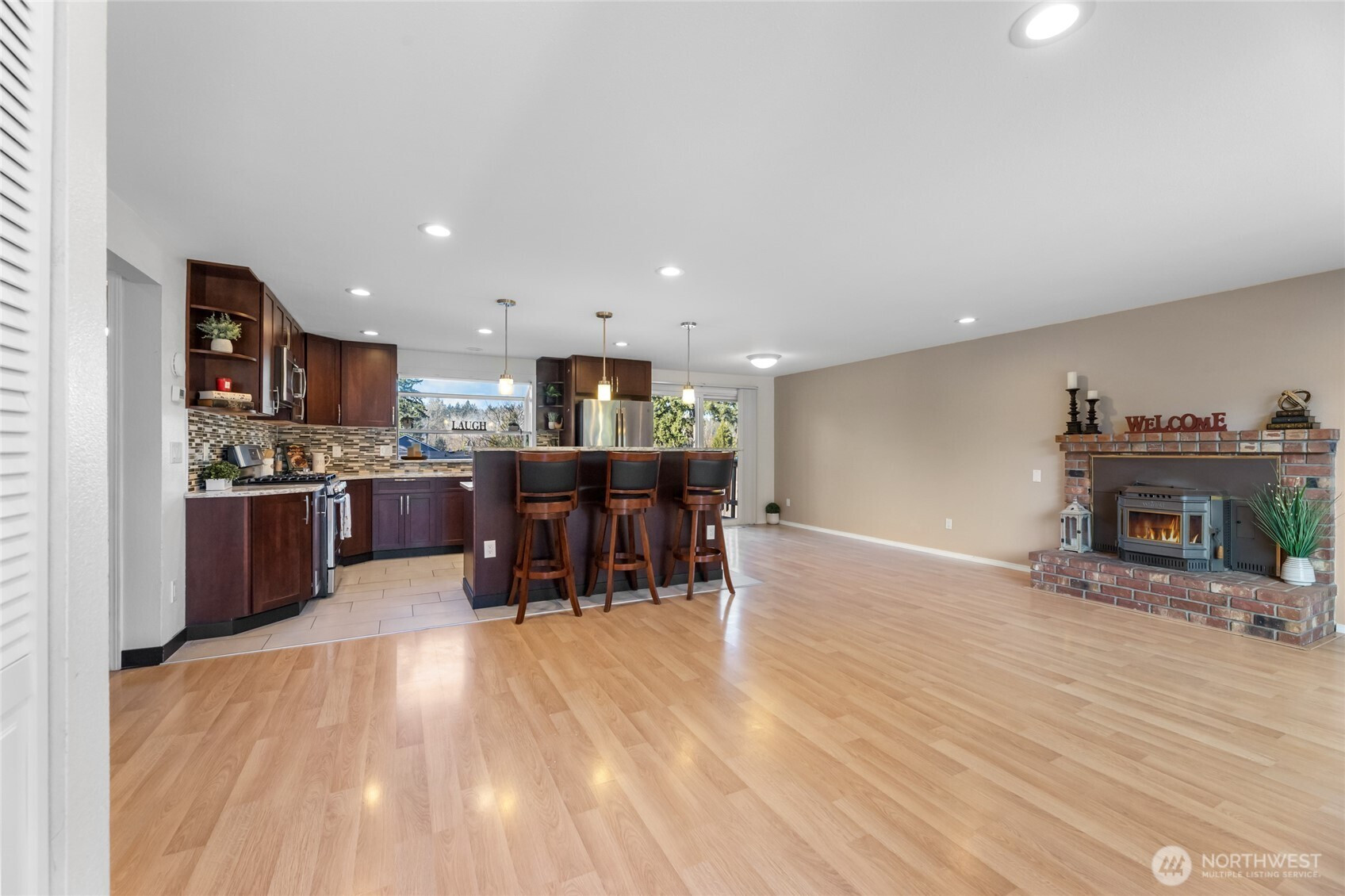 Welcome home to this inviting Covington-area tri-level that blends comfort, flexibility, and outdoor living. The light-filled open-concept kitchen, dining, and living area features a remodeled kitchen with granite countertops and stainless steel appliances—perfect for everyday living and entertaining. Step out onto the wood deck overlooking a spacious backyard with a large, separate garden area, ideal for relaxing or enjoying homegrown produce. A cozy pellet stove adds warmth, while the downstairs bonus room offers versatile space for a home gym, media room, or office. Enjoy exceptional parking and storage with a two-car garage, attached carport, and dedicated RV parking—perfect for adventurers and hobbyists alike. With a roof replaced in 2022 and a convenient location near trails, parks, and Costco, this home supports an active, comfortable lifestyle. Three bedrooms and two bathrooms complete this welcoming retreat.