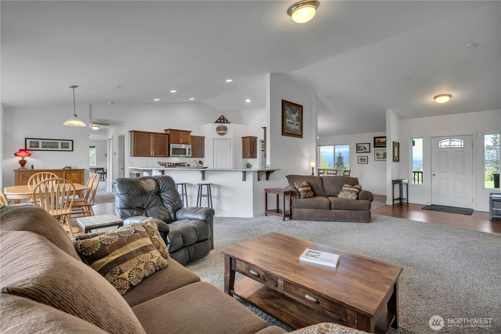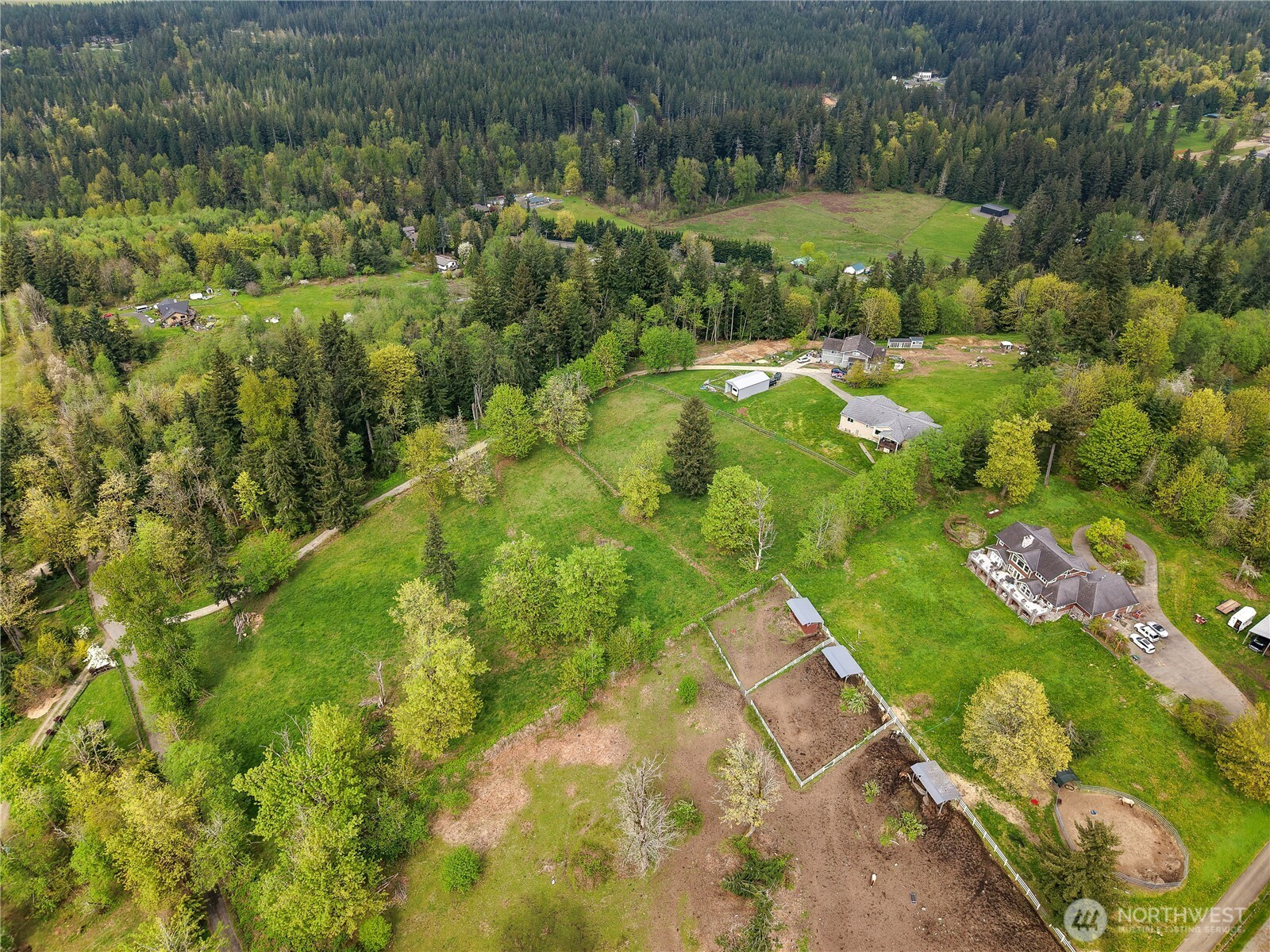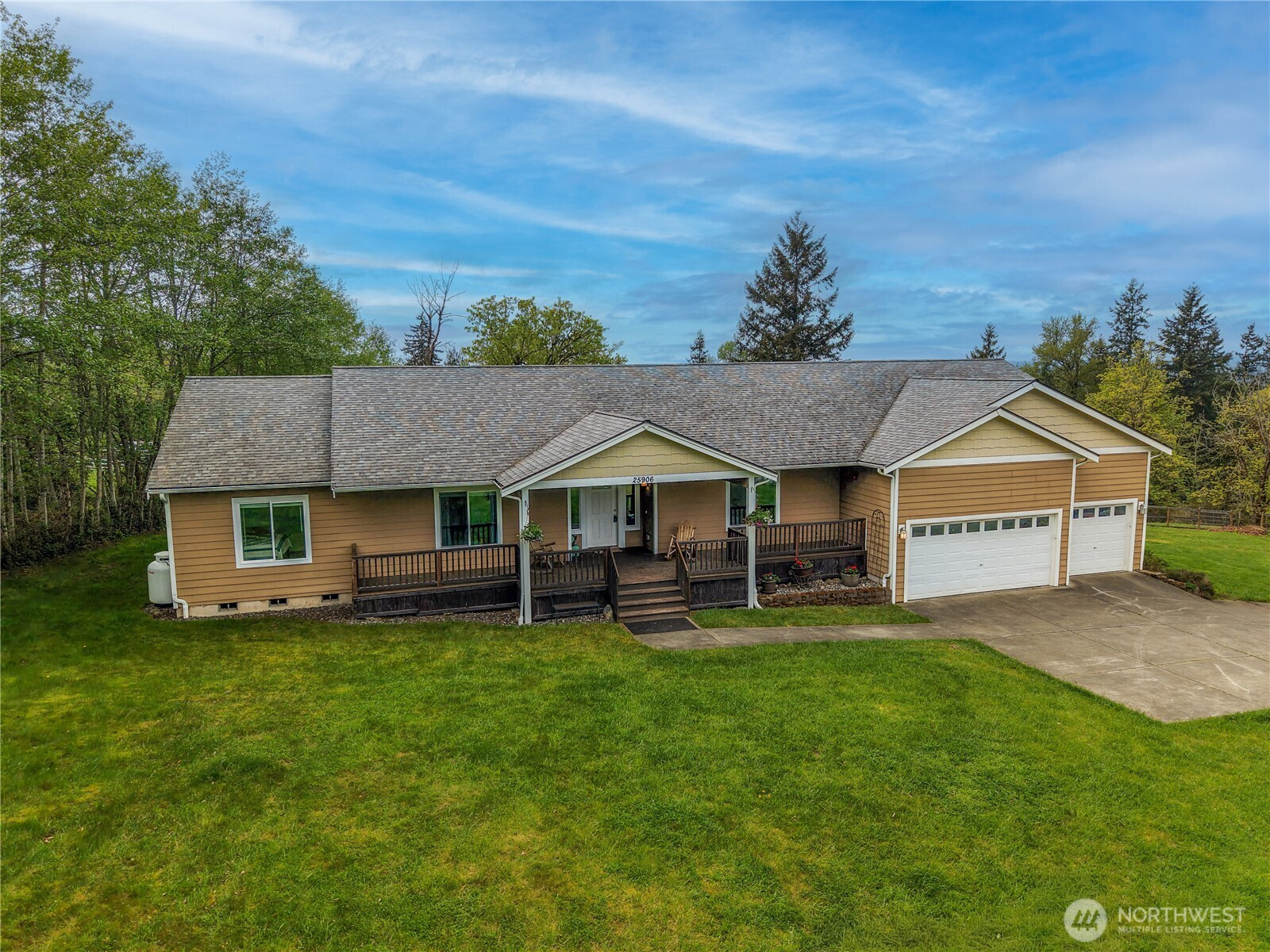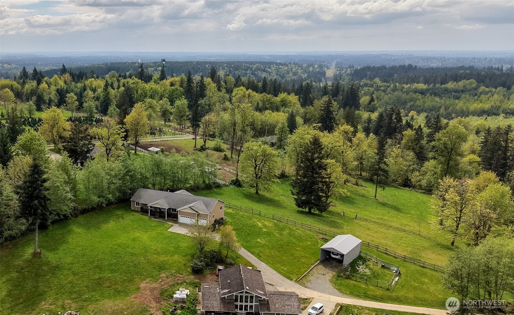 Perched in a truly breathtaking setting, this custom rambler showcases sweeping panoramic views of the Olympic Mountains and the Cascade Range—arguably some of the finest scenery in the Pacific Northwest. Designed in a Modern Craftsman style, the home blends natural beauty with thoughtful craftsmanship in a peaceful, private home. Expansive front and back decks create the perfect spaces for entertaining or quiet reflection—whether you're enjoying sunrise with a cup of coffee, sunset views from a rocking chair, or watching elk and abundant wildlife. The property also offers open pastures for animals and trails ideal for hiking and riding. Inside, the gourmet kitchen is built for both function and gathering, featuring a granite bar for extra eating space, double oven, corner pantry, plenty of cabinetry, and a bright eating area off kitchen—all framed by serene pastoral views. A cozy, elegant dining room adds warmth and charm for more intimate meals. Vaulted ceiling entry enhances the open, airy feel, while a spacious bonus room provides flexibility for hobbies, creative pursuits, or entertainment. The home includes three bedrooms and three baths, offering comfort and privacy for all. Additional highlights include an attached three-car garage and a substantial 20x40 covered structure—perfect for extra parking, storage, or workspace. This one-of-a-kind mountain retreat brings together natural beauty, custom detail, and extraordinary views.