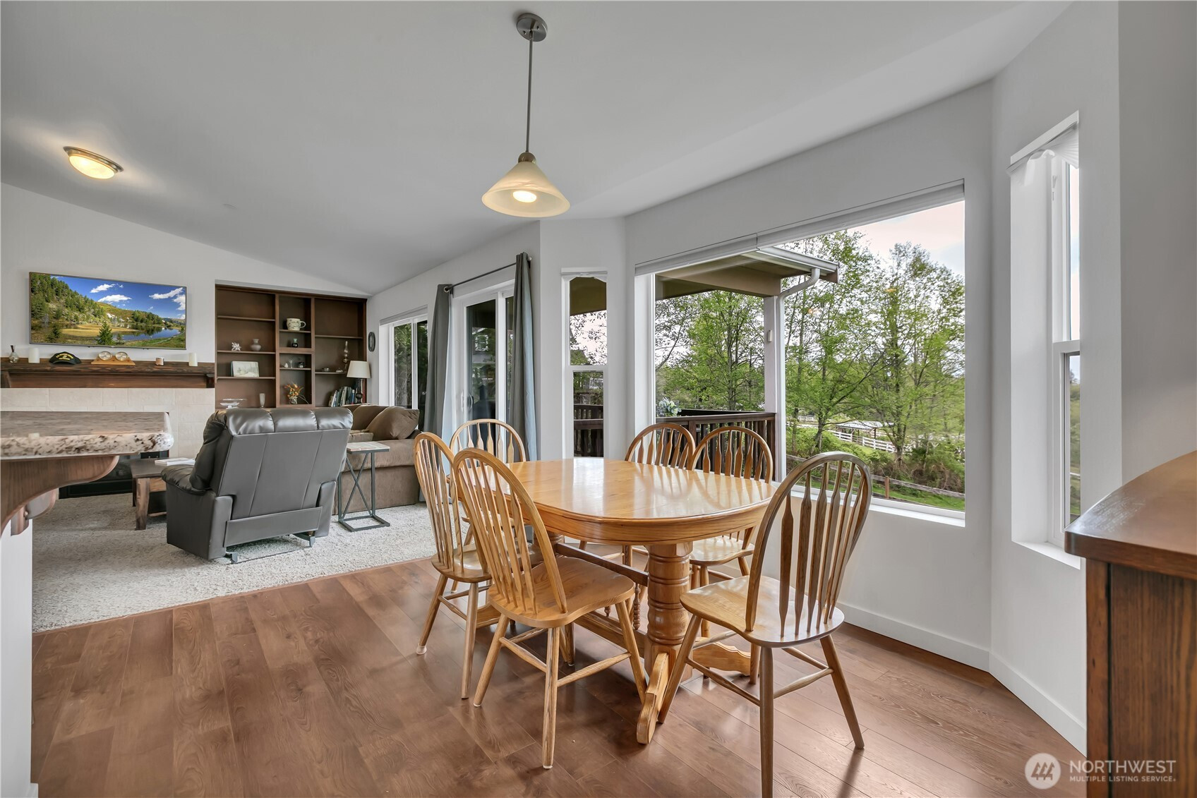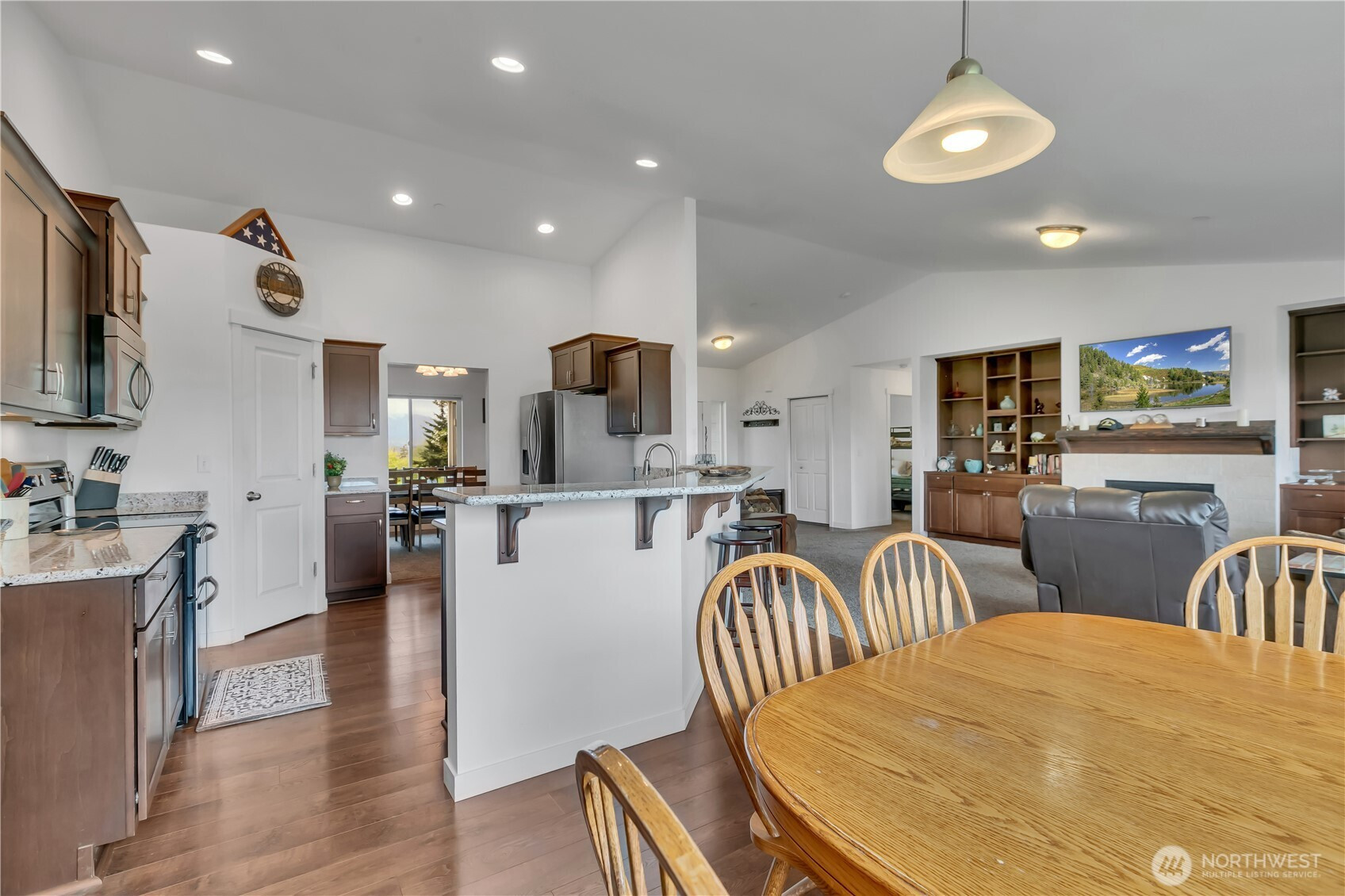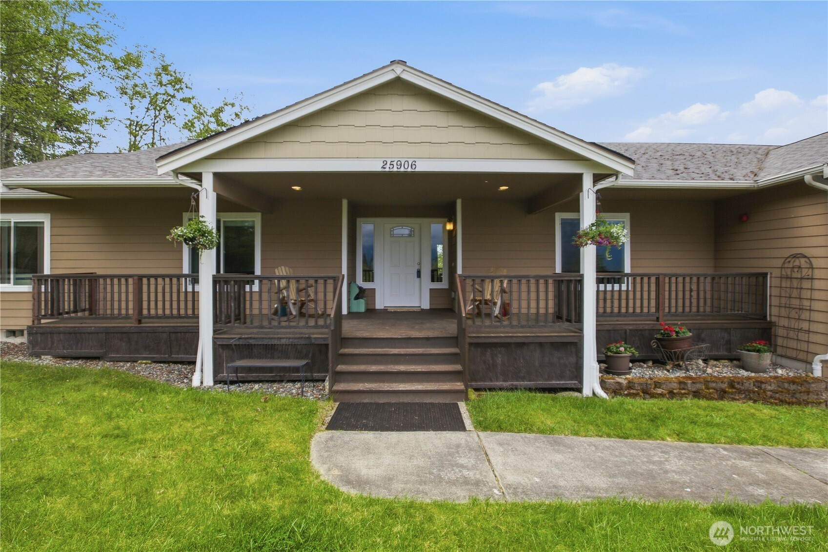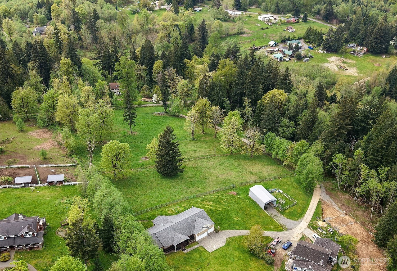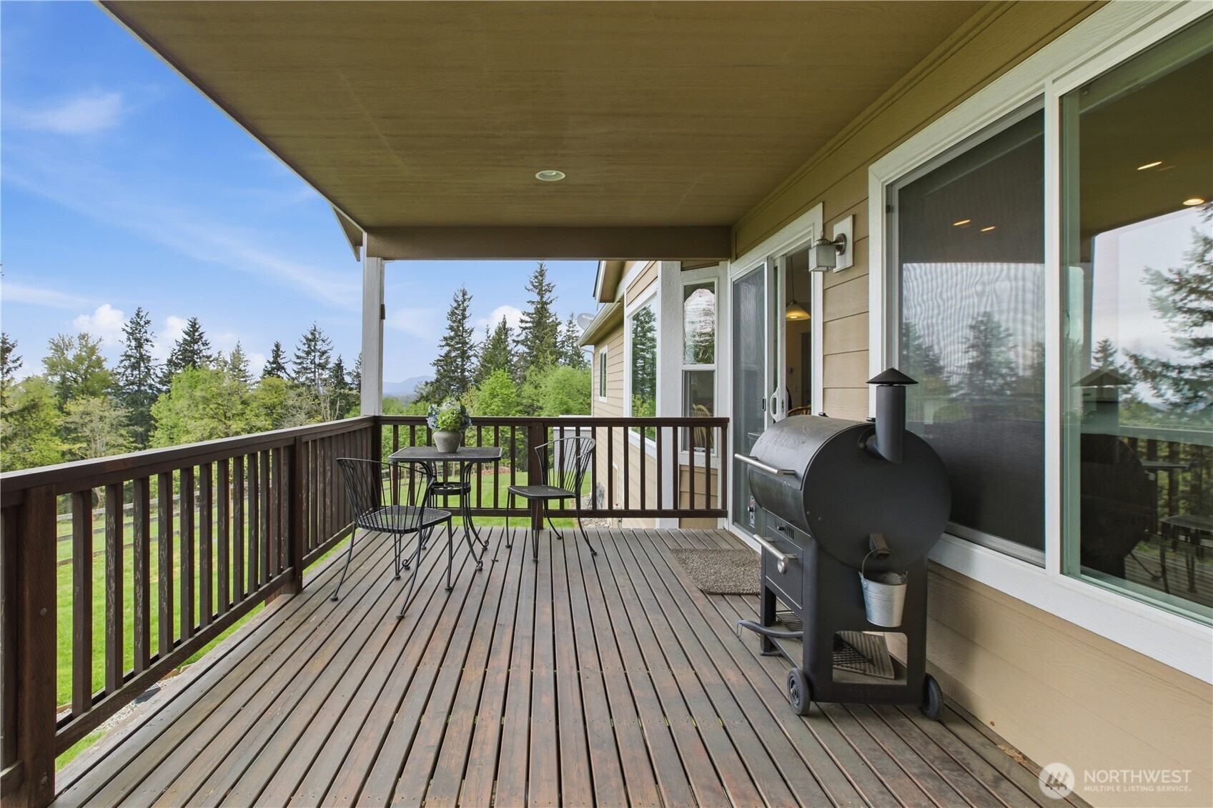 Perched in a truly breathtaking setting, this custom rambler showcases sweeping panoramic views of the Olympic Mountains and the Cascade Range—arguably some of the finest scenery in the Pacific Northwest. Designed in a Modern Craftsman style, the home blends natural beauty with thoughtful craftsmanship in a peaceful, private home. Expansive front and back decks create the perfect spaces for entertaining or quiet reflection—whether you're enjoying sunrise with a cup of coffee, sunset views from a rocking chair, or watching elk and abundant wildlife. The property also offers open pastures for animals and trails ideal for hiking and riding. Inside, the gourmet kitchen is built for both function and gathering, featuring a granite bar for extra eating space, double oven, corner pantry, plenty of cabinetry, and a bright eating area off kitchen—all framed by serene pastoral views. A cozy, elegant dining room adds warmth and charm for more intimate meals. Vaulted ceiling entry enhances the open, airy feel, while a spacious bonus room provides flexibility for hobbies, creative pursuits, or entertainment. The home includes three bedrooms and three baths, offering comfort and privacy for all. Additional highlights include an attached three-car garage and a substantial 20x40 covered structure—perfect for extra parking, storage, or workspace. This one-of-a-kind mountain retreat brings together natural beauty, custom detail, and extraordinary views.