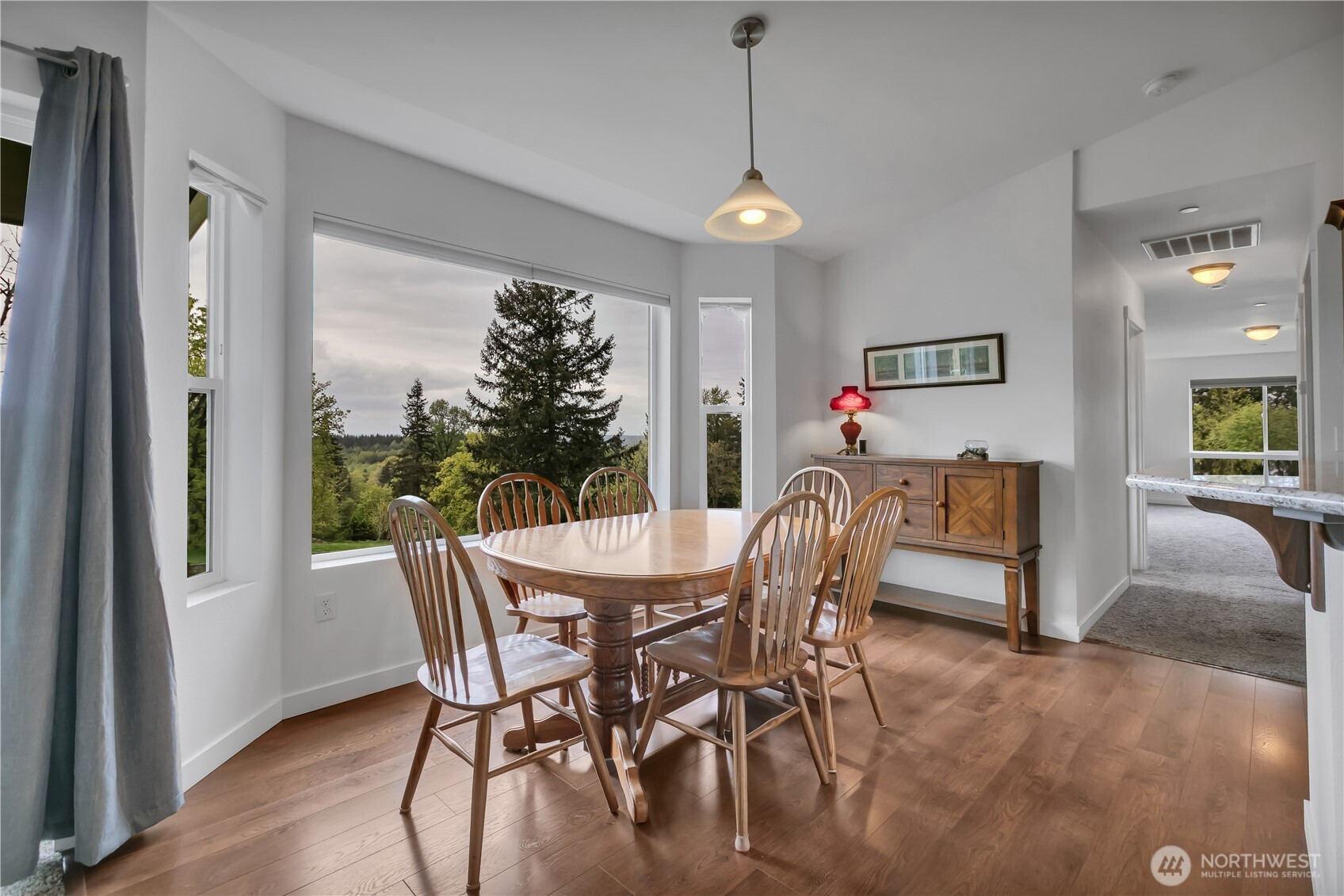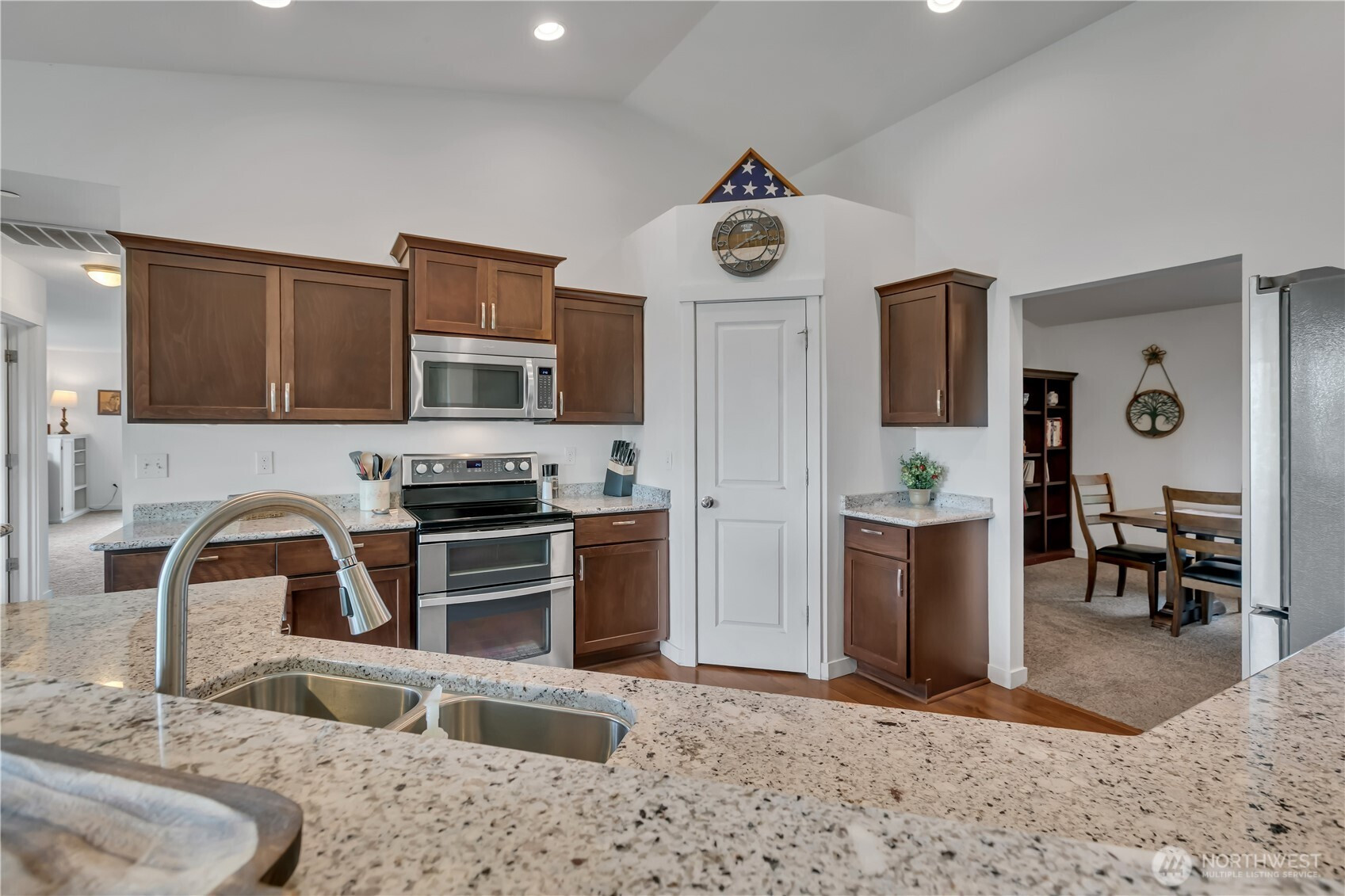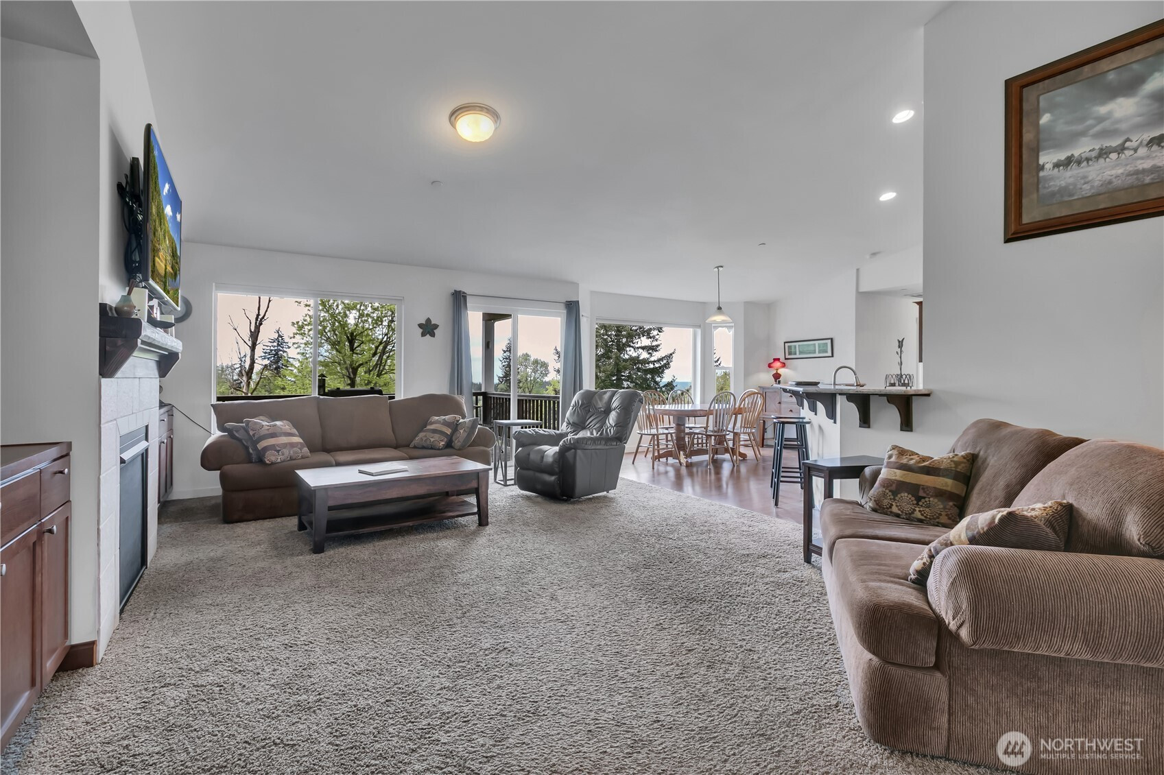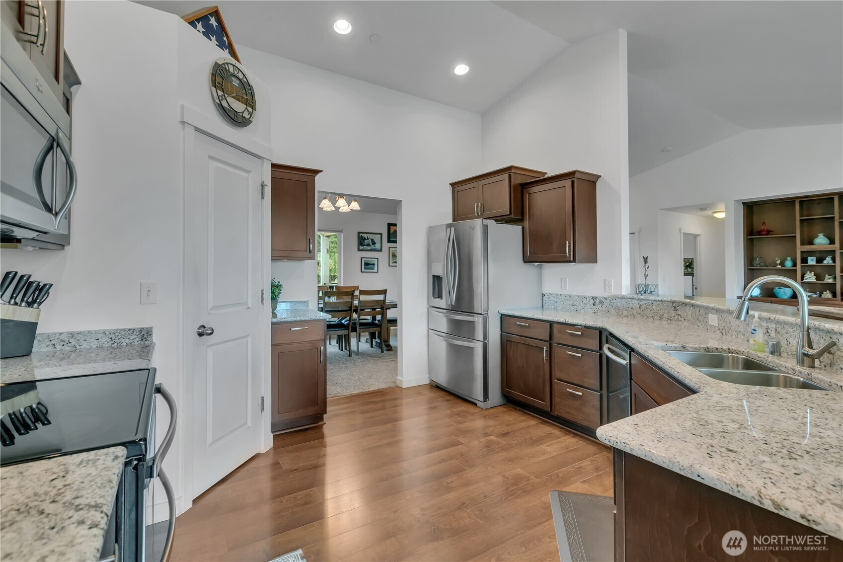Perched in a truly breathtaking setting, this custom rambler showcases sweeping panoramic views of the Olympic Mountains and the Cascade Range—arguably some of the finest scenery in the Pacific Northwest. Designed in a Modern Craftsman style, the home blends natural beauty with thoughtful craftsmanship in a peaceful, private home. Expansive front and back decks create the perfect spaces for entertaining or quiet reflection—whether you're enjoying sunrise with a cup of coffee, sunset views from a rocking chair, or watching elk and abundant wildlife. The property also offers open pastures for animals and trails ideal for hiking and riding. Inside, the gourmet kitchen is built for both function and gathering, featuring a granite bar for extra eating space, double oven, corner pantry, plenty of cabinetry, and a bright eating area off kitchen—all framed by serene pastoral views. A cozy, elegant dining room adds warmth and charm for more intimate meals. Vaulted ceiling entry enhances the open, airy feel, while a spacious bonus room provides flexibility for hobbies, creative pursuits, or entertainment. The home includes three bedrooms and three baths, offering comfort and privacy for all. Additional highlights include an attached three-car garage and a substantial 20x40 covered structure—perfect for extra parking, storage, or workspace. This one-of-a-kind mountain retreat brings together natural beauty, custom detail, and extraordinary views.