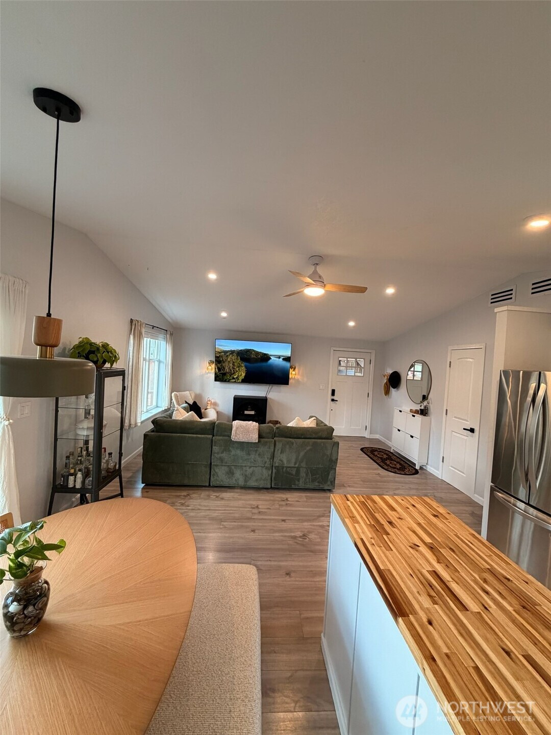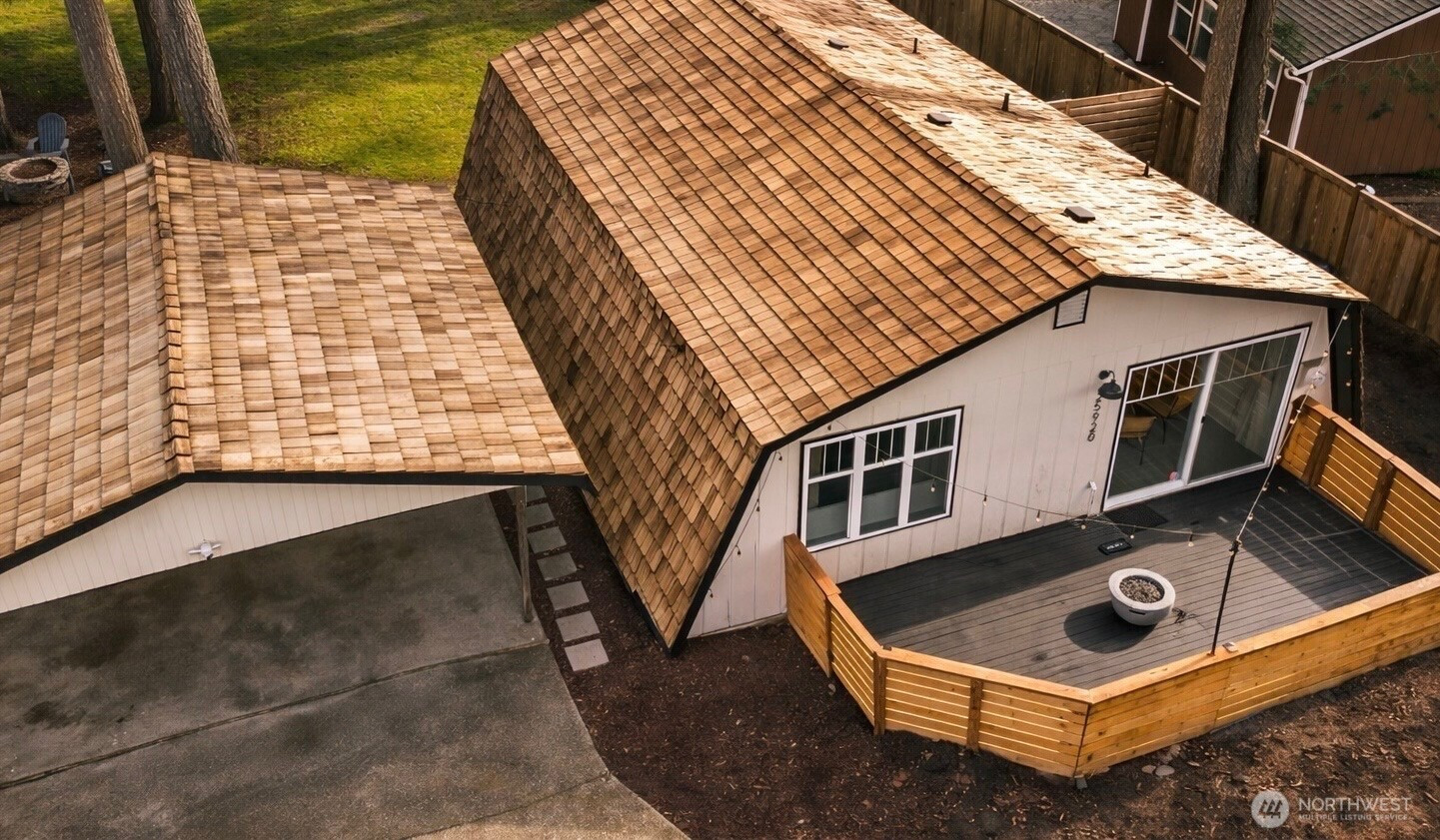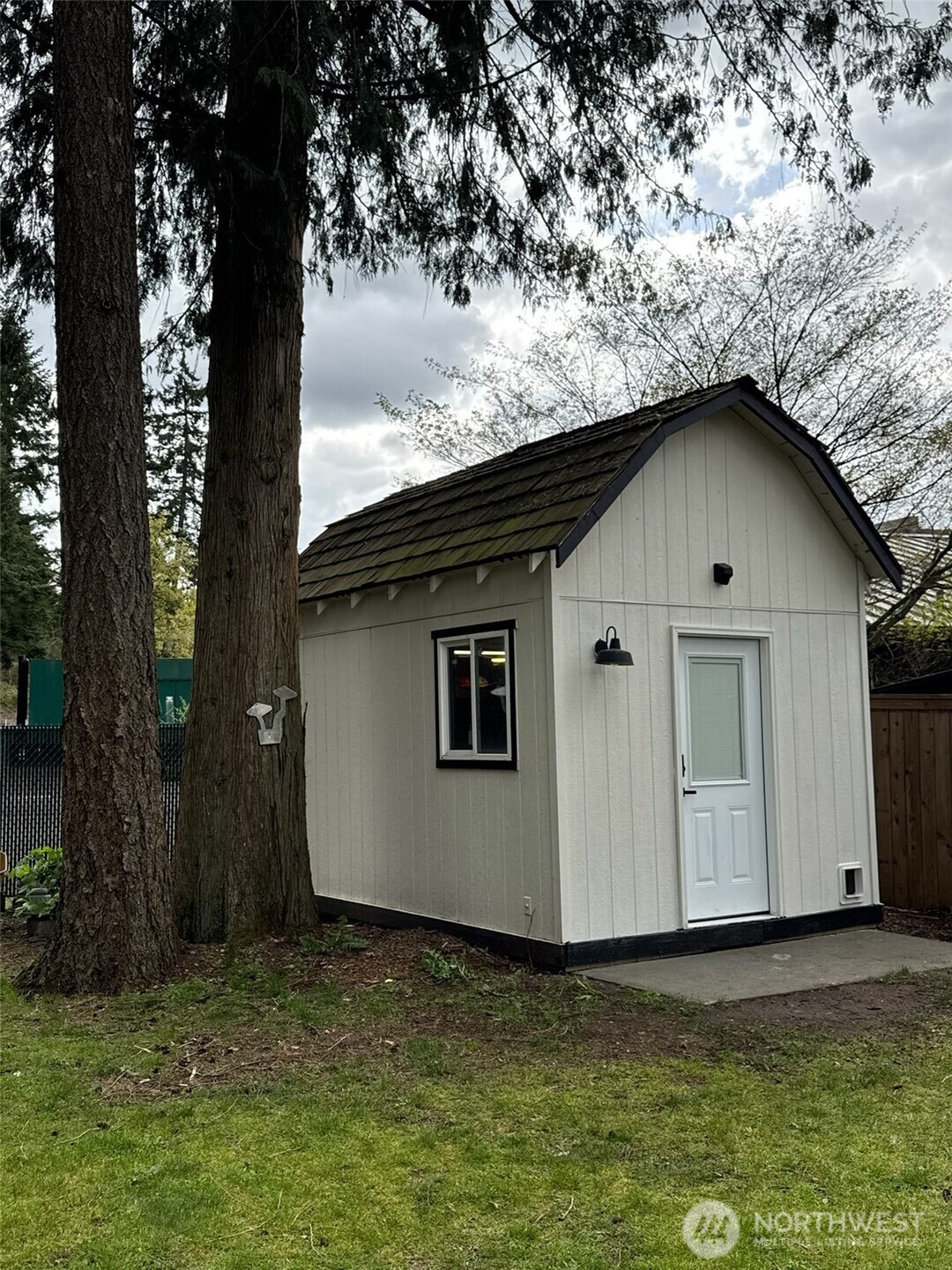 With vaulted ceilings, abundant natural light, and thoughtful updates throughout, this home feels bright, open, and welcoming from the moment you arrive. Inside, you'll find 2 bedrooms plus a versatile 3rd room/office, a full bathroom, and dedicated laundry space. Large vinyl double-pane windows bring in natural light while maintaining comfort and efficiency, complemented by new heating and A/C for year-round climate control. The home's recent interior and exterior paint, modern updates, and pre-inspection make this a move-in-ready opportunity with added peace of mind. A 1-year home warranty is also included for buyer confidence. Step outside to enjoy the large, fully fenced yard surrounded by mature Pacific Northwest greenery — perfect for relaxing, entertaining, or creating your own garden retreat. The spacious, inviting front porch adds curb appeal and a welcoming outdoor living space. A standout feature is the detached bonus space, ideal for a home office, studio, media room, or private retreat — A MUST SEE!