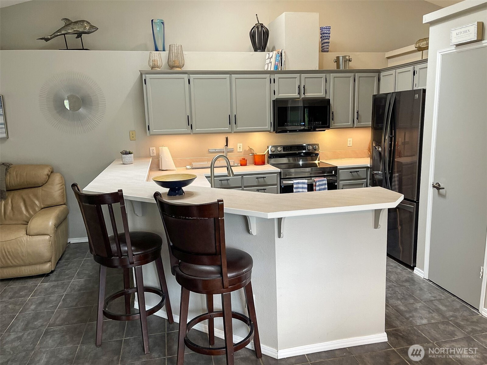 The new updated kitchen and the new lower price make this Covington rambler an incredible value. This spacious single level home features vaulted ceilings skylights and an open concept design that brings warmth and style together. The kitchen flows into the living room creating the perfect setting for gatherings. The primary suite includes a walk in closet and full bath. Enjoy sunset views of the Olympic Mountains a new roof fresh paint air conditioning and RV parking. The fenced yard with pergola gas firepit and large deck is ideal for entertaining. Pride of ownership throughout. No HOA and move in ready.