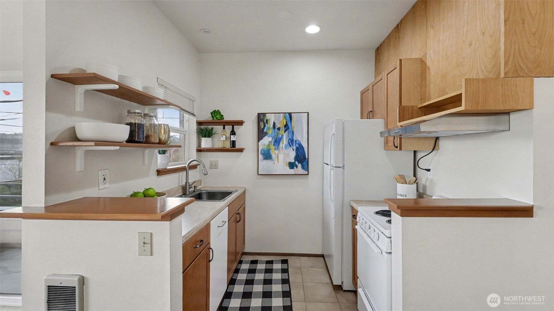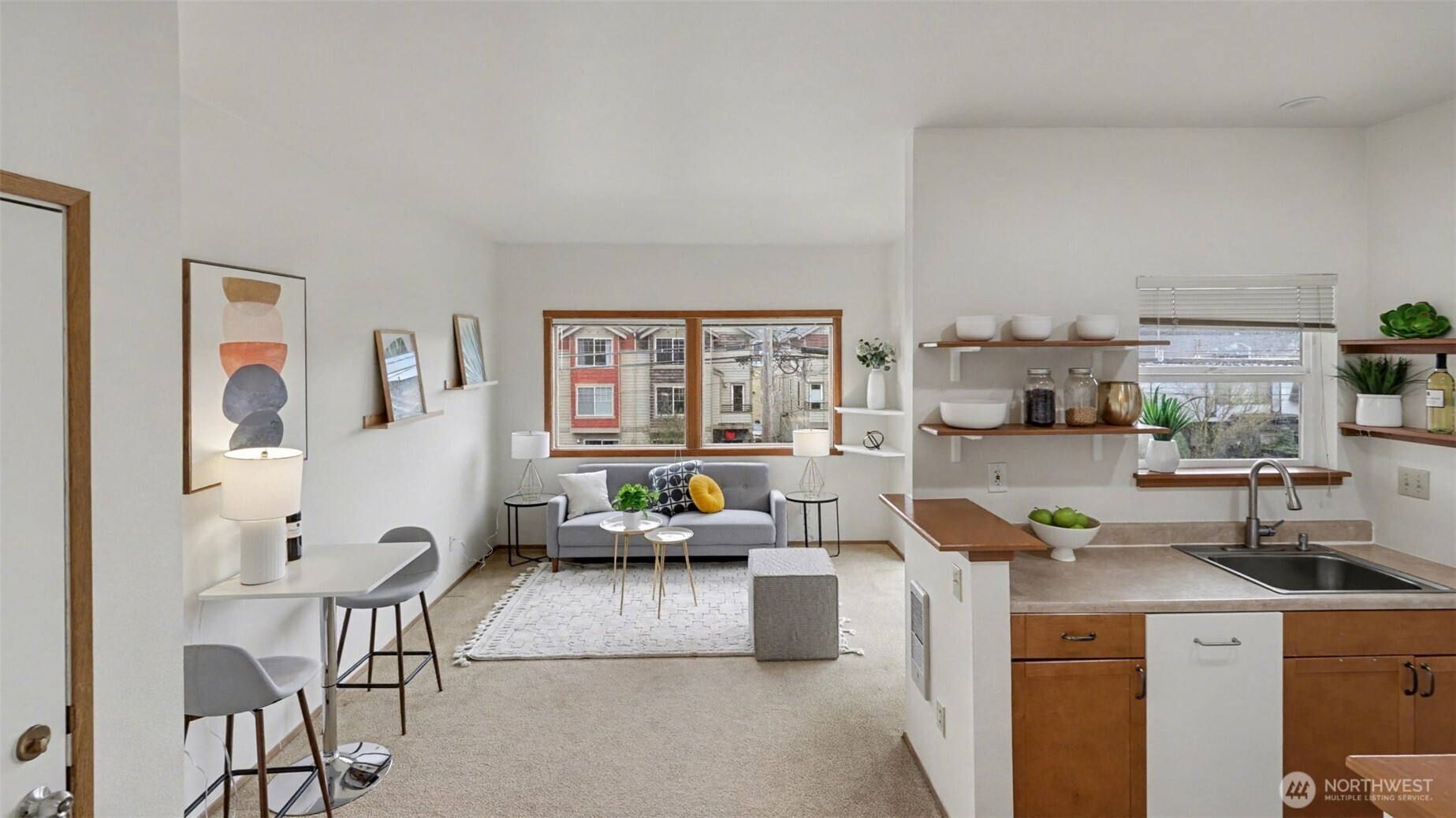 Welcome home to this bright corner residence at Linnea Condominium in the heart of Ballard. Expansive south- and west-facing windows bring in abundant natural light and showcase active water views. Enjoy outdoor living from the private covered balcony just off the living room. Features include high ceilings, in-unit washer/dryer hookups, covered parking, storage locker, and secure bike storage. Experience Ballard’s vibrant neighborhood with tree-lined streets, cafés, restaurants, shops, and entertainment nearby. Just minutes from the Hiram M. Chittenden Locks and Golden Gardens Park for waterfront trails, beach walks, and sunsets.