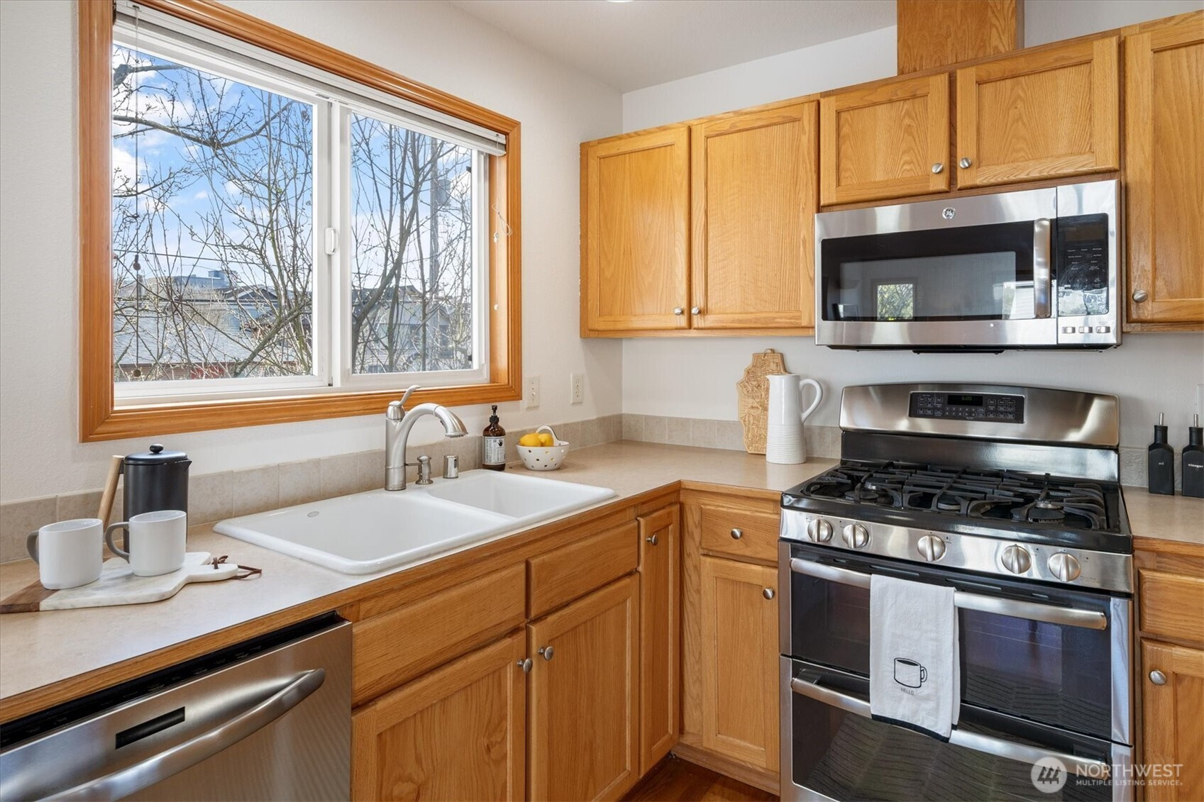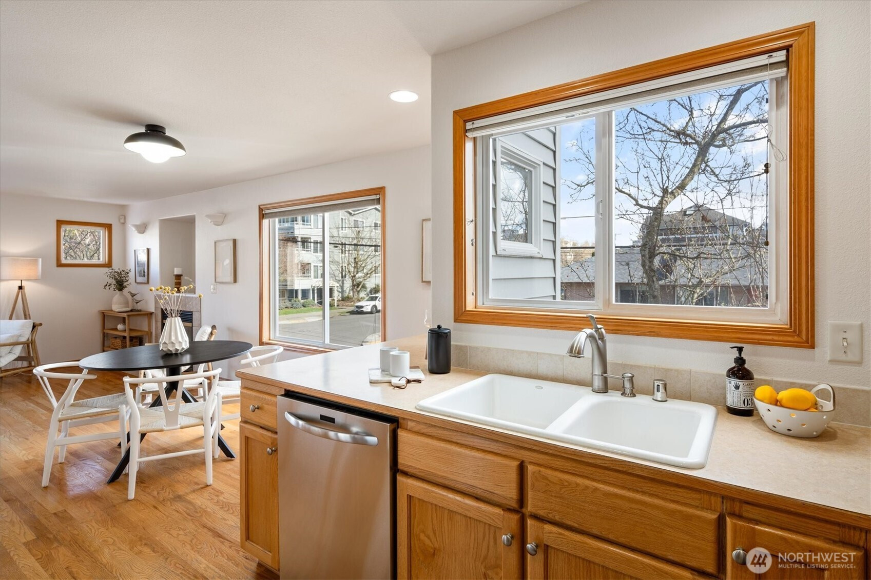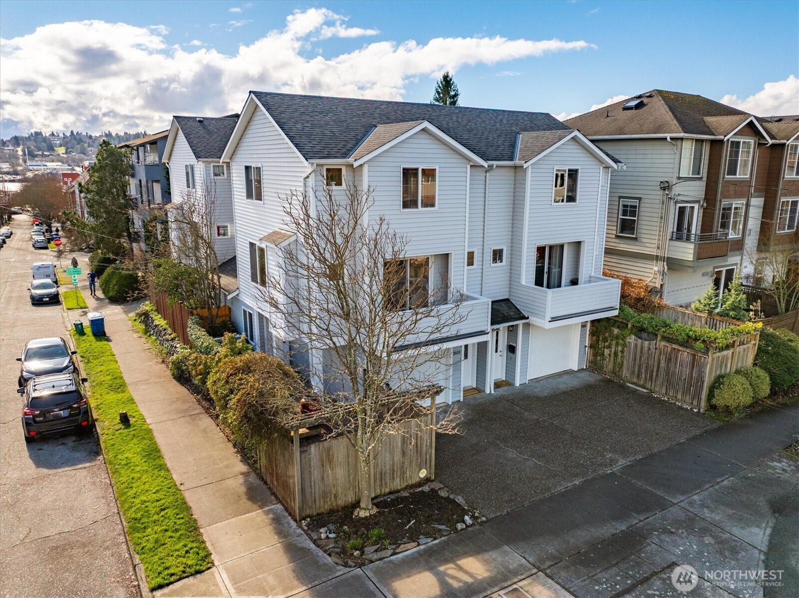 Welcome to the heart of Ballard, where neighborhood charm meets everyday convenience. This bright, private townhome features main-floor open living with hardwood floors throughout the dining and living areas, anchored by a cozy gas fireplace. Sunlight pours through the windows, framing territorial views. Upstairs offers two bedrooms and a full bath beneath soaring ceilings, while the lower level presents an additional bath and a large third bedroom with its own separate entrance, a great option for guests, a home office, or potential rental income. A coveted garage plus additional off-street parking adds rare practicality. You will appreciate this well-kept home with new paint and carpet throughout as well as a new roof as of June, 2025. Step outside, and you’ll be spoiled for choice: lively breweries, trendy shops, and standout restaurants are moments away. Enjoy nearby outdoor gems like Hiram M. Chittenden Locks, the Burke Gilman Trail, Shilshole Marina, and Golden Gardens. Easy access to Fremont, Phinney Ridge, plus quick routes to downtown Seattle, round out an unbeatable location. Exceptional value in an amazing neighborhood.