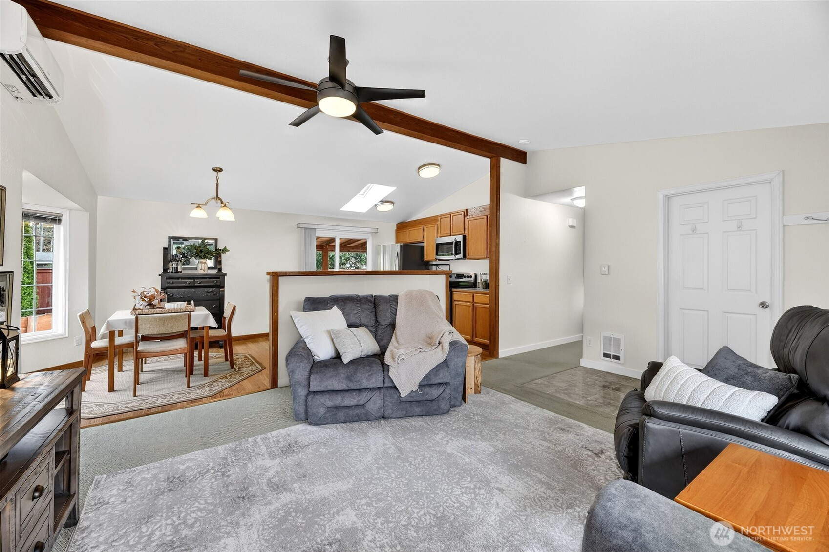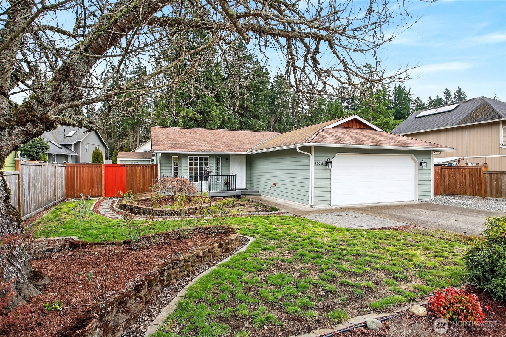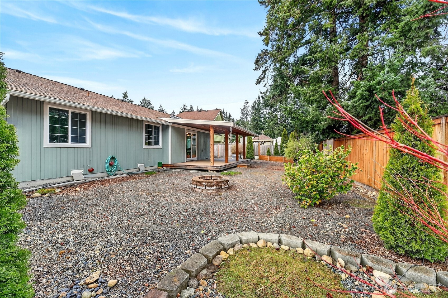 A picture perfect rambler that lives bigger than its square footage. This open-concept 3-bedroom, 2-bath charmer is packed with upgrades including newer ductless A/C, vinyl windows, and an operable skylight that floods the home with natural light. Enjoy year-round outdoor living with a recently updated front Trex deck and a covered rear Trex deck with lifetime roof. Spring and summer blooms bring the yard to life with vibrant seasonal color. Inside features include custom blinds, newer interior doors and trim, updated bathrooms. The primary suite offers a walk-in closet with custom shelving. RV parking with double gate, a large backyard, Tuff shed for extra storage, and a fire pit area make this home an entertainer’s dream. Newer refrigerator & water heater. Pride of ownership shines throughout! Commuter's dream with easy access to I90, Hwy 18, and I-5.