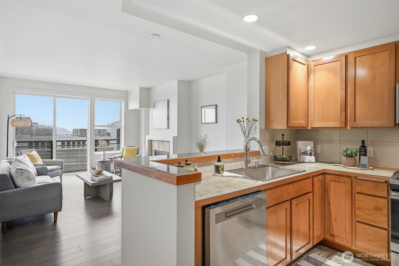 Soothe your soul with Puget Sound and Olympic Mountain views. You’ve dreamed of waking up to the sight of Elliott Bay, ferries, freighters and harbor seals. ‘Go west’ was good advice 100 years ago and still delivers. This west facing, 1 bedroom/1 bath unit at the Vine is positioned for views, maximum sunlight and vibrant sunsets. Fresh flooring, interior paint, gas fireplace and newer stainless appliances makes the interior as attractive as the view. Couple a well-run HOA with 1 car secure parking and added storage and you’ve successfully created the must-have unit on the market. The Vine includes 24 concierge service, gym, guest suites, party/meeting room and a swanky rooftop deck with smashing views. The freshly re-imagined waterfront park is captivating and it’s in your back yard. The Vine is not to be missed, and this unit delivers on every level. Pets and guests are welcome. The Vine is divine. Let it jump start your vibrant life. See it, love it, own it.