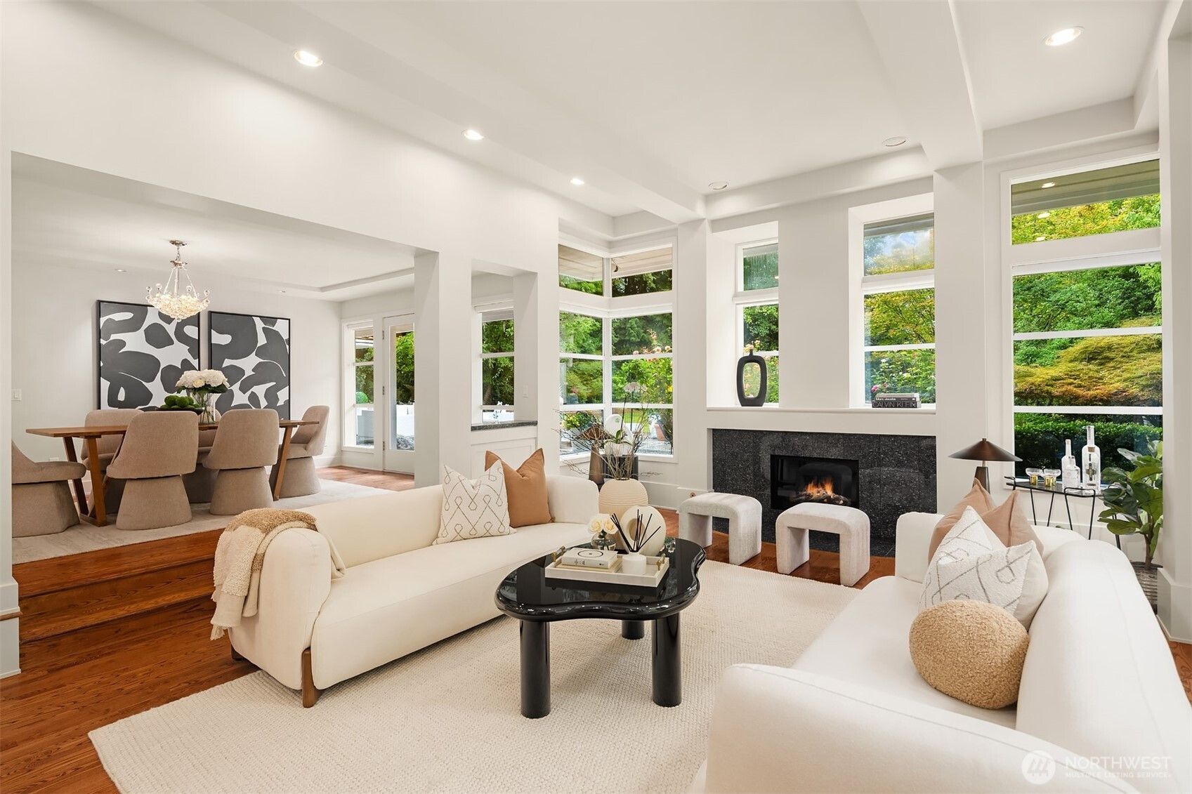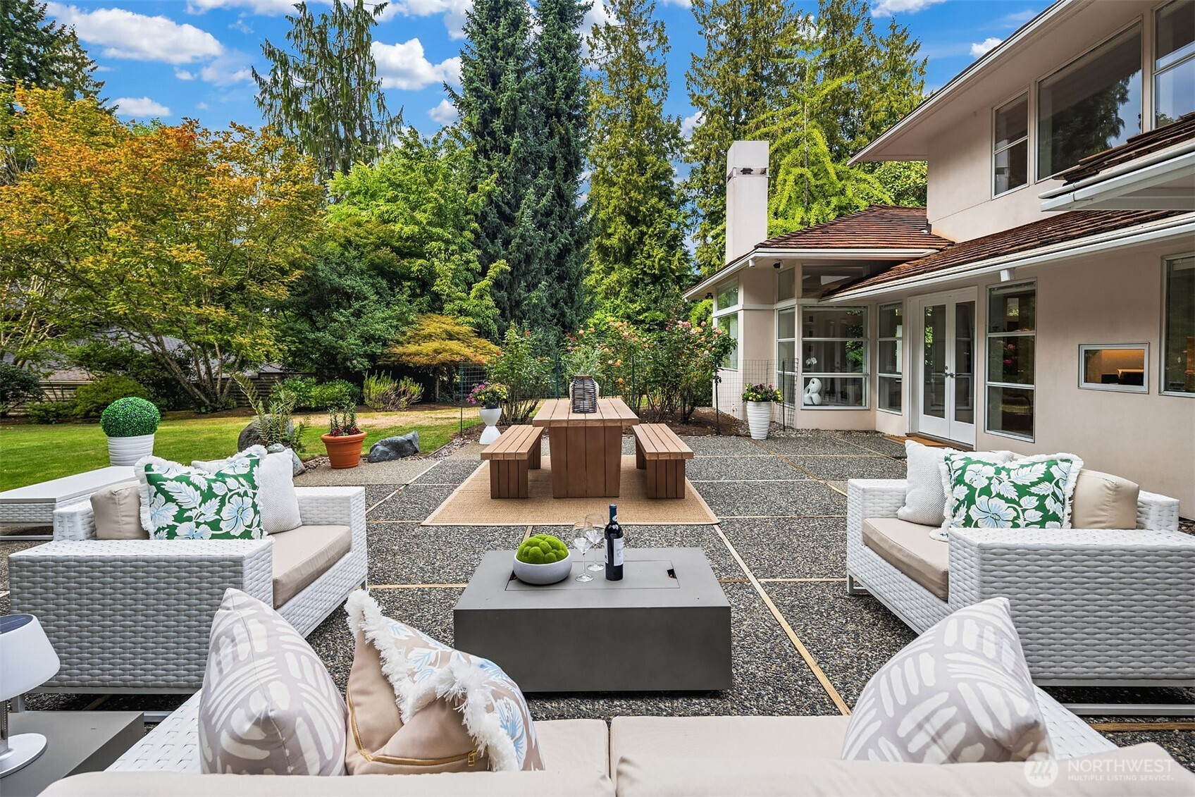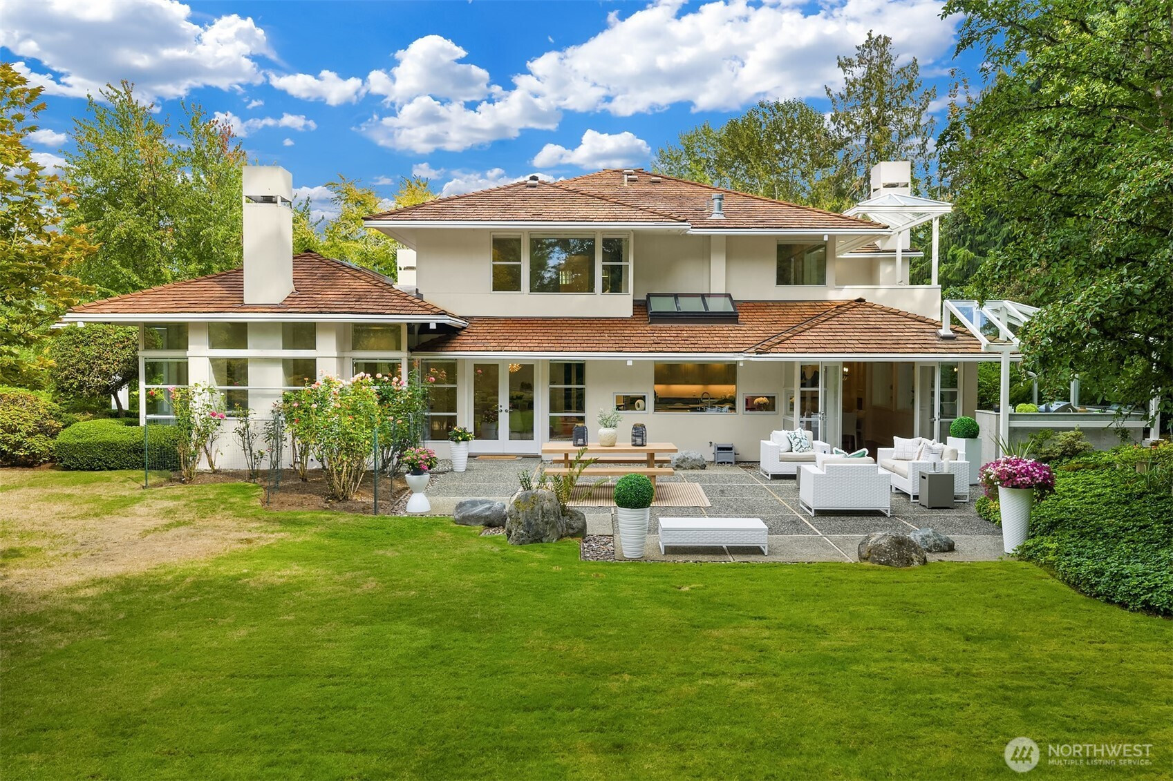 Privately nestled on Evergreen Pt Rd, this timeless Medina modern home welcomes you with a grand entrance and thoughtful architectural design. The open floor plan is designed to flow effortlessly for everyday living, while enhancing the connection to the private, tranquil setting, perfectly framing a delicate peek-a-boo view of the lake. A glass-covered atrium frames the outdoor kitchen, creating a stunning all-season space for entertaining. A versatile main-floor bedroom offers flexibility as a guest retreat, a spacious den features custom bookshelves, a cozy fireplace & rich hardwood floors. The kitchen features classic details, a spacious eating area, and top-of-the-line stainless steel appliances. Serene, refined & endlessly inviting.