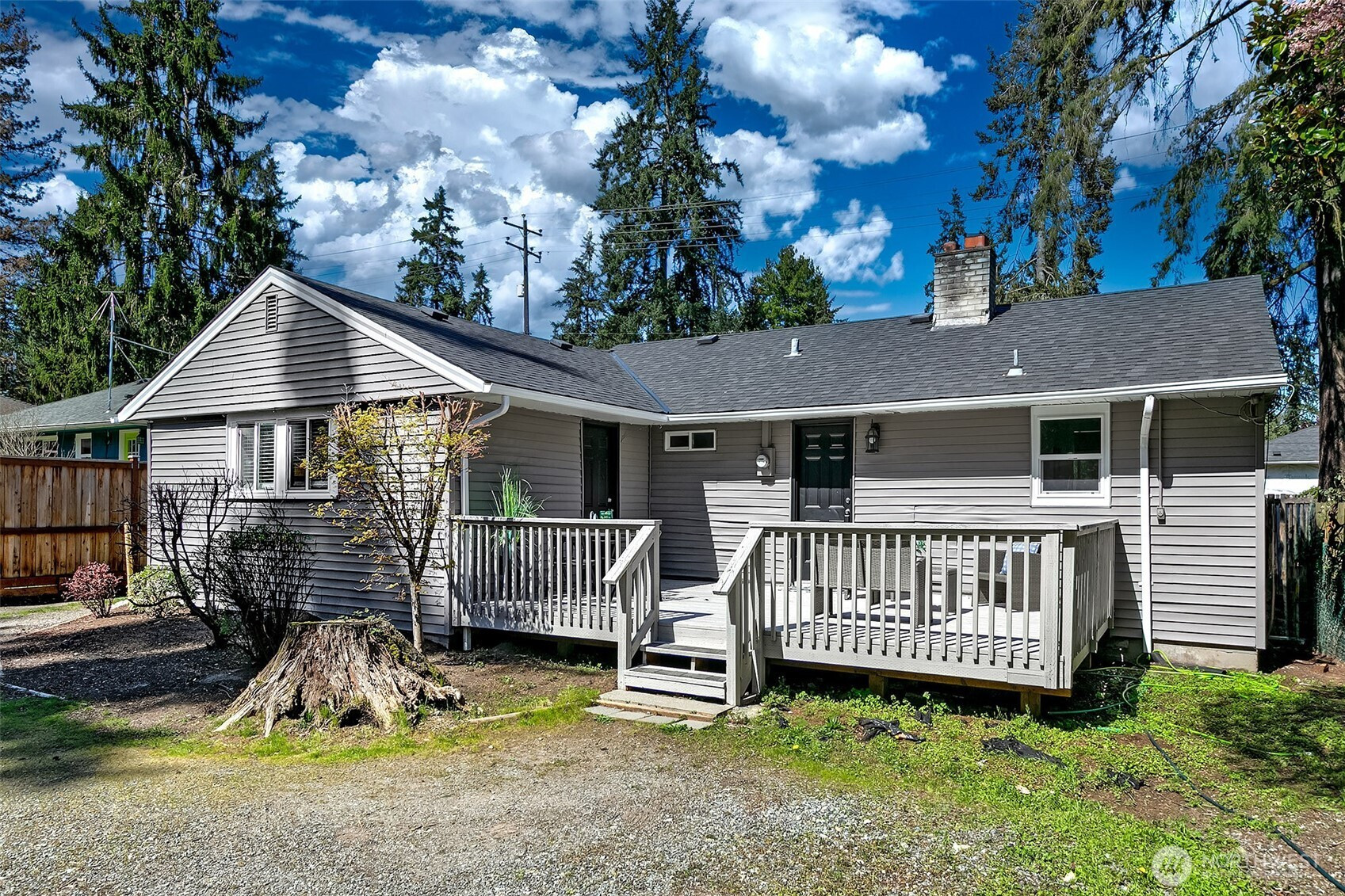Set in North Seattle’s Olympic Hills neighborhood, this spacious and flexible home is an excellent opportunity for comfortable living AND future potential! Expansive living room is bathed in natural light from picture windows and features a cozy fireplace. Kitchen boasts casual dining area, slate tile countertops and cherry cabinets! Convenient laundry area is just off kitchen too! Three, well proportioned, bedrooms and two full bathrooms means no one is fighting for space! Huge fourth bedroom is set back, for more privacy, and could serve as family room. With tons of space and entrance to back yard, its perfect for home office, media room or hosting guests! Outside, the fully fenced front yard is ready for your four legged family member or your green thumb! Expansive backyard boasts bright, South facing deck, perfect for a barbeque or a sunny day + storage shed. Off street park back here (room for 3!) or expand yard to meet your desires! Updated with new vinyl flooring and fresh interior paint, giving the home a clean, refreshed feel. Conveniently located near the Shoreline light rail station, major commuter routes, as well as shopping and dining options (don’t miss Rachel’s bagels!). Come see this compelling value in a well connected North Seattle location!