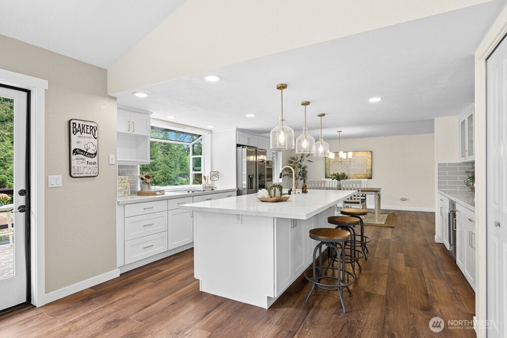 A rare opportunity to own a home in the one and only Maplewood Estates. Set on over 2.5 acres of open, level, and usable land, this beautifully updated, sun-filled home features skylights, vaulted ceilings, and an open floor plan.The expansive property offers endless possibilities — from outdoor entertaining and recreation to animals or simply enjoying your own private space. Mature landscaping includes garlic, onions, herbs, raspberries, dahlias, and Christmas trees.Additional features include a newly built chicken coop, a barn with 2 horse stalls and room for 2 more, and an upper-level studio, offering flexibility for hobbies and storage.The home has been thoughtfully updated with over $200,000 in improvements, including a new 50-year roof, new windows, new doors and trim, fresh interior paint, and new flooring throughout.The fully remodeled kitchen features quartz countertops, an oversized island, a wine refrigerator, and double ovens. Updated bathrooms include a spa-like primary bath with a soaking tub.Flexible living spaces include a downstairs mother-in-law suite with private entrance, kitchenette, and its own washer and dryer — ideal for multi-generational living or rental potential. Peaceful and just a short drive to schools, parks, trails, and downtown Issaquah, in the award-winning Tahoma School District. Welcome to your private retreat where comfort, space, and lifestyle come together.